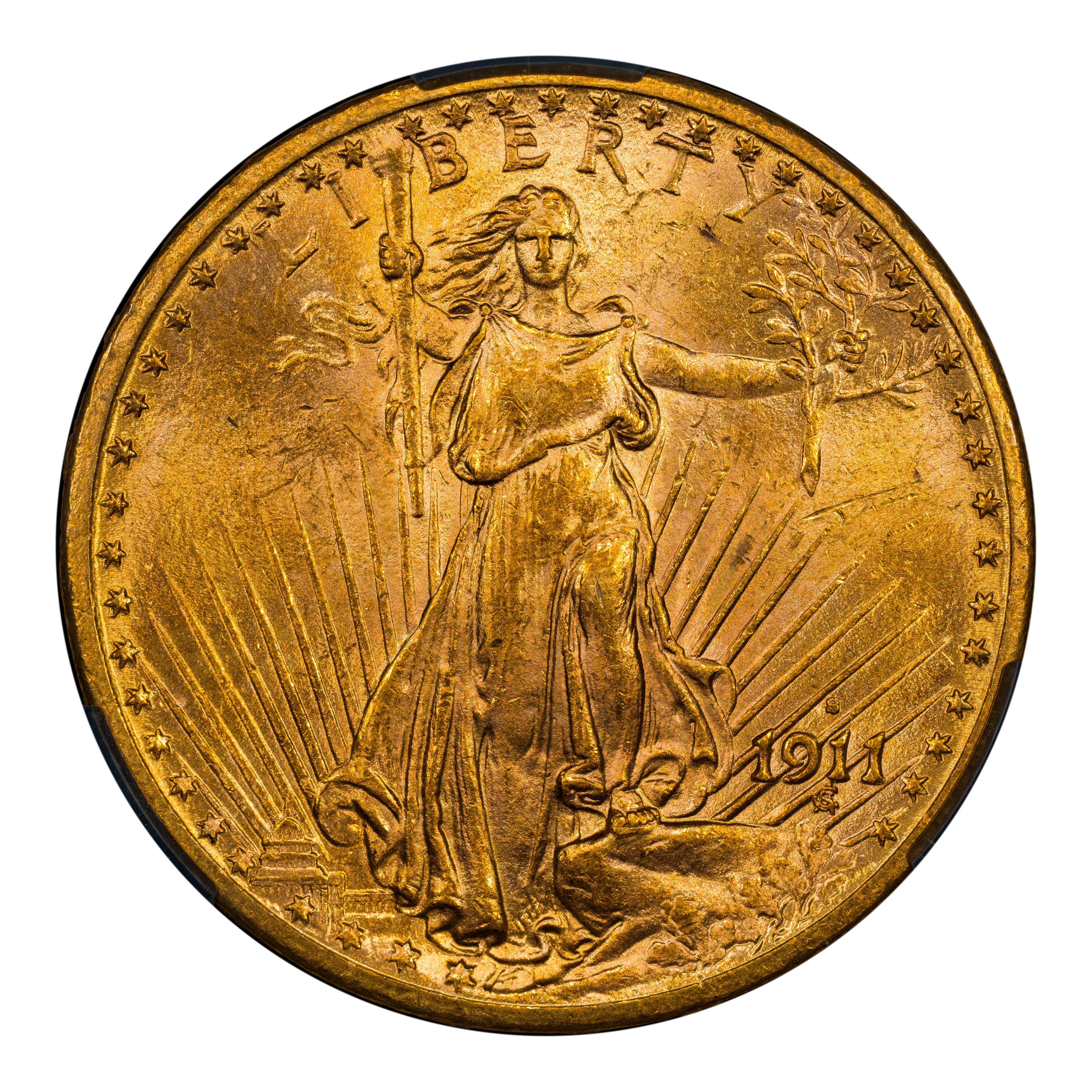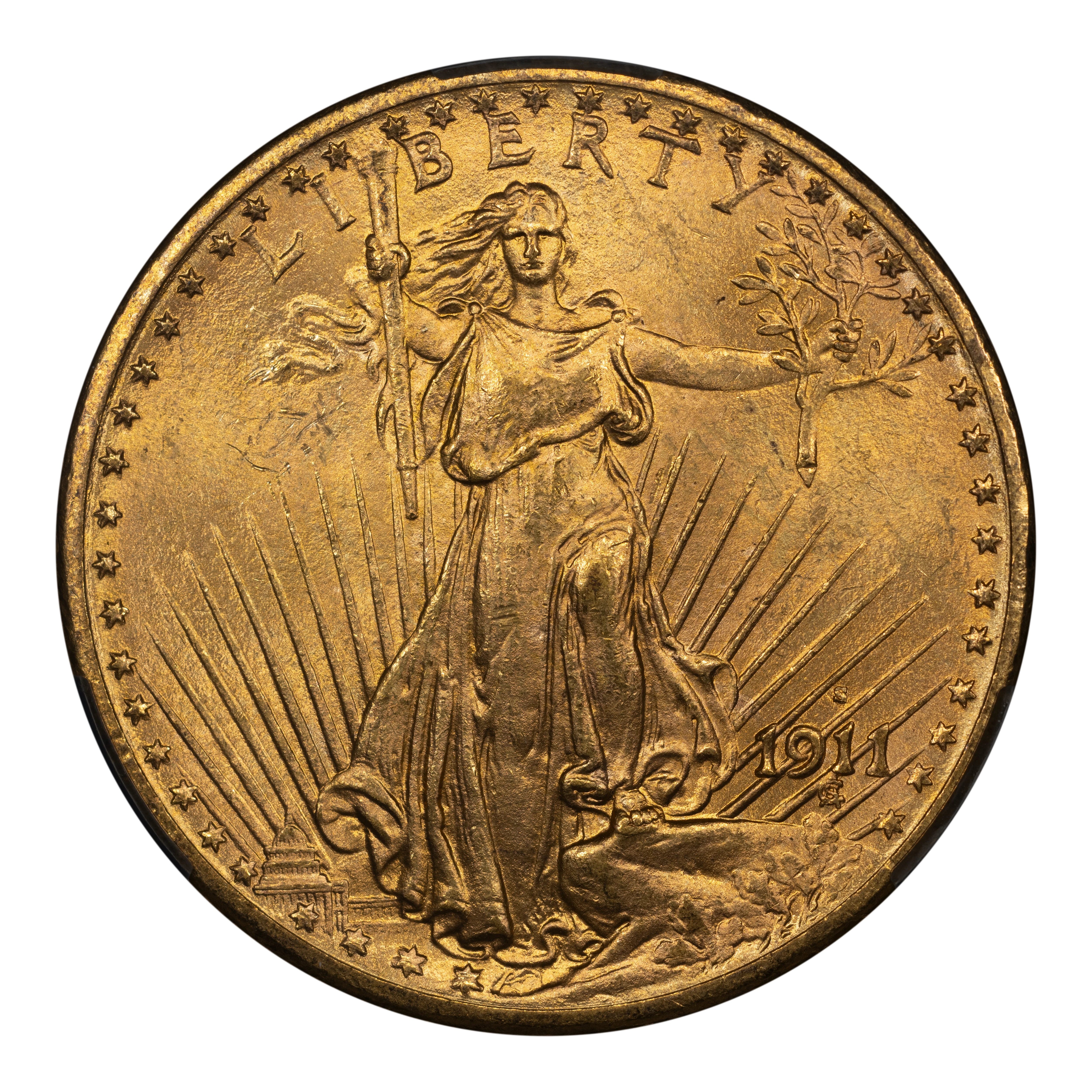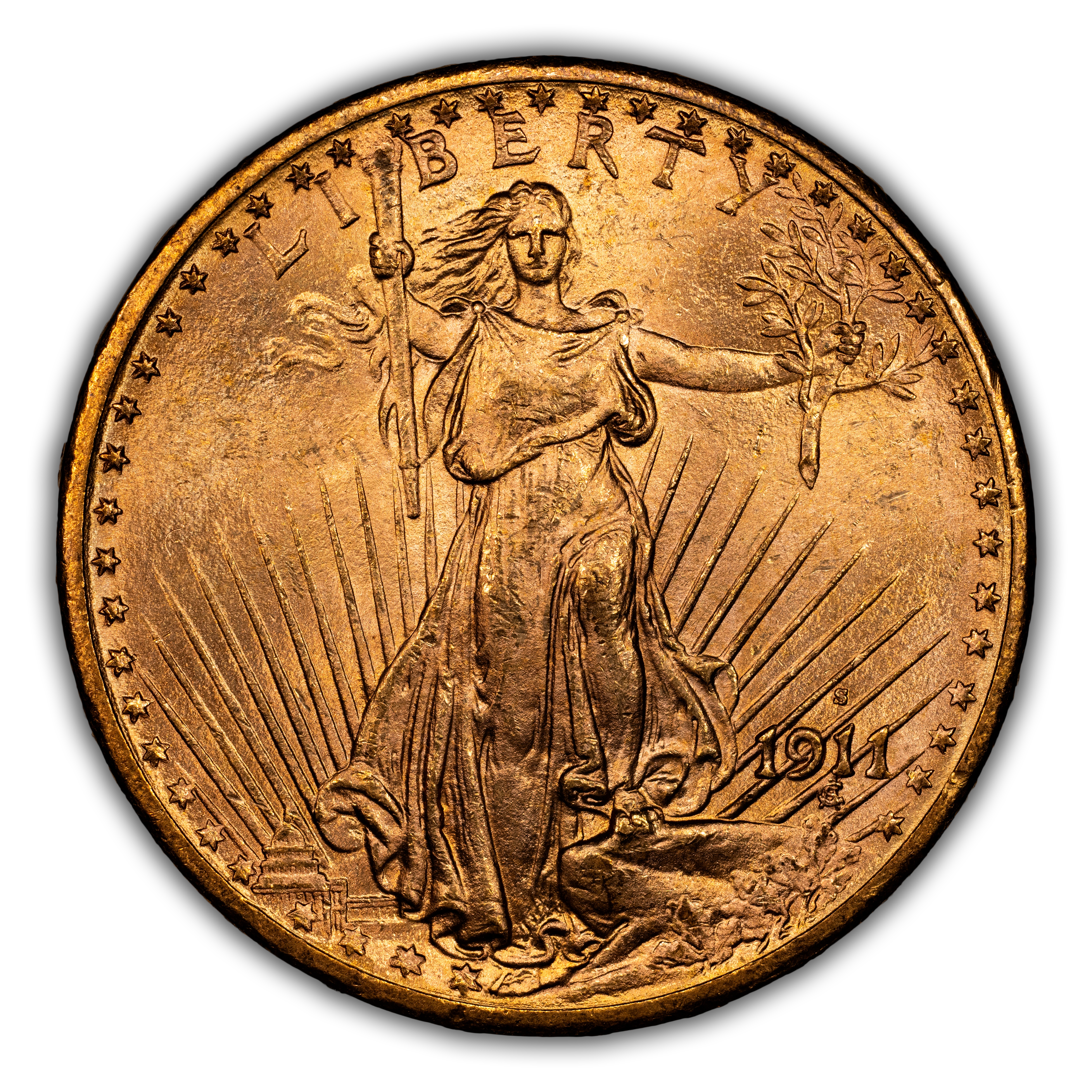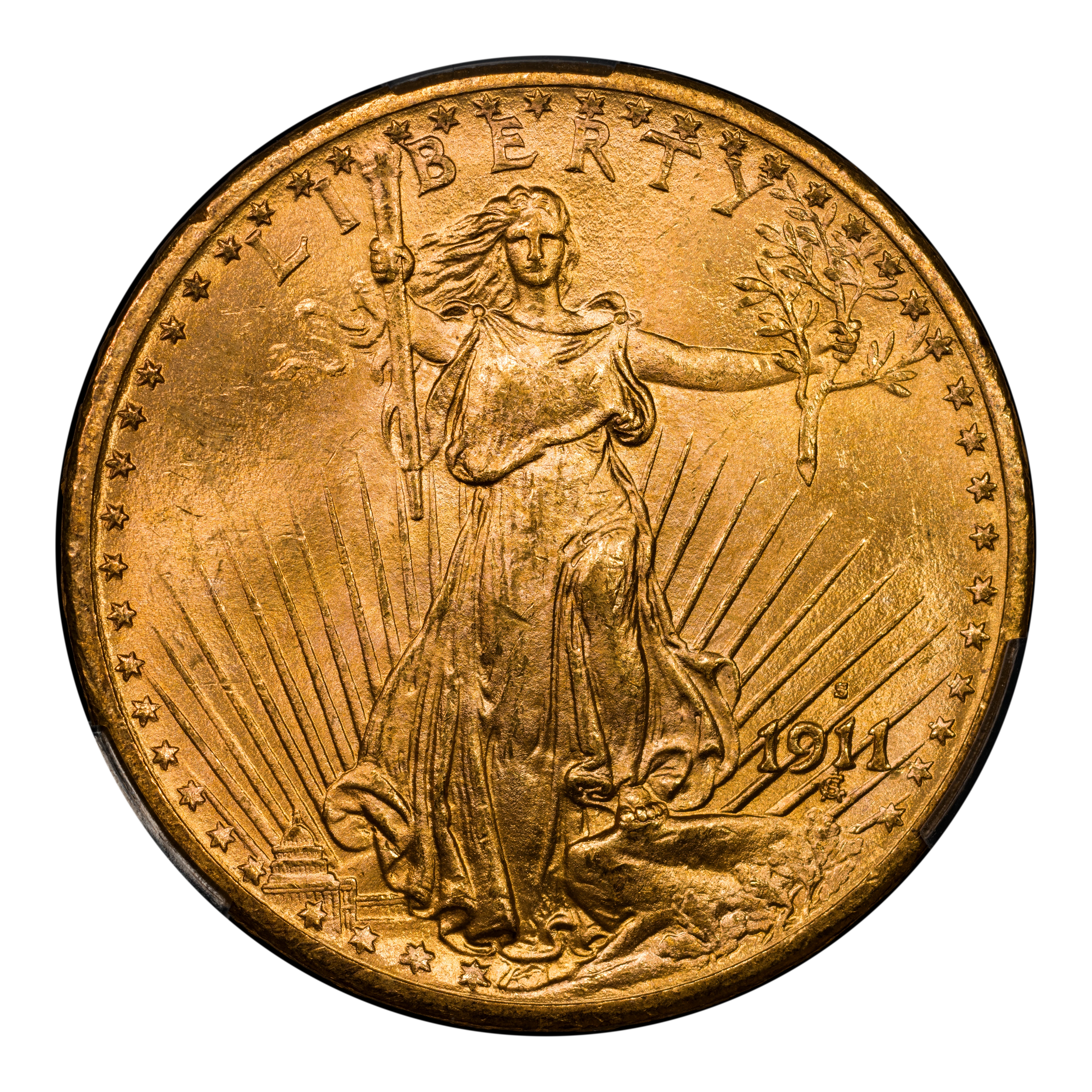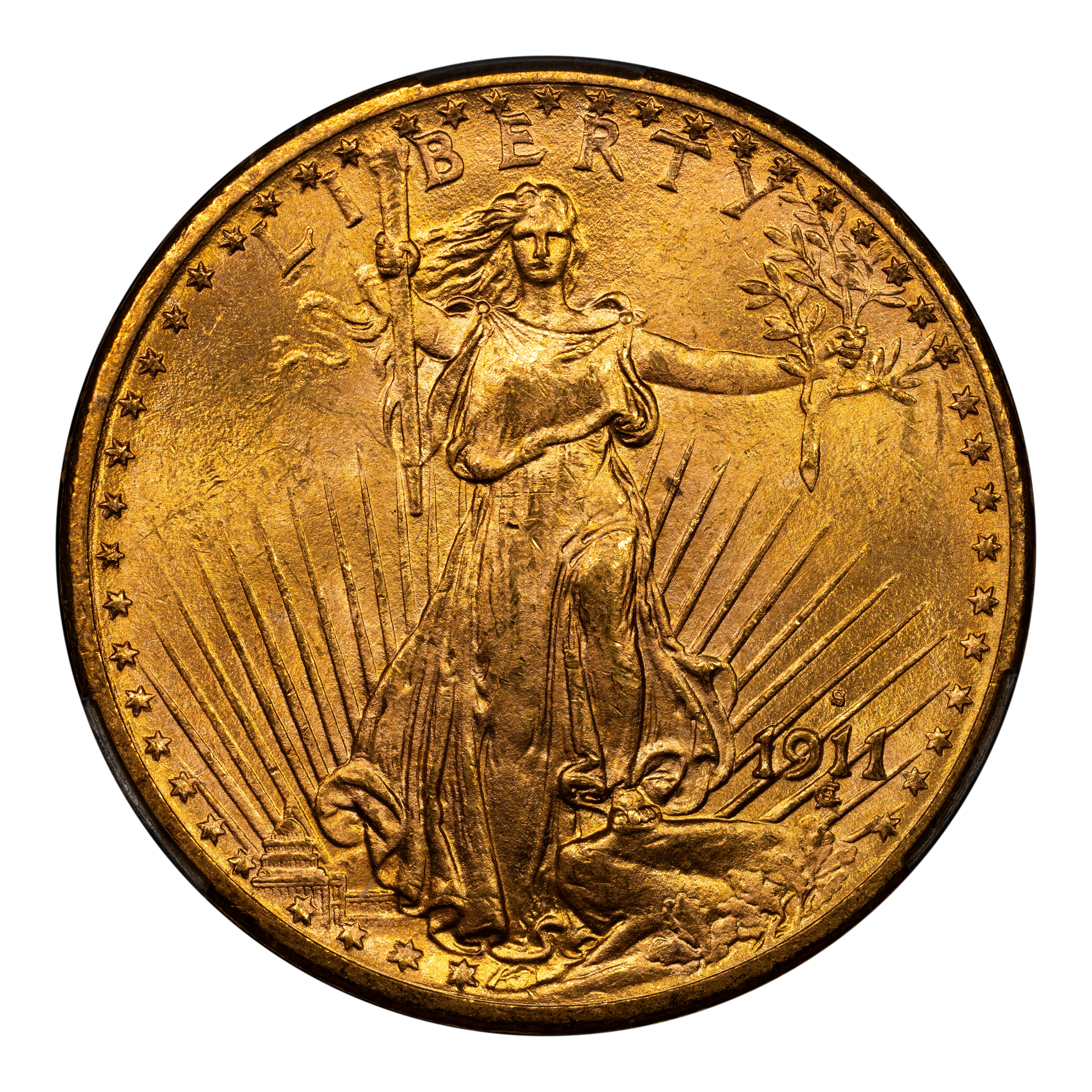 The 1911-S Saint-Gaudens double eagle is fairly common as far as Saints go. The coin is readily obtainable in circulated and lower uncirculated grades, though pieces grading MS65 or better are much scarcer and only a relative few are known in MS66 or better and are sought most especially by registry set collectors.