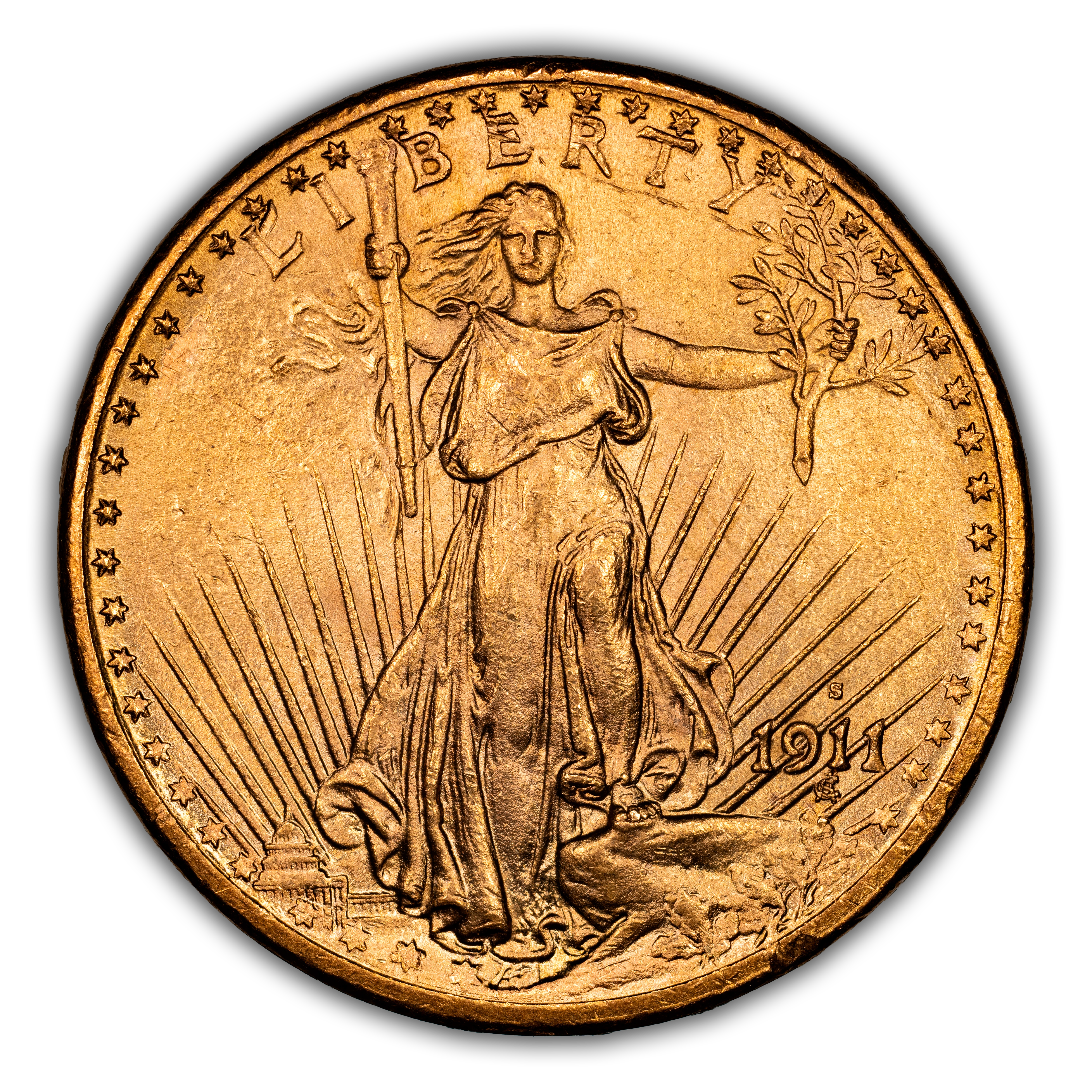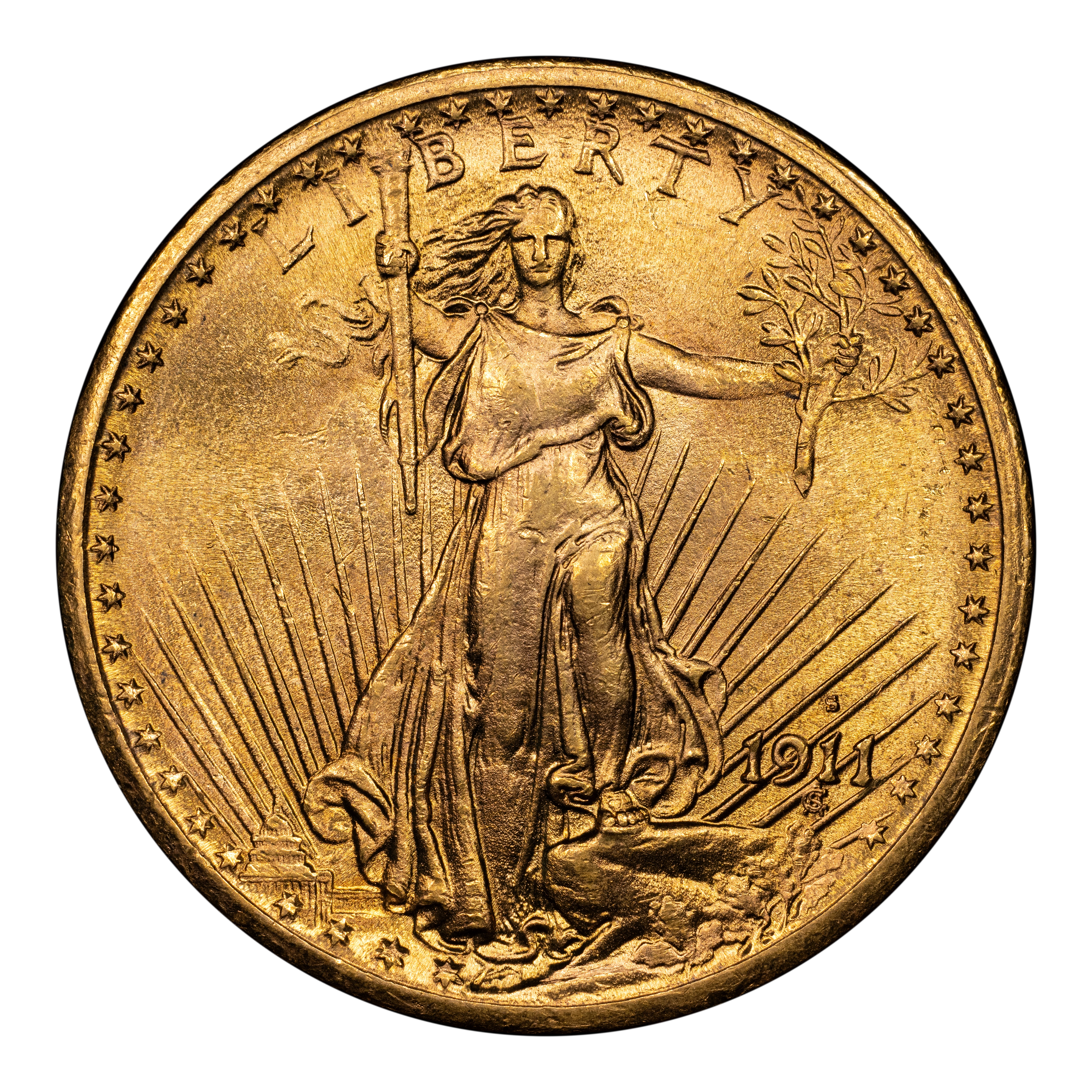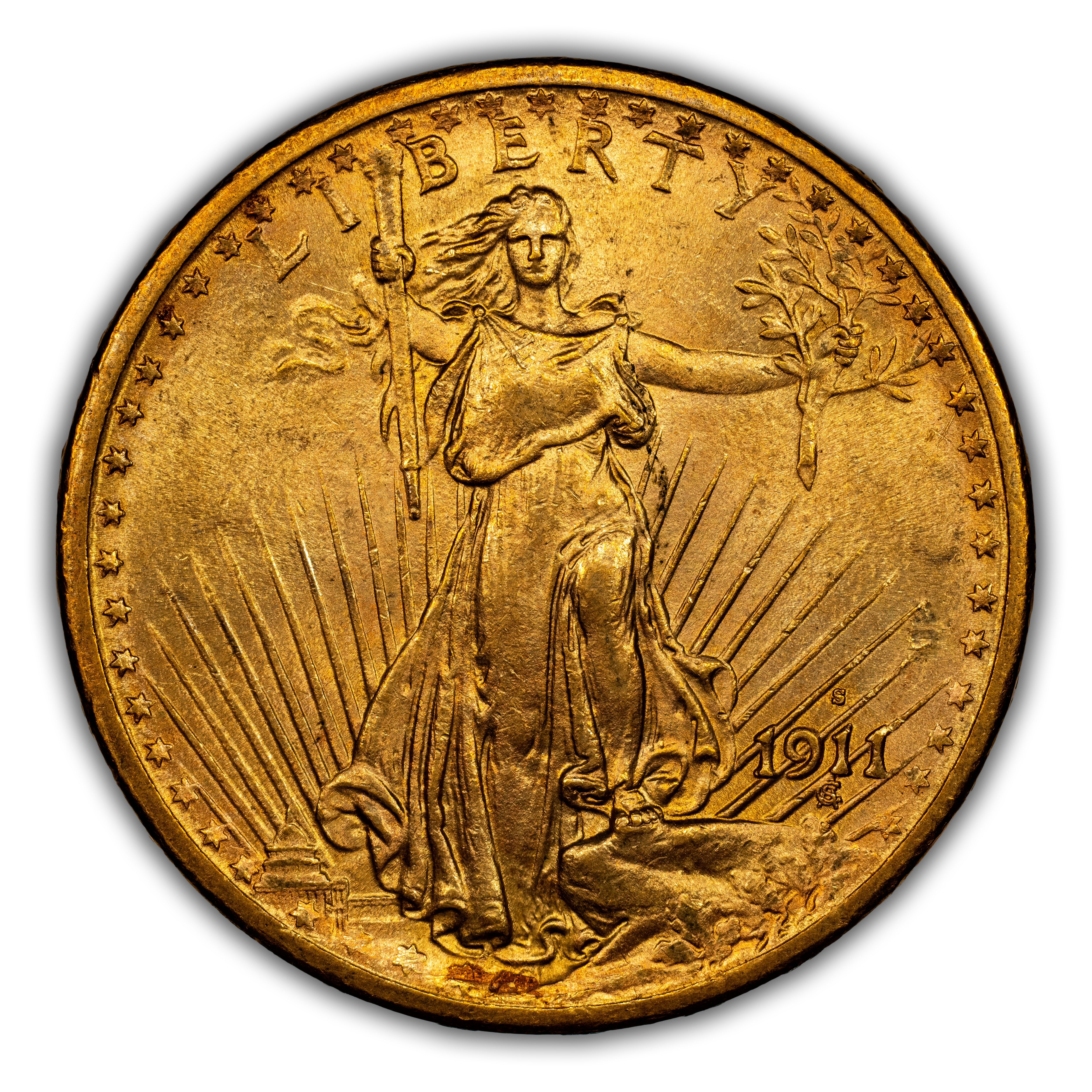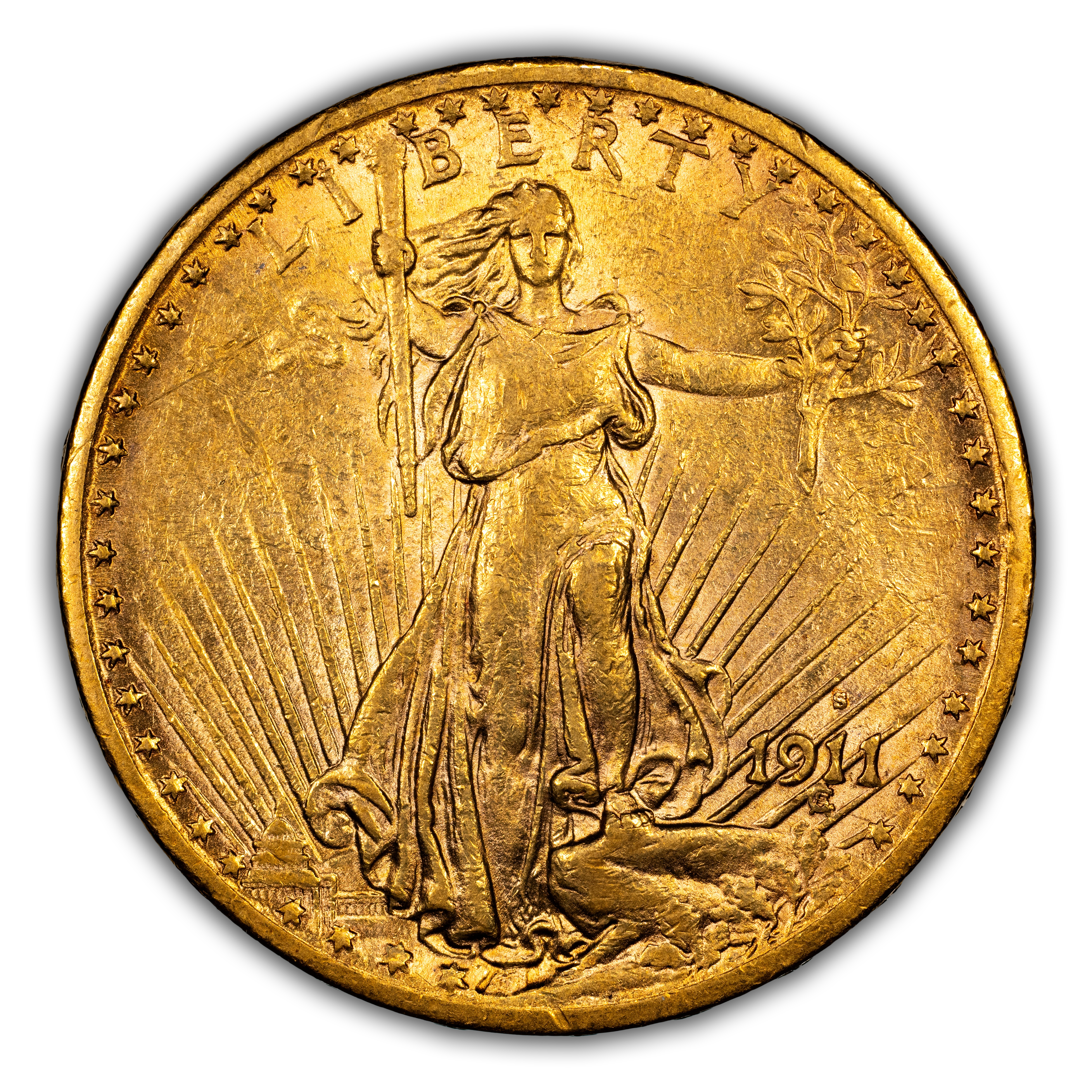 The 1911-S Saint-Gaudens double eagle is fairly common as far as Saints go. The coin is readily obtainable in circulated and lower uncirculated grades, though pieces grading MS65 or better are much scarcer and only a relative few are known in MS66 or better and are sought most especially by registry set collectors.