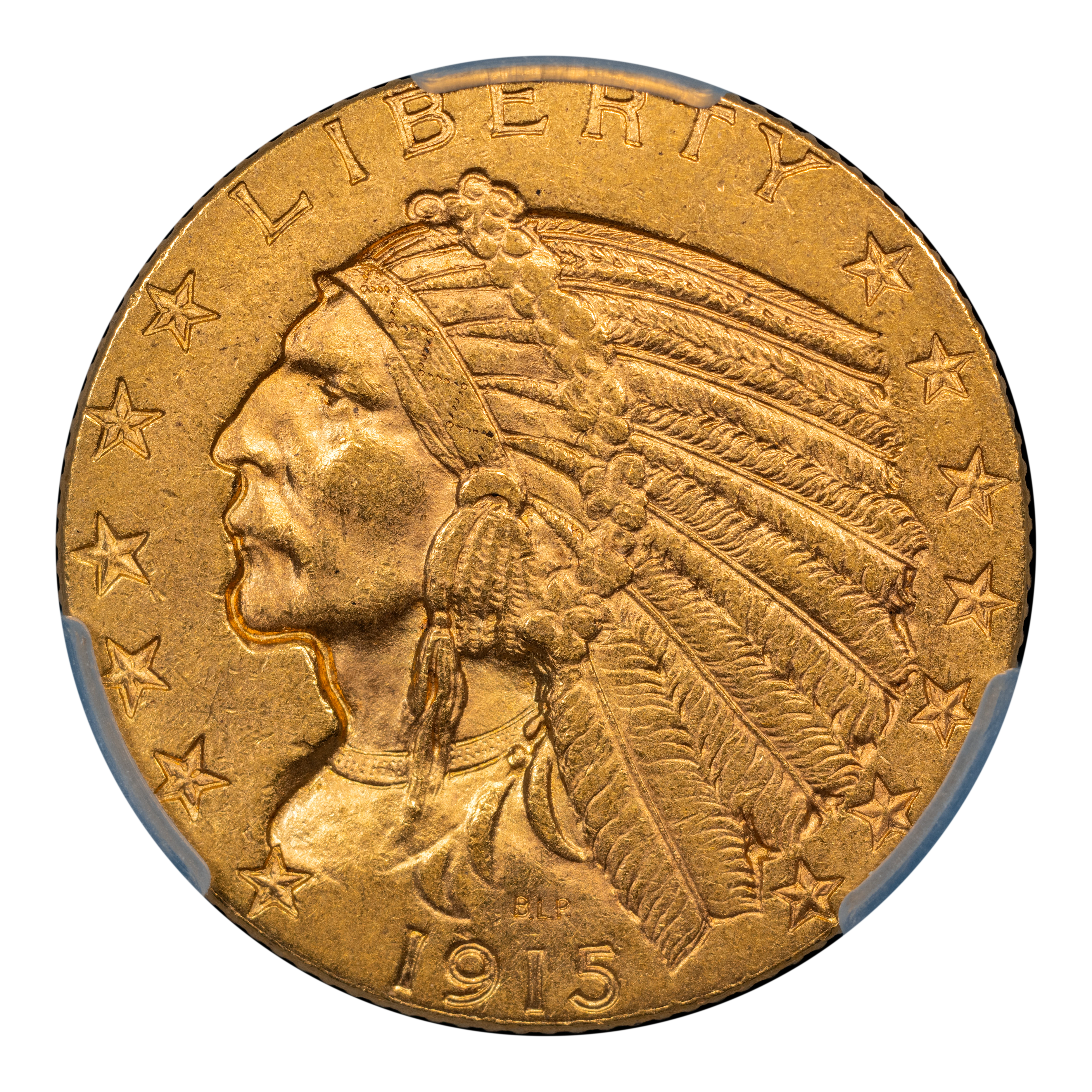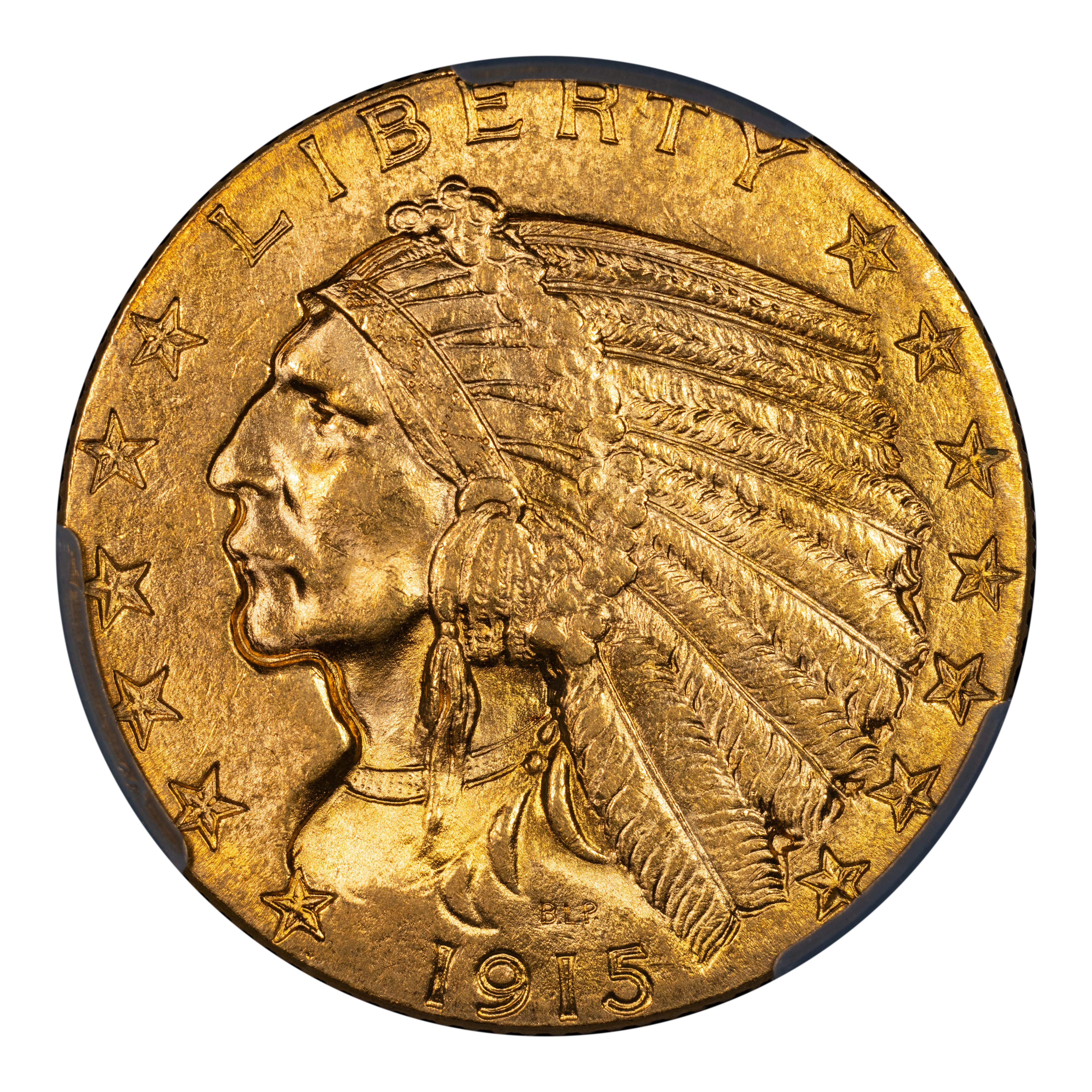 The 1915 Half Eagle is a fantastic type coin for this design for its affordability up to gem condition. Like mainly every other coin in the series when in gem condition it gets far more rare and valuable. Relative to the series though this issue is common all around. The 1908 is still seen far more often especially in the finest of grades but the 1915 is not too far off.
