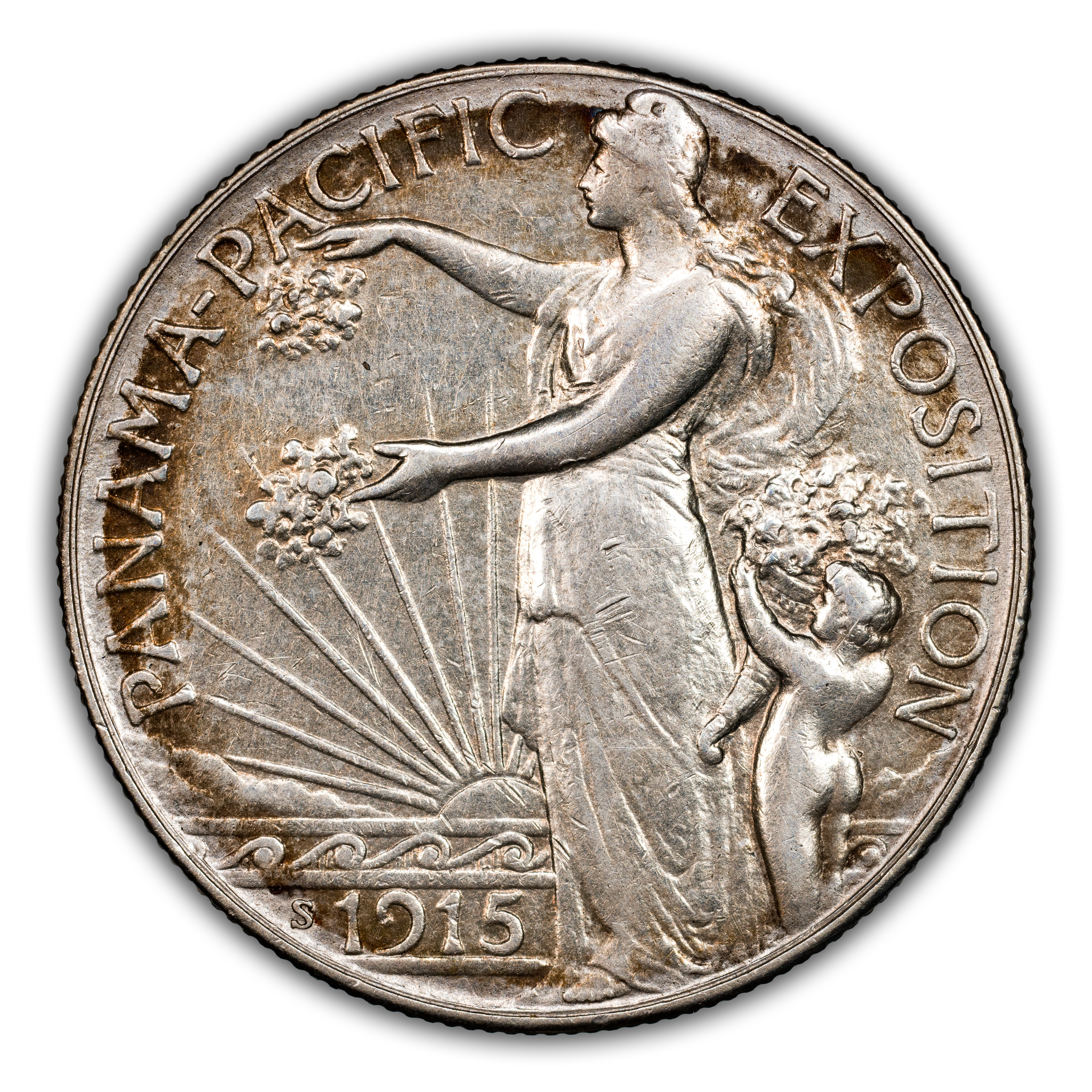 The 1915-S Panama-Pacific half dollar is one of the earlier silver issues in the silver commemorative series and is also one of the most numismatically important. It was struck to commemorate the 1915 Panama-Pacific Exposition in San Francisco, which hosted this most ostentatious world's fair just nine years after the City By The Bay was devastated by the horrific 1906 earthquake. Most of San Francisco crumbled or burned in the disaster, with the San Francisco Mint left as one of the few buildings standing in the city after the tragedy.