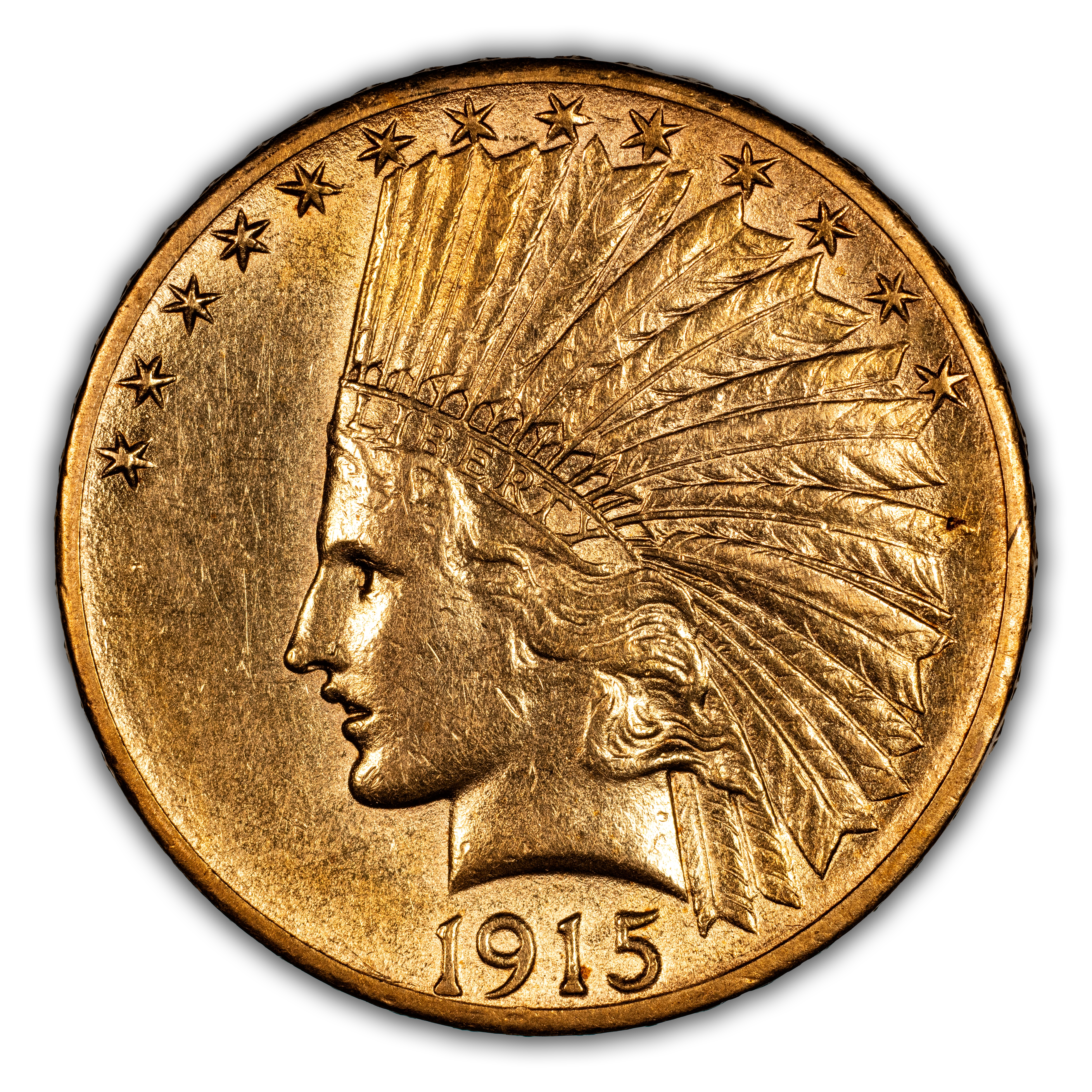 1915-S $10 MS61 NGC. With a mintage of only 59,000 pieces, the 1915-S Indian eagle is one of the key dates to the series. U...