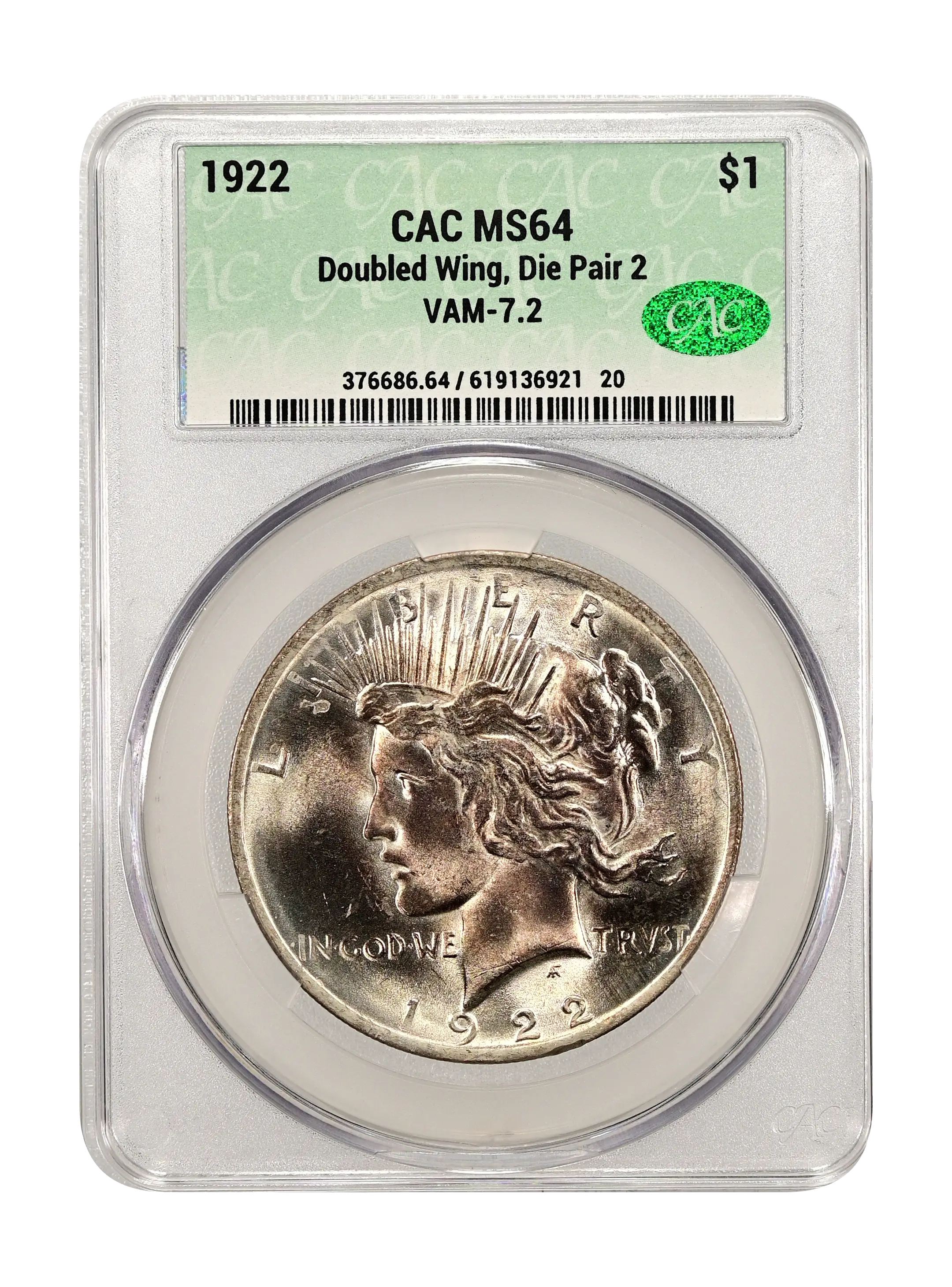 1922 Doubled Wing, Die Pair 2 $1 VAM-7.2 CAC MS64