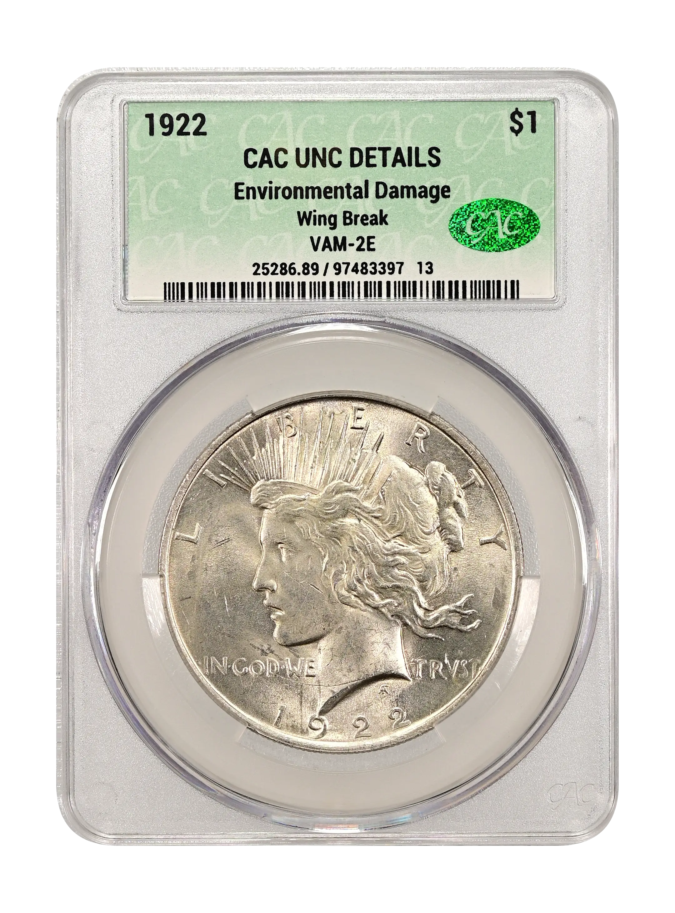 1922 Wing Break $1 VAM-2E CAC UNC DETAILS