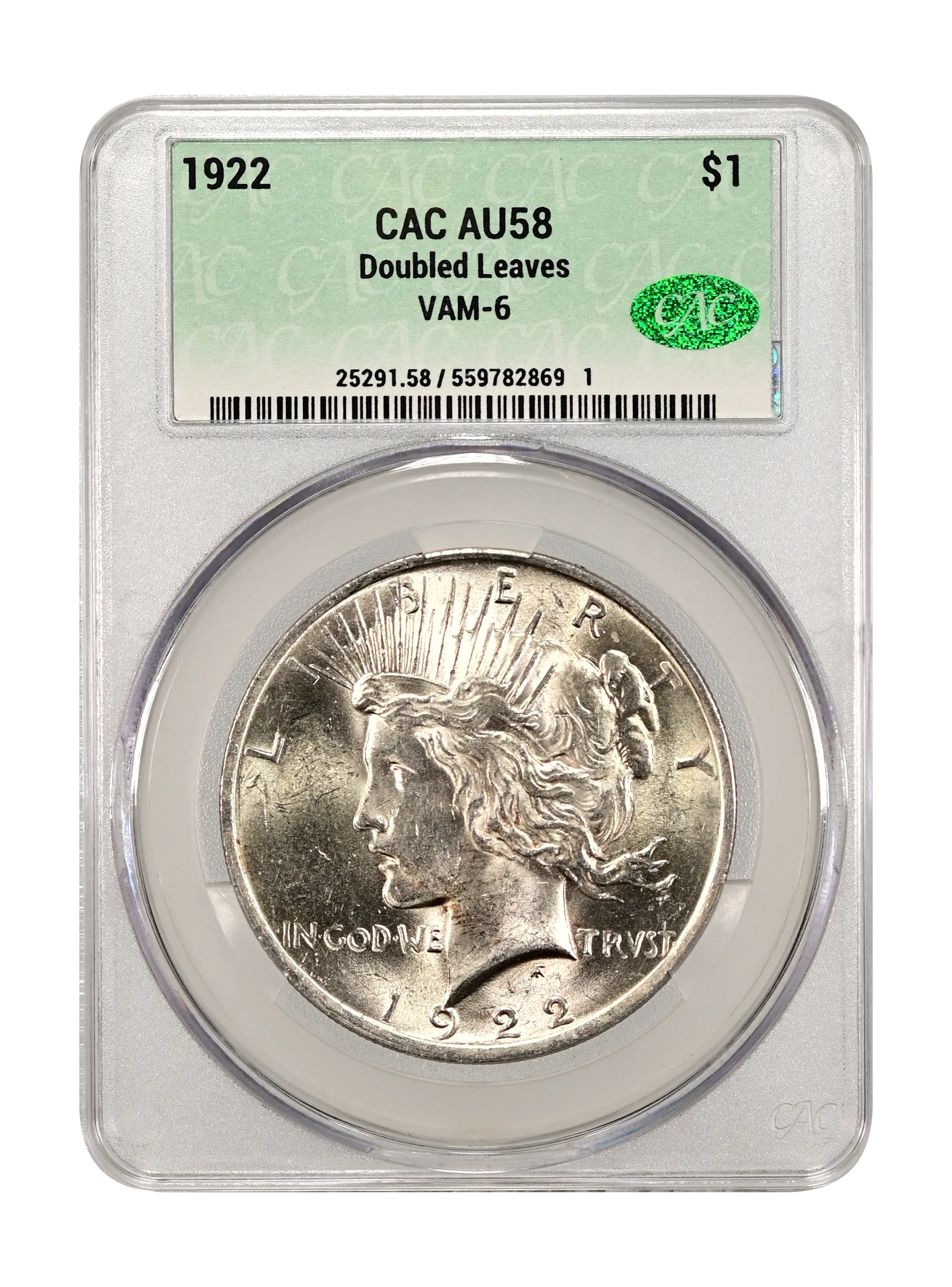1922 Doubled Leaves $1 VAM-6 CAC AU58