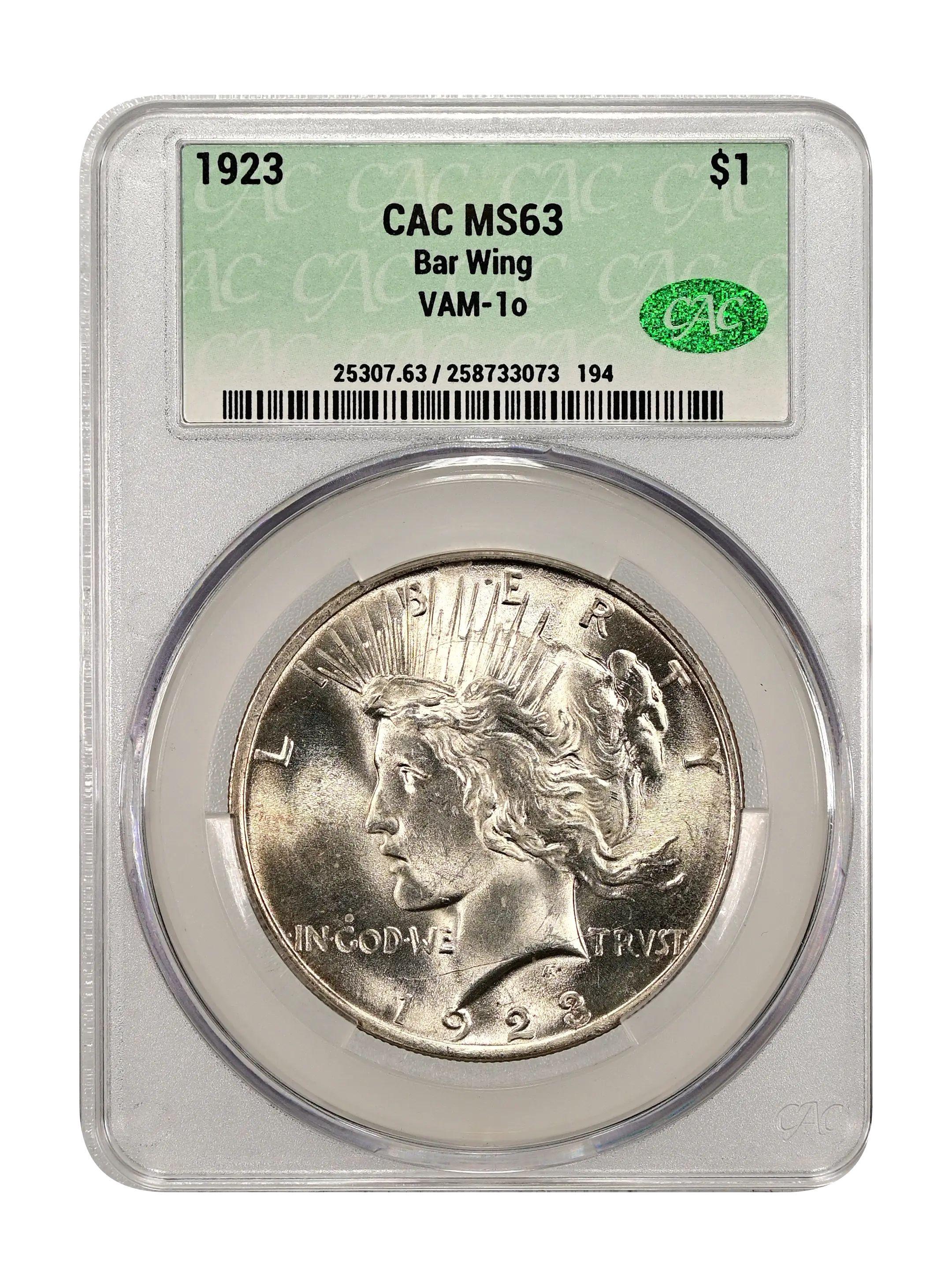Top 50 VAM: 1923 $1 PCGS/CAC MS63 (VAM-1O, Bar Wing)