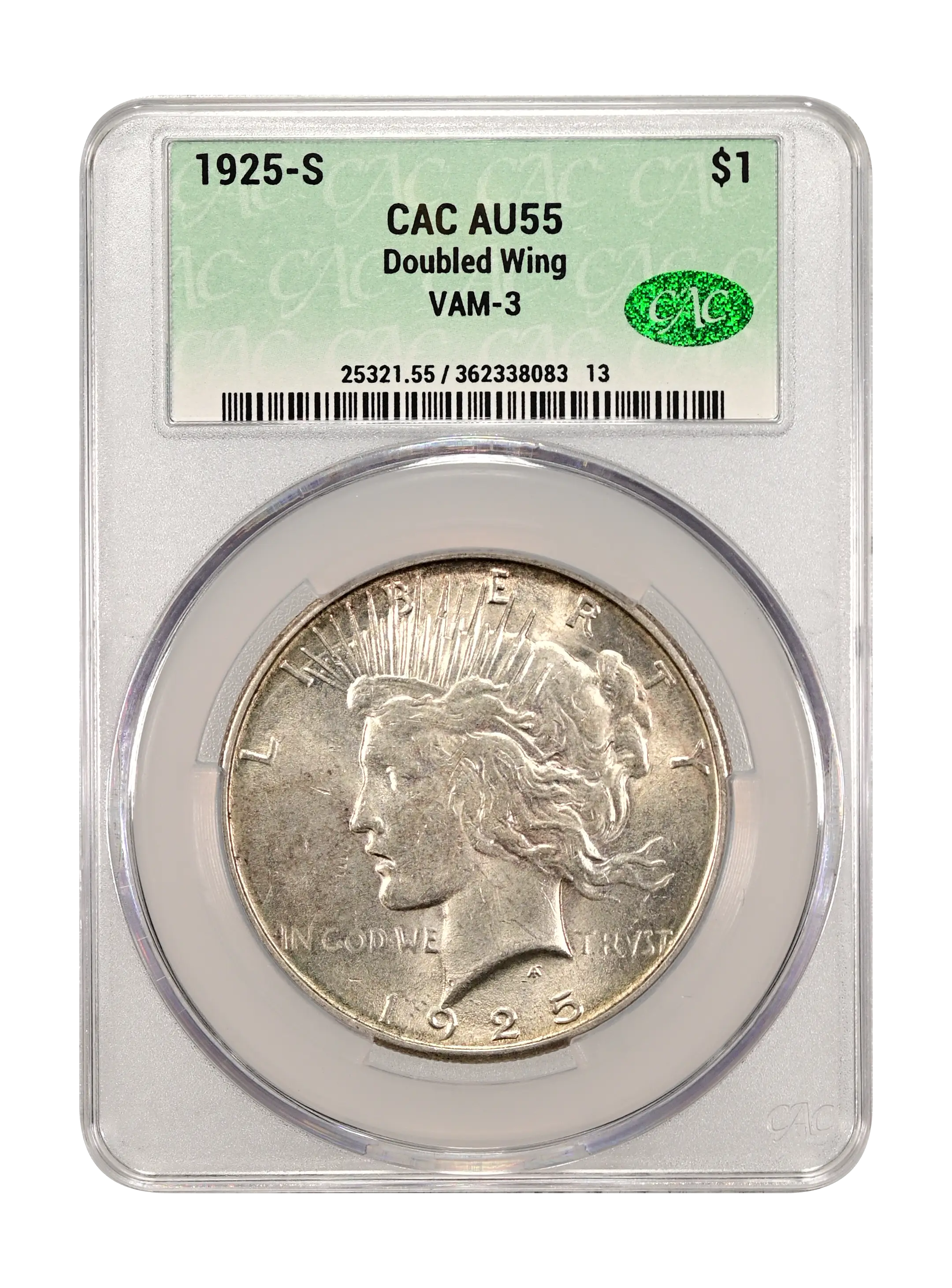 1925-S Doubled Wing $1 VAM-3 CAC AU55