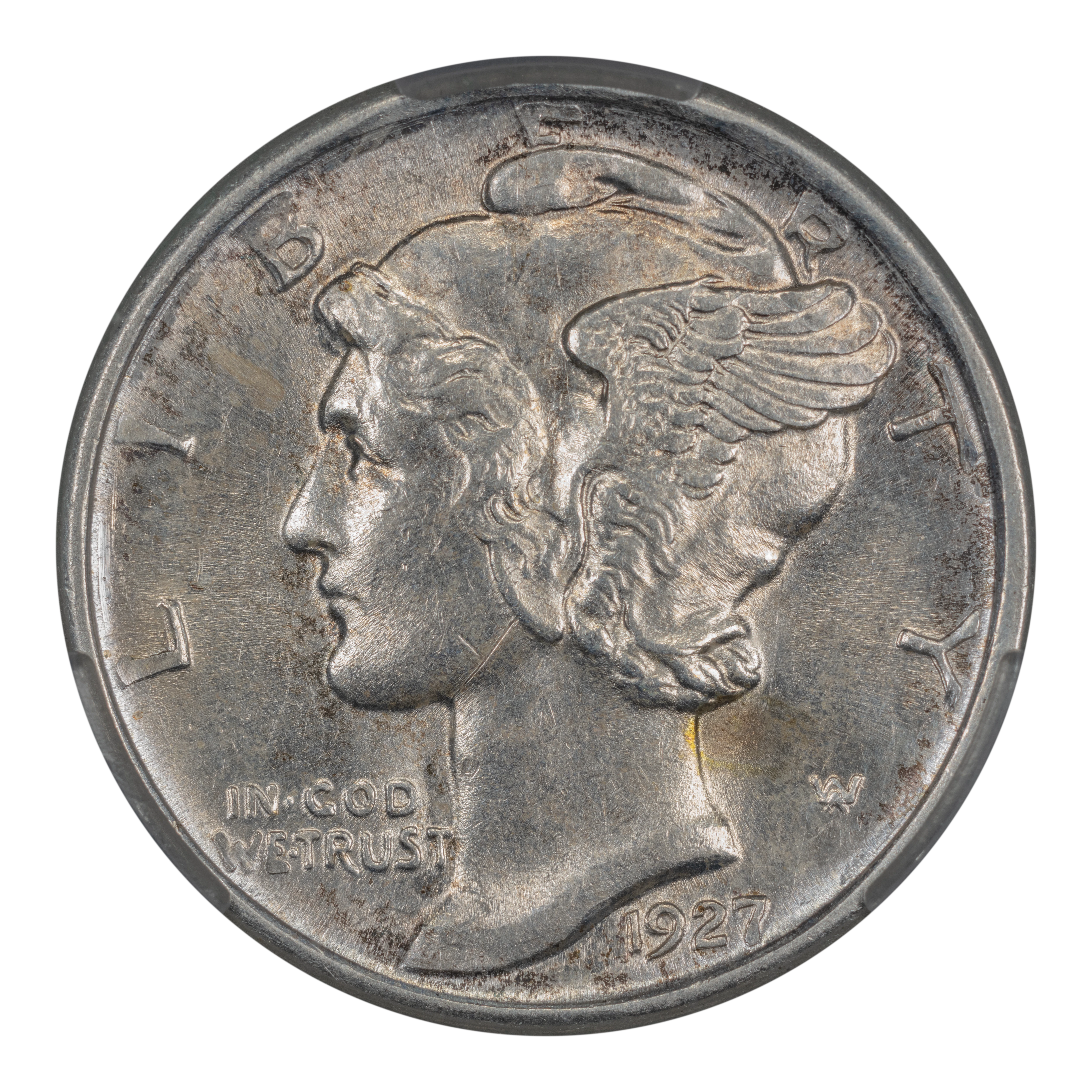 This Denver-mint issue is a widely available in circulated grades and can be found with relative ease through MS64, including specimens with Full Bands. In grades of MS65 and above, the 1927-D Mercury dime becomes much more challenging and is exceptionally rare in MS66 or better.