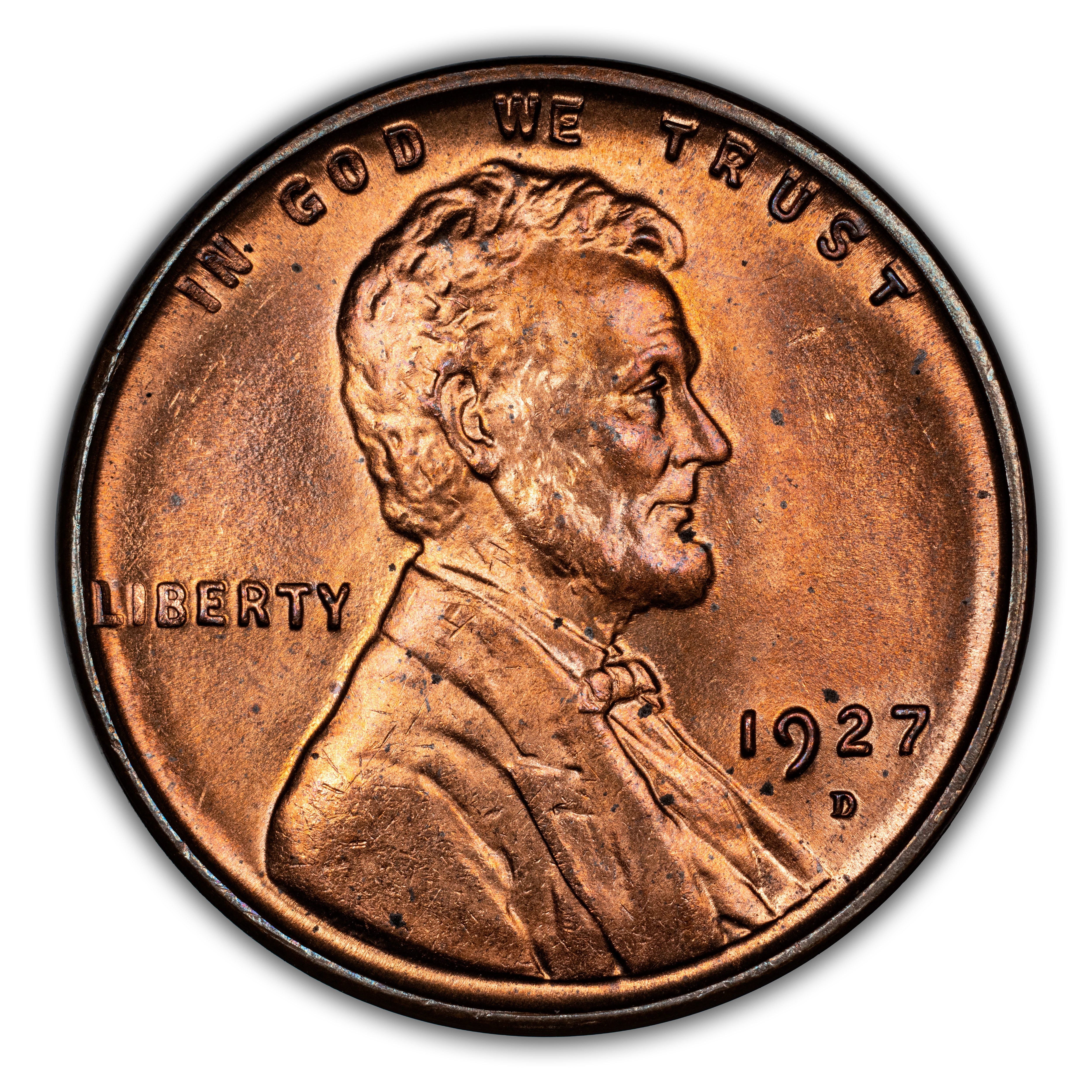 The 1927-D Lincoln cent is very common in circulated grades, scarce but available in Mint States grades, and considerably scarce to rare in Gem grades. it is a typical situation for 1920s mintmarked Lincolns, which often come soft in the strike and heavy in color or surface problems. Discriminating buyers, rather collector or dealer, will pay premiums when necessary for nice specimens with even color, good strike, and awesome eye appeal.