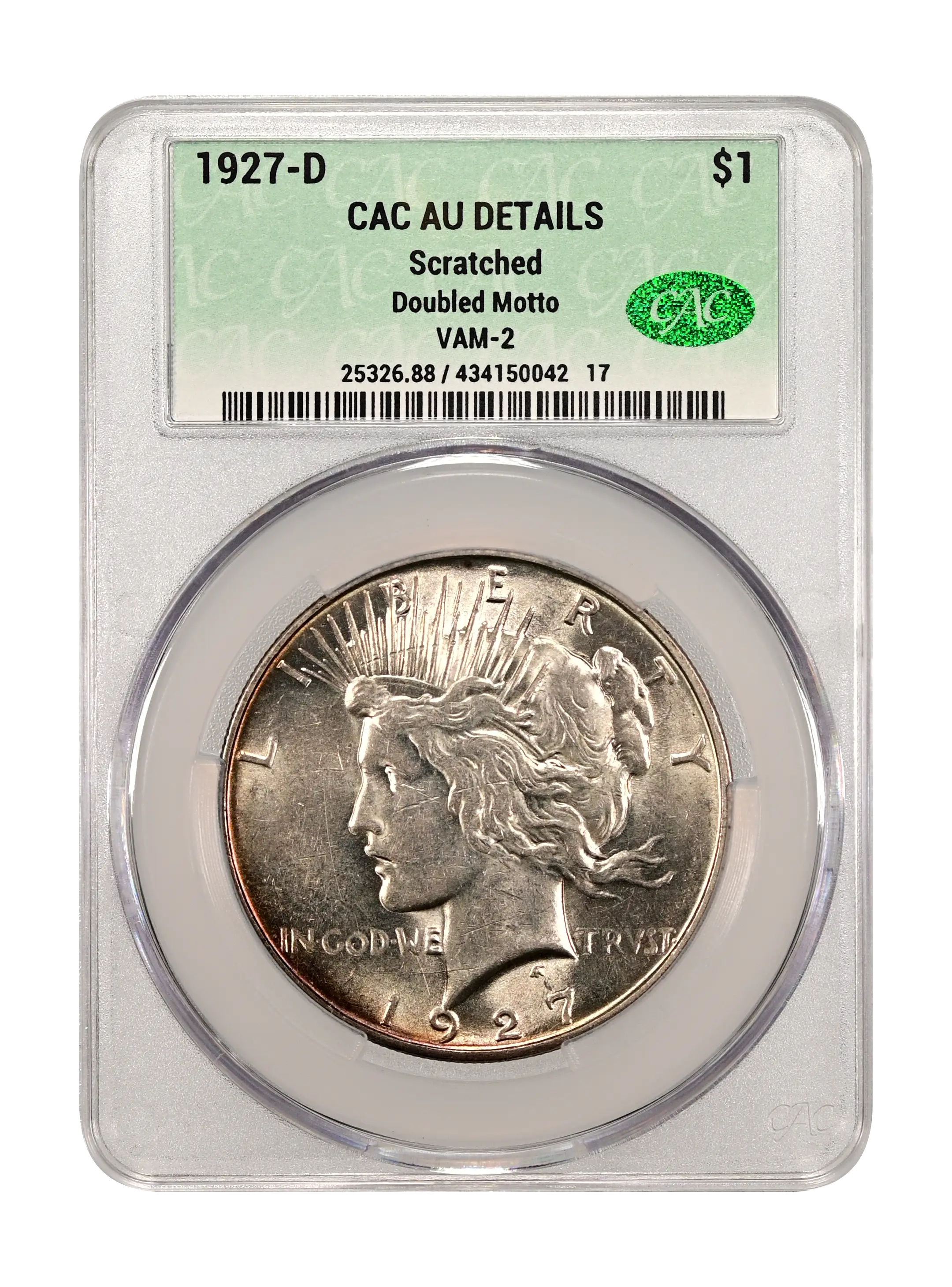 1927-D Doubled Motto $1 VAM-2 CAC AU DETAILS