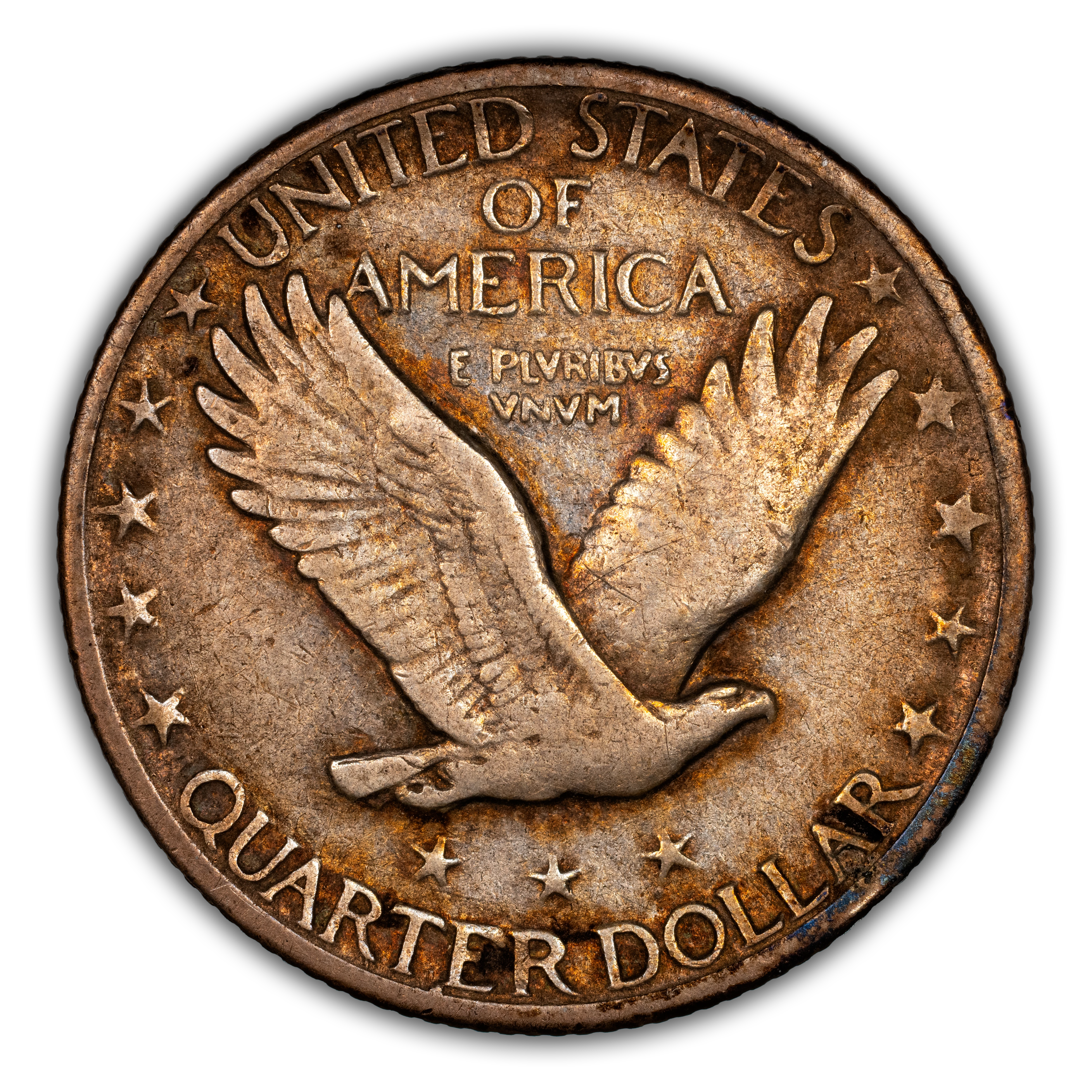 Reverse: An eagle in full flight, facing right, with UNITED STATES OF AMERICA above the great raptor. Stars flank the left and right peripheries with the words QUARTER DOLLAR at the bottom.