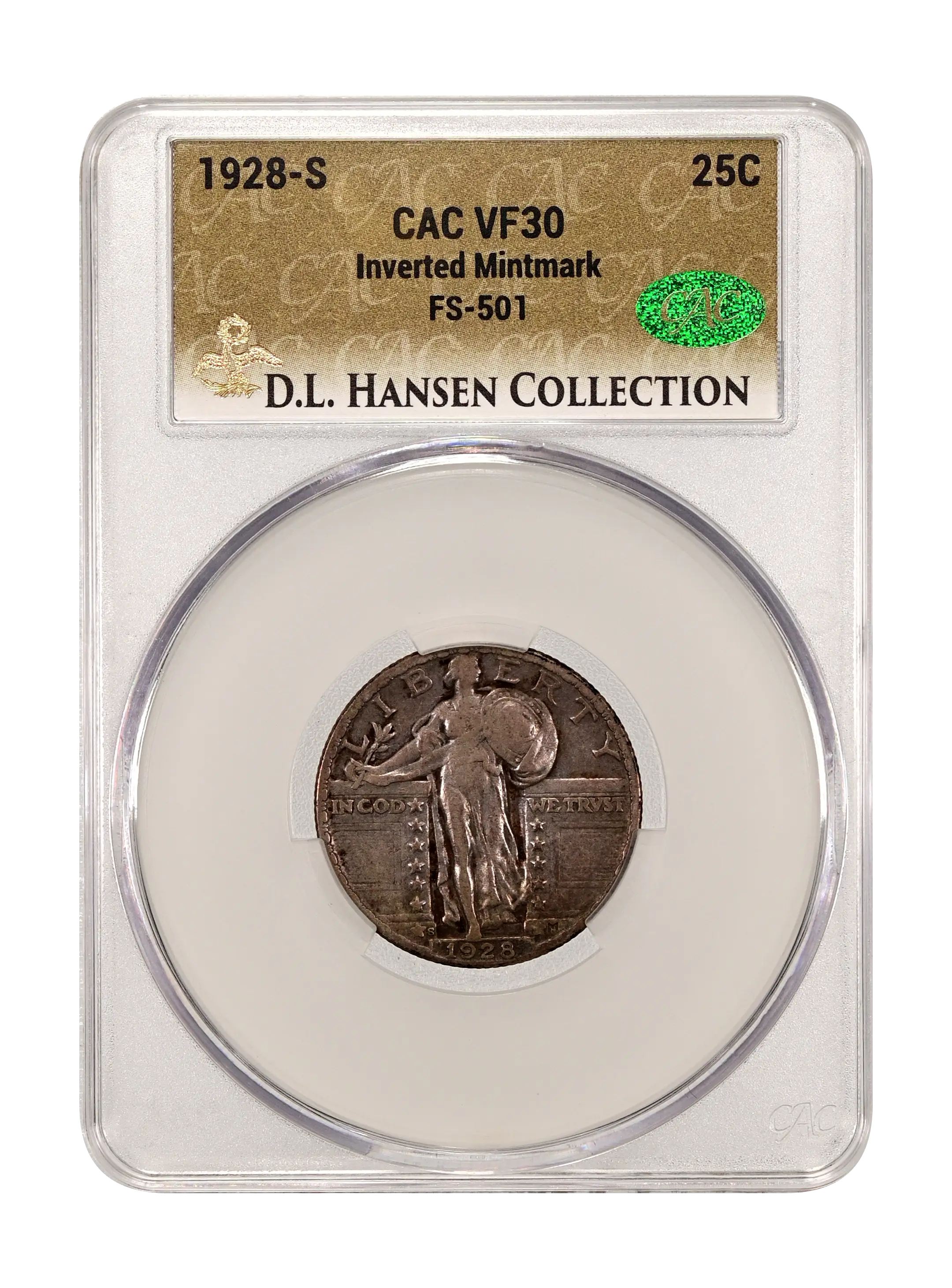 1928-S Inverted Mintmark 25c FS-501 CAC VF30