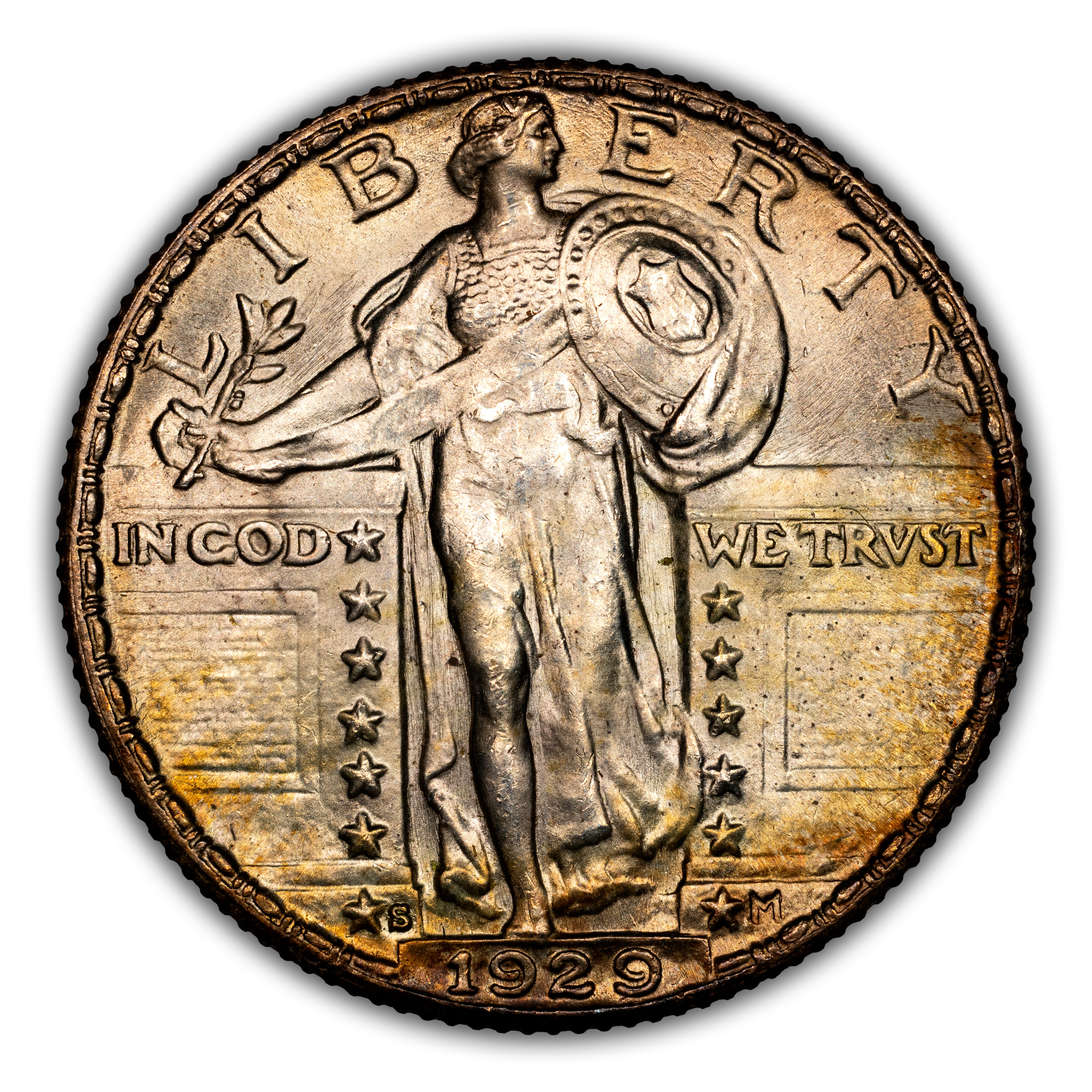 The 1929 Standing Liberty Quarter San Francisco Mint is an ideal branch mint type coin for the series. Collectability begins at the high-end AU range and remains very accessible up until the gem level. MS66 is considered scarce with anything finer being a really great rarity. Along with the accessibility and affordability, this date also comes with a strong strike, quality luster and even some attractive toning making it a great FH type coin.