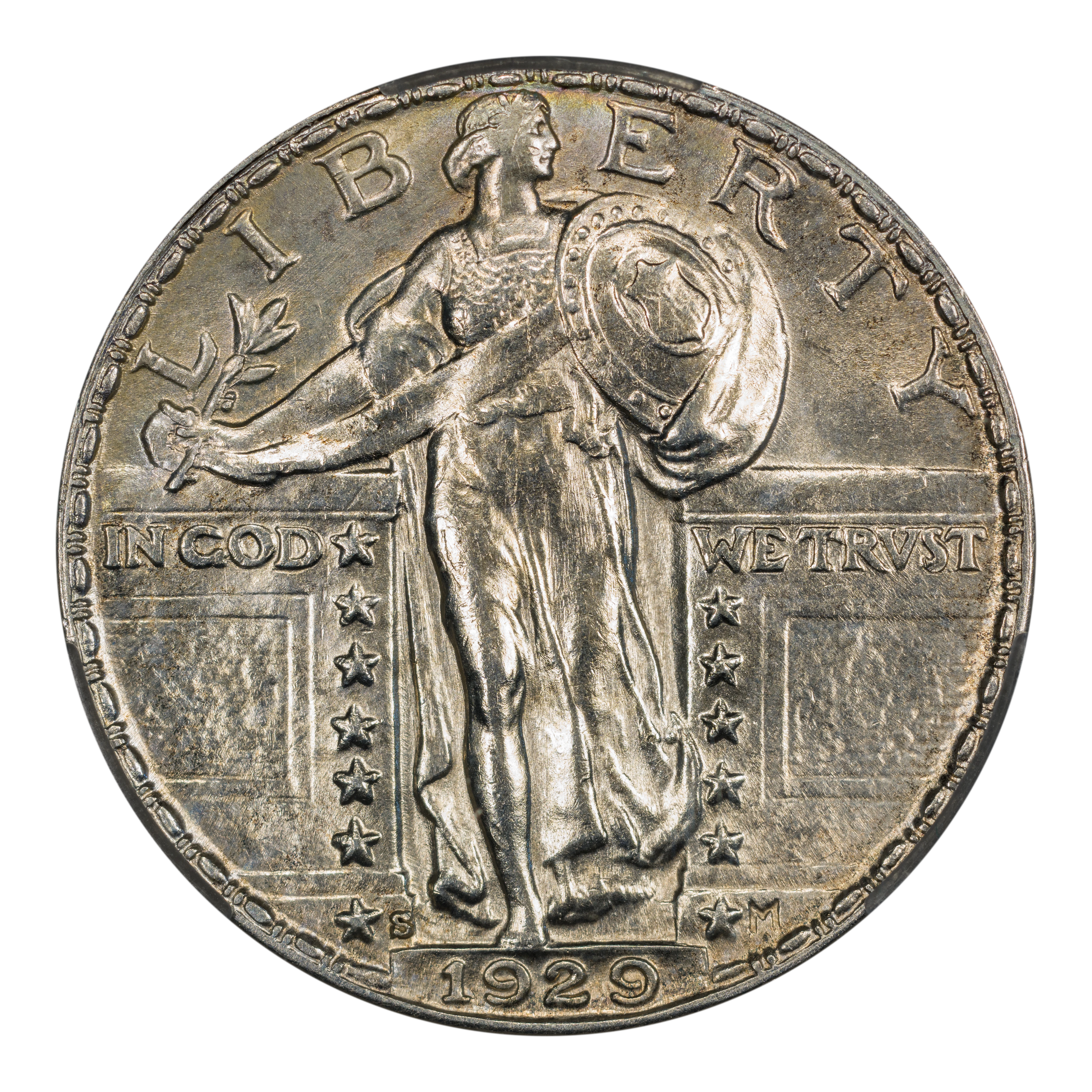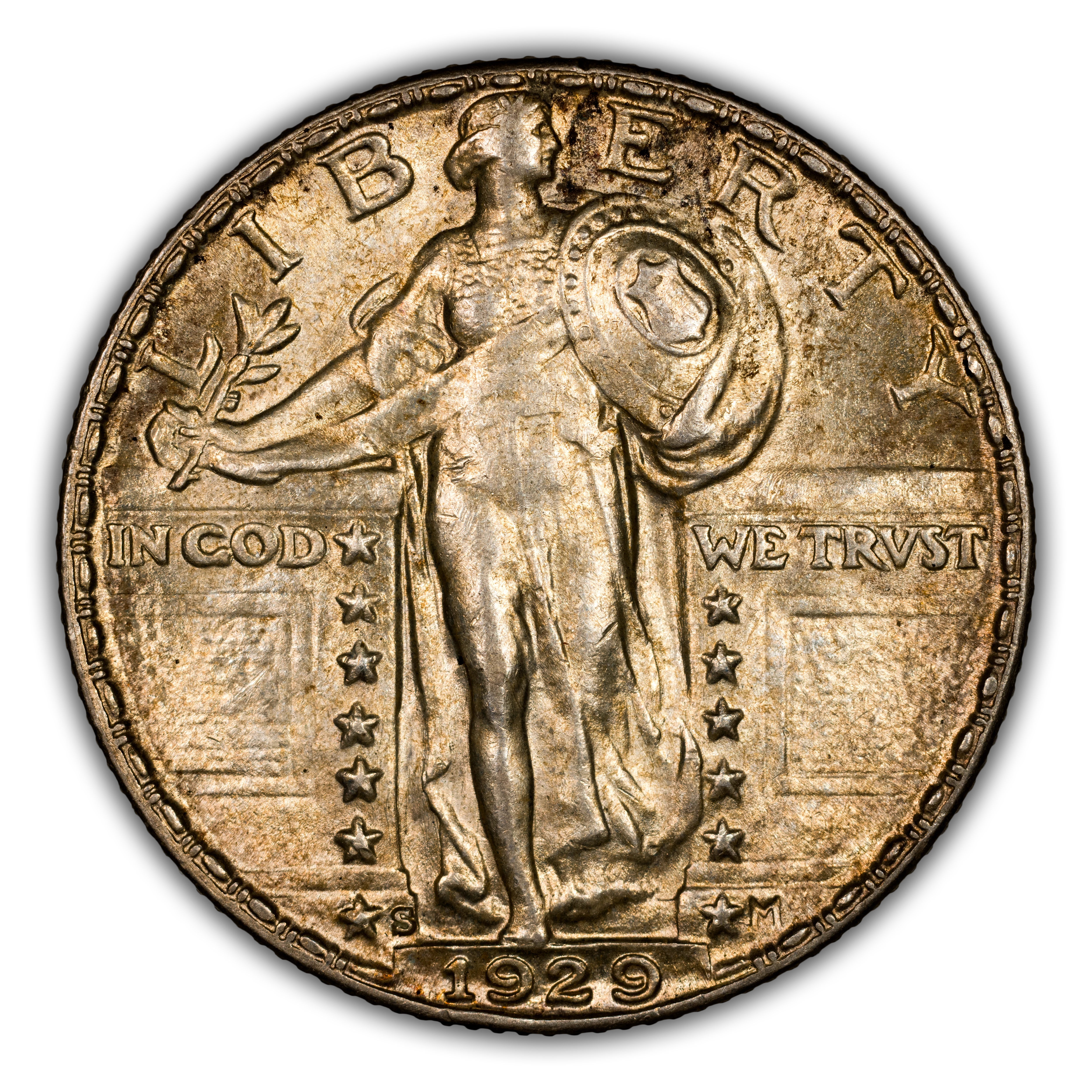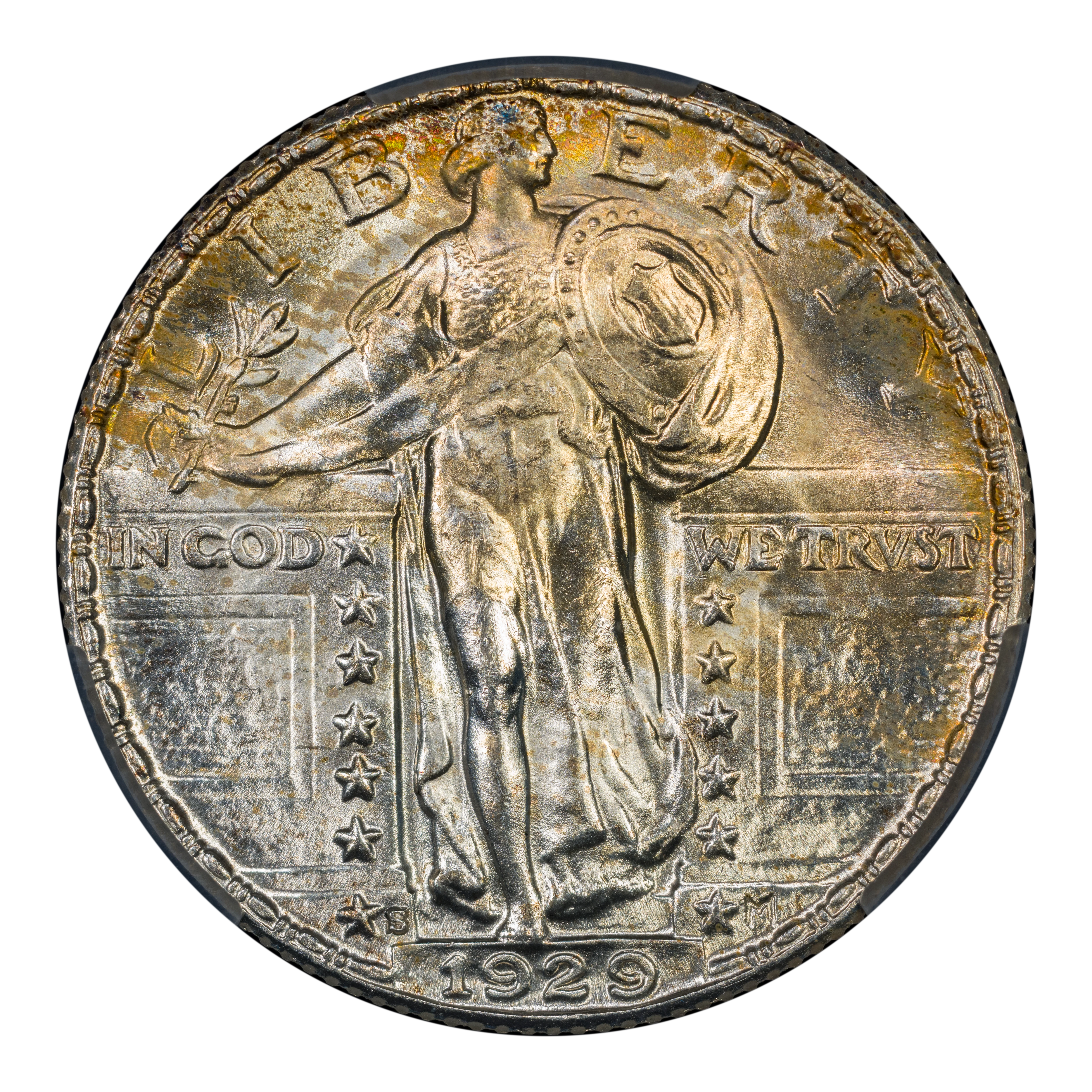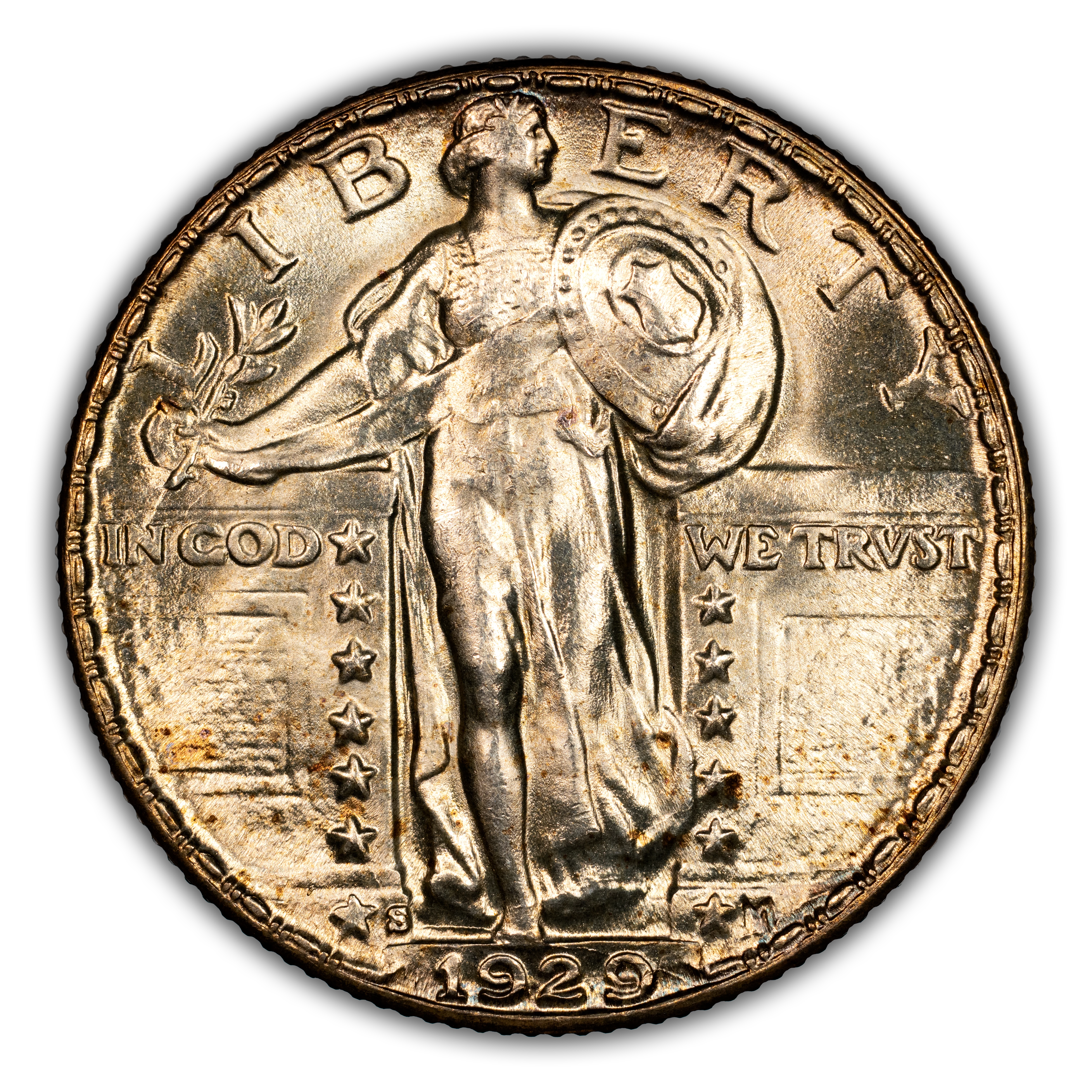 The 1929 Standing Liberty Quarter San Francisco is an ideal branch mint type coin for the series. Collectability begins in the AU range and remains very accessible up until MS67. MS67 and any finer are considered scarce. This issue comes with a strong strike, quality luster and, in some cases, very attractive toning.