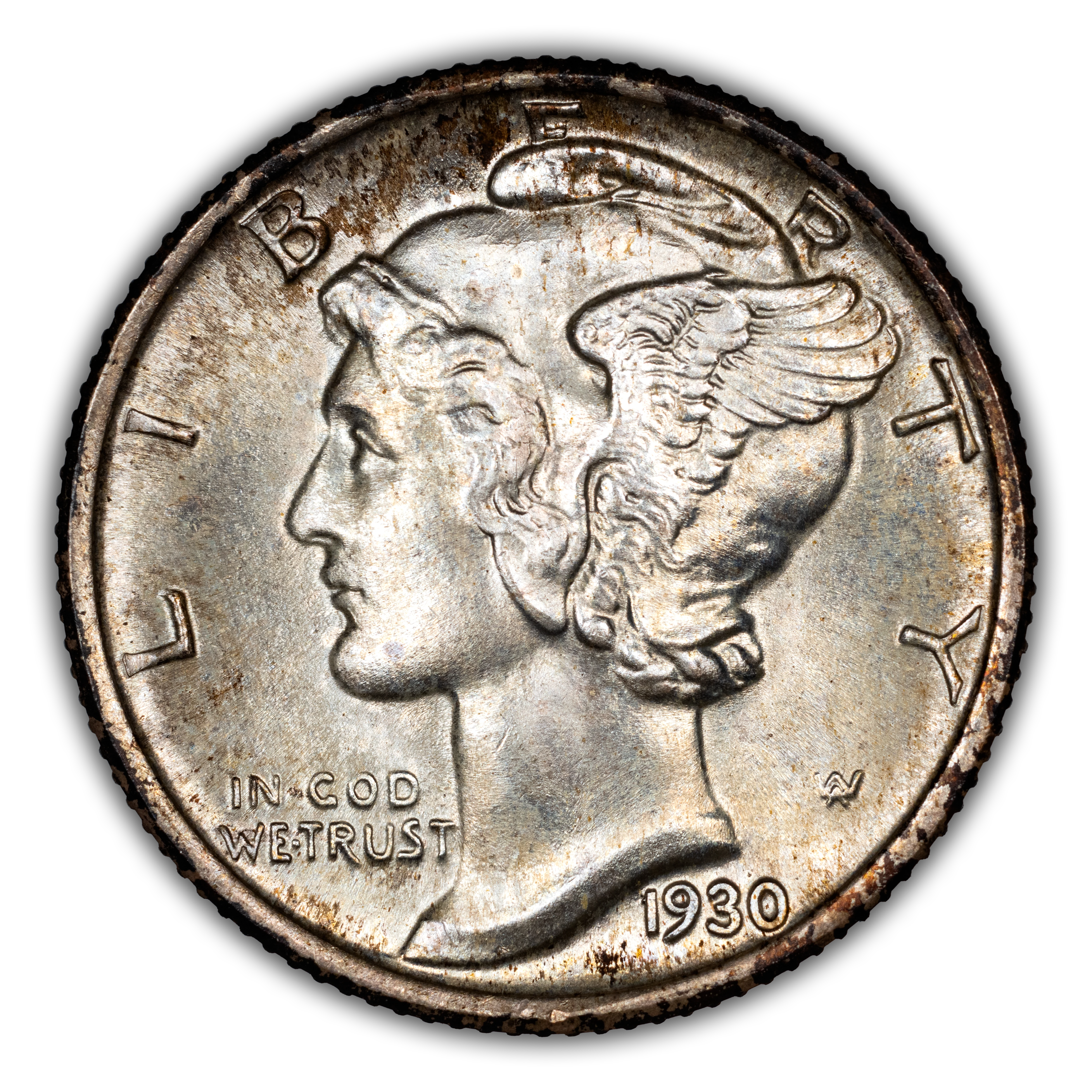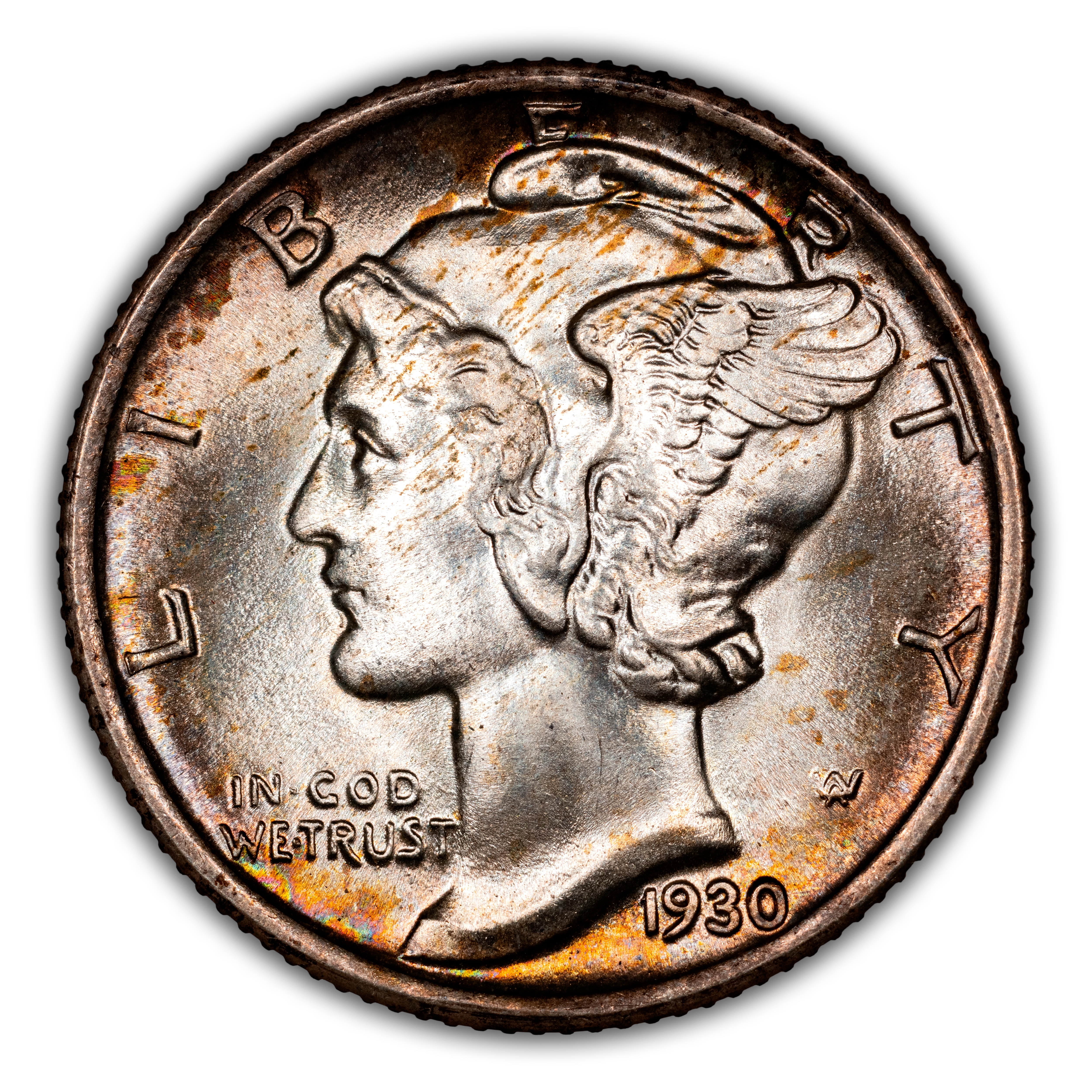 1930-S Mercury dimes are common enough in the circulated grades and common into the uncirculated grades up to MS65. Higher than that, and availability of this piece goes from plentiful to scarce, with regular and Full Bands examples commanding substantial premiums. Buyers generally get their money's worth for these high-end examples, which normally exhibit great color and nice luster.