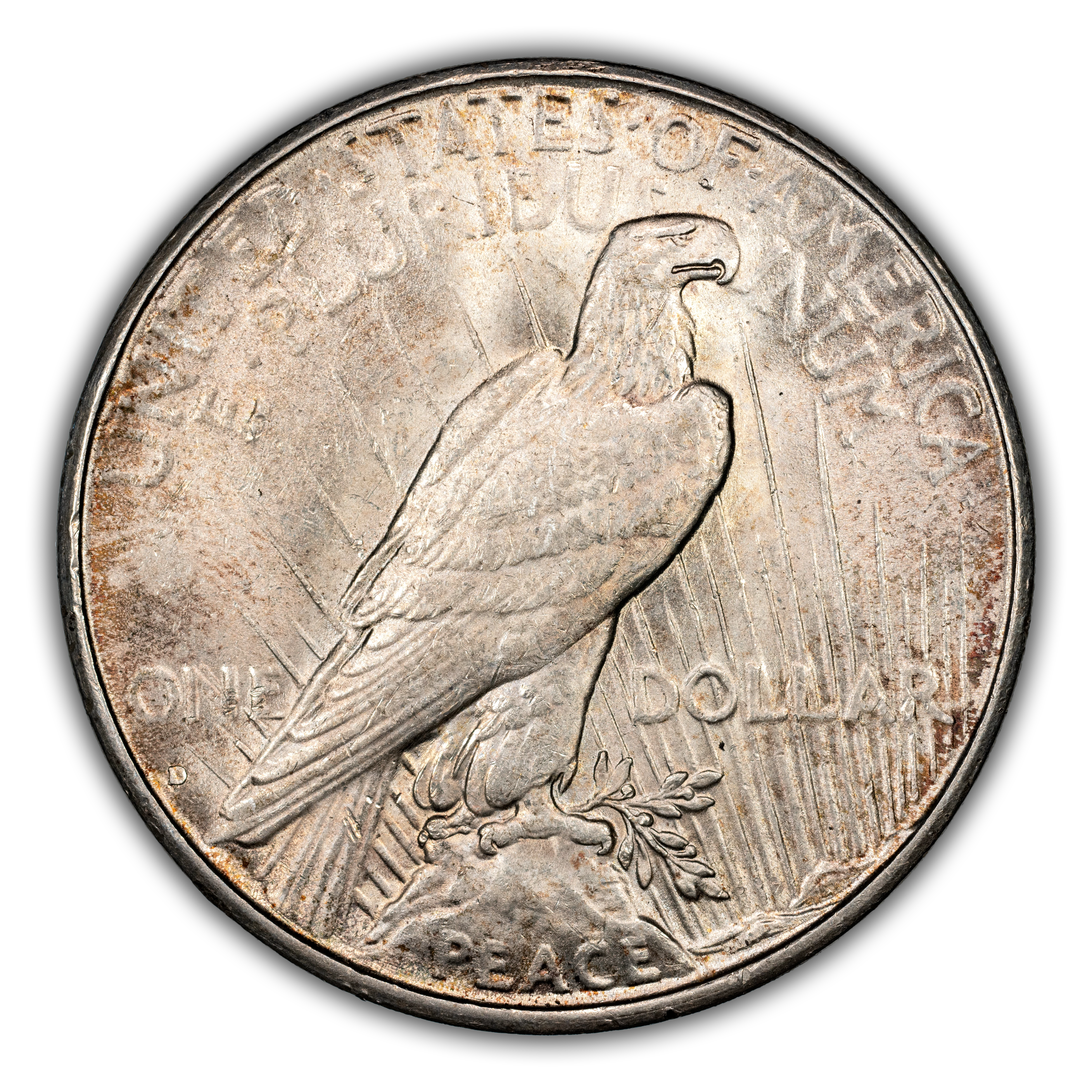 Reverse: Perched eagle standing on a rock facing the right with UNITED STATES oF AMERICA and E PLURIBUS UNUM at the top periphery. The denomination of ONE DOLLAR left and right of the eagle's tail and the word PEACE at the bottom. Mintmark, if any, appears below the word ONE on the left side.