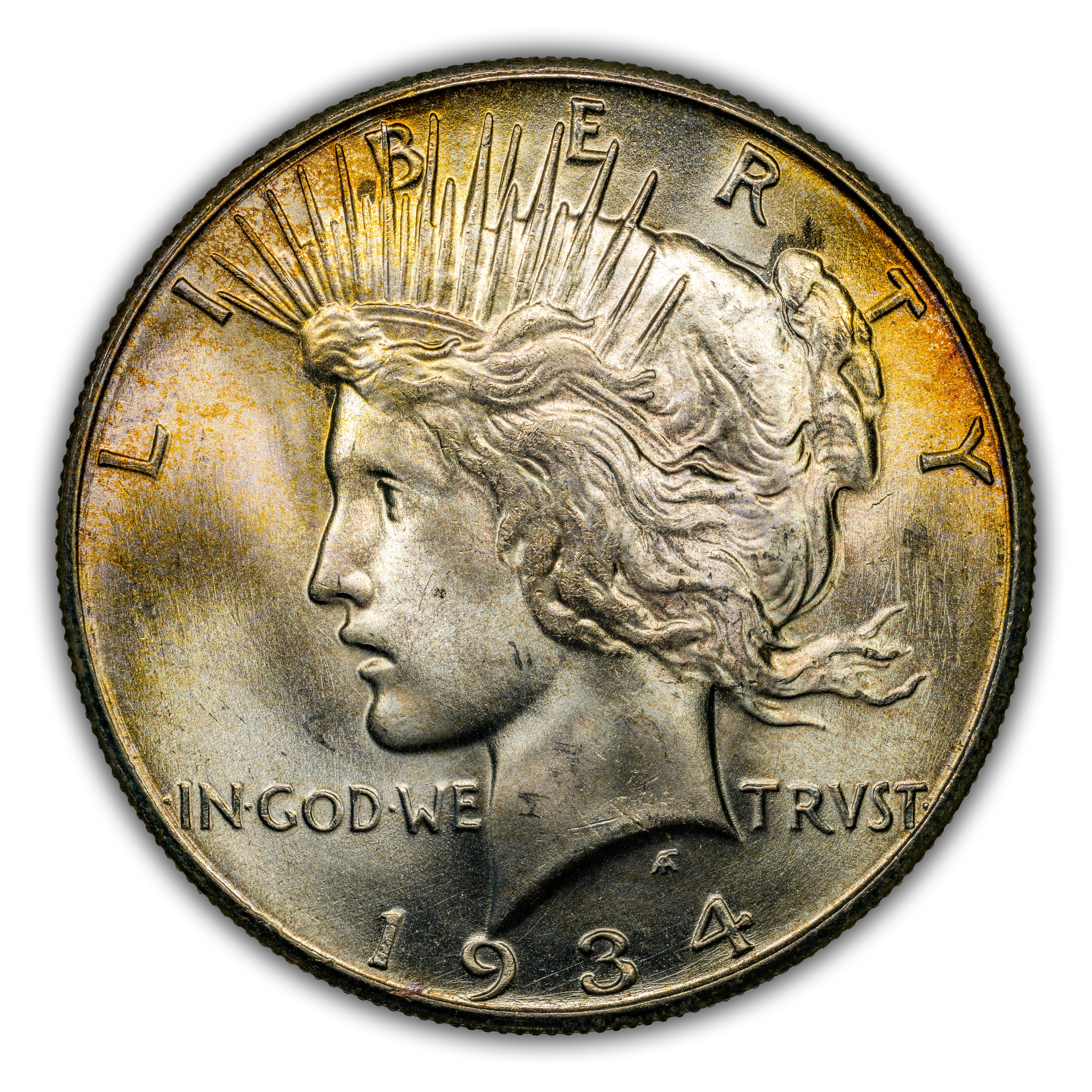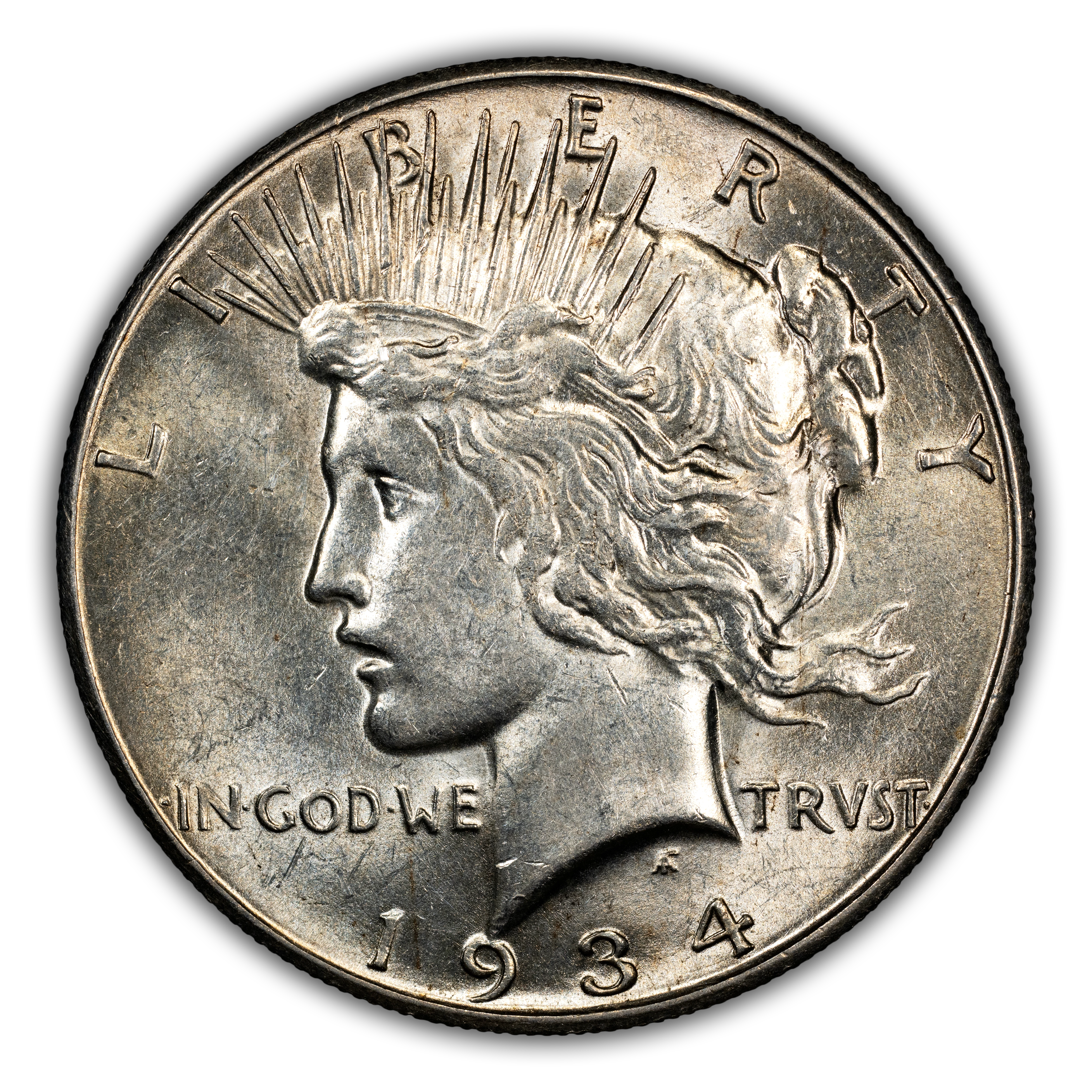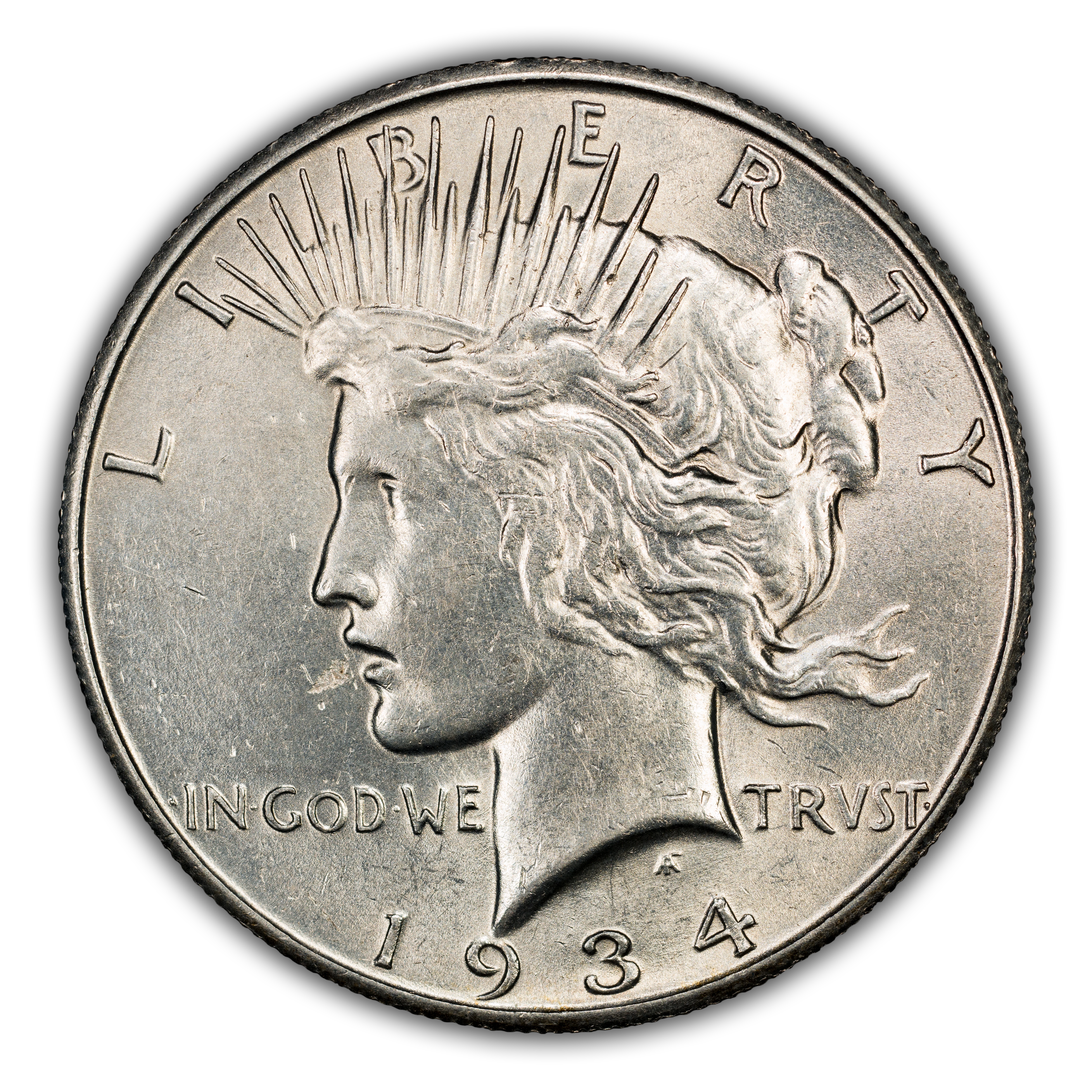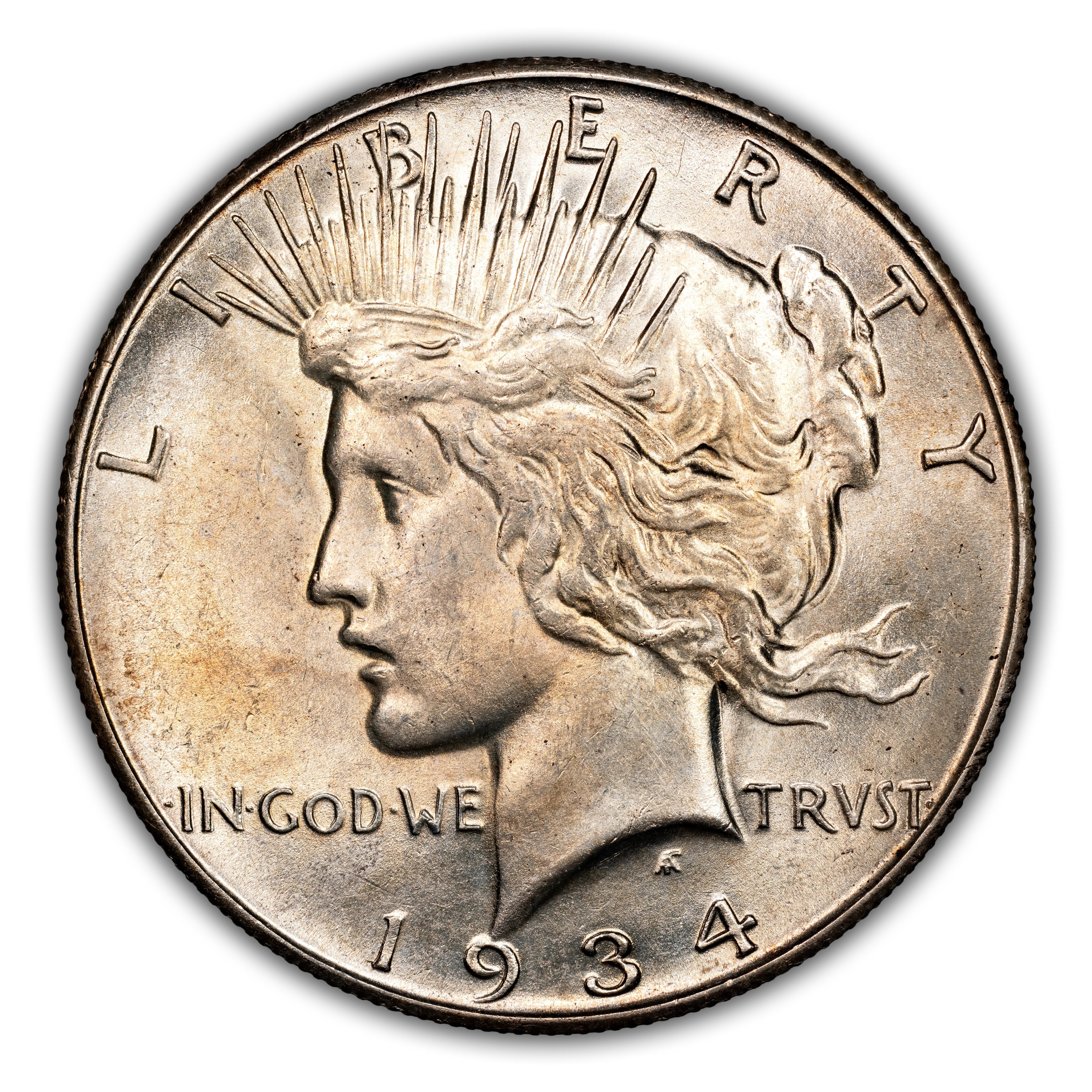The 1934-S Peace dollar is considered to be the rarest issue in Mint State and simply the key to the entire series. This coin has many problems, including bag marks, with striking as a major issue as well. Very scarce in all uncirculated grades with value gradually increasing until MS66 which is a true rarity.