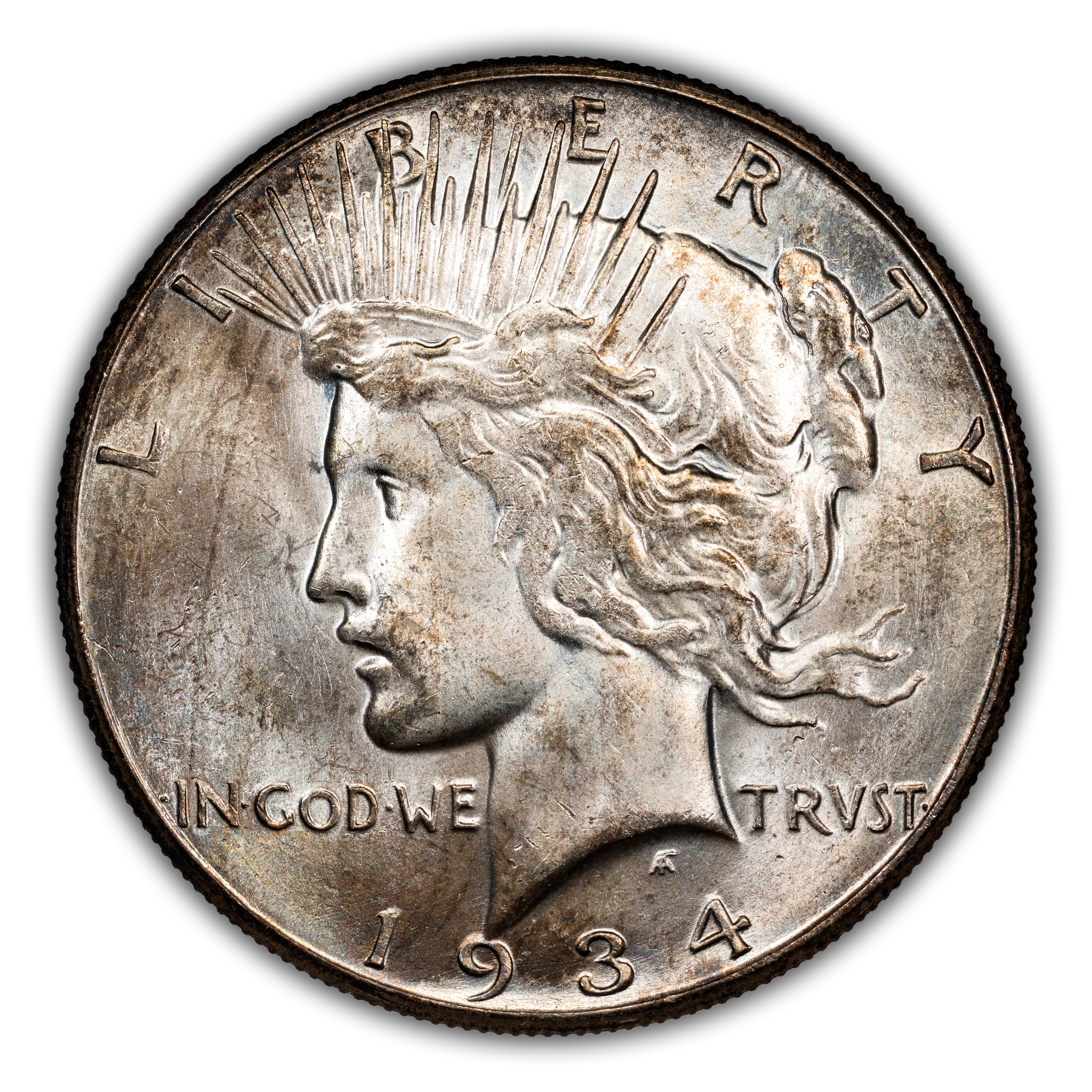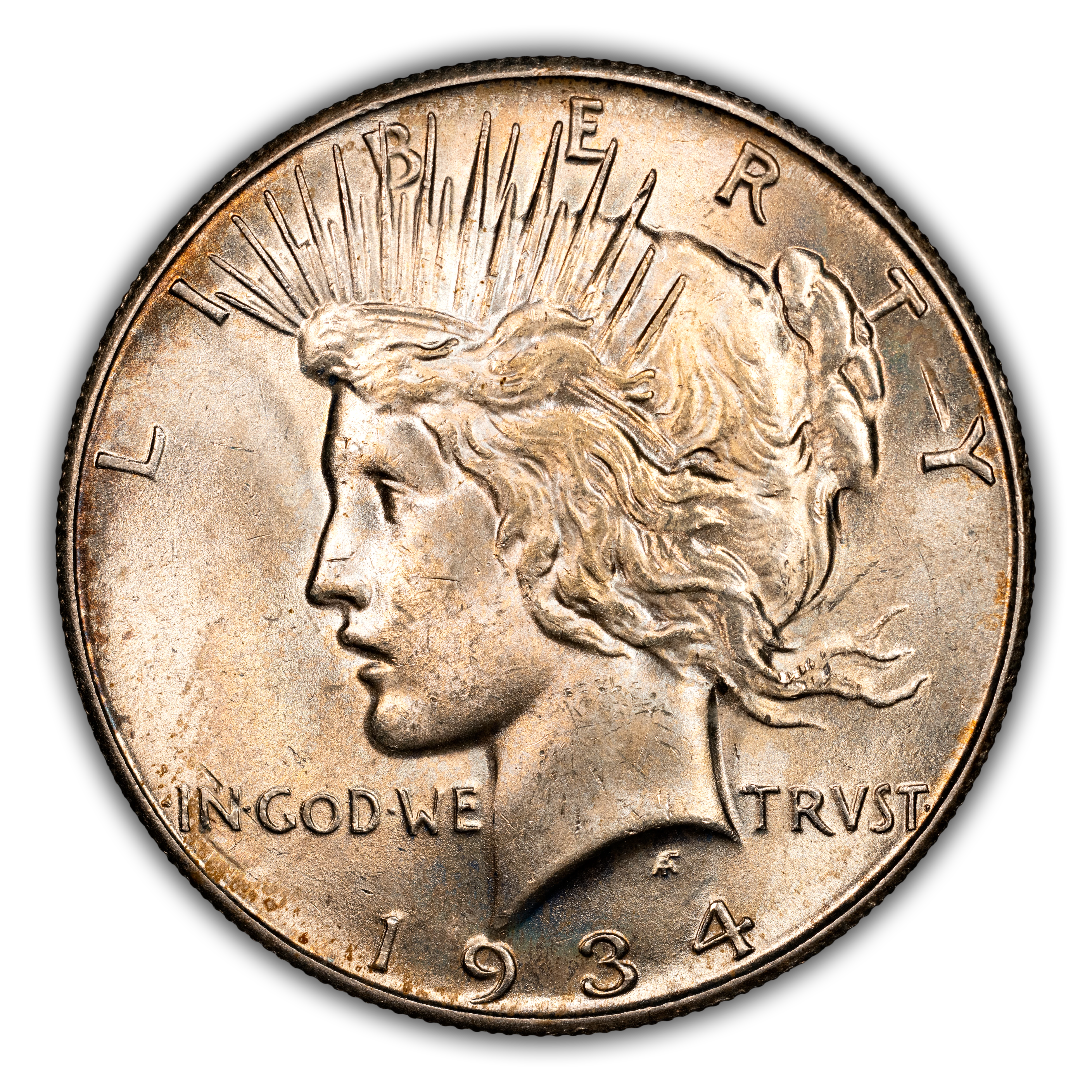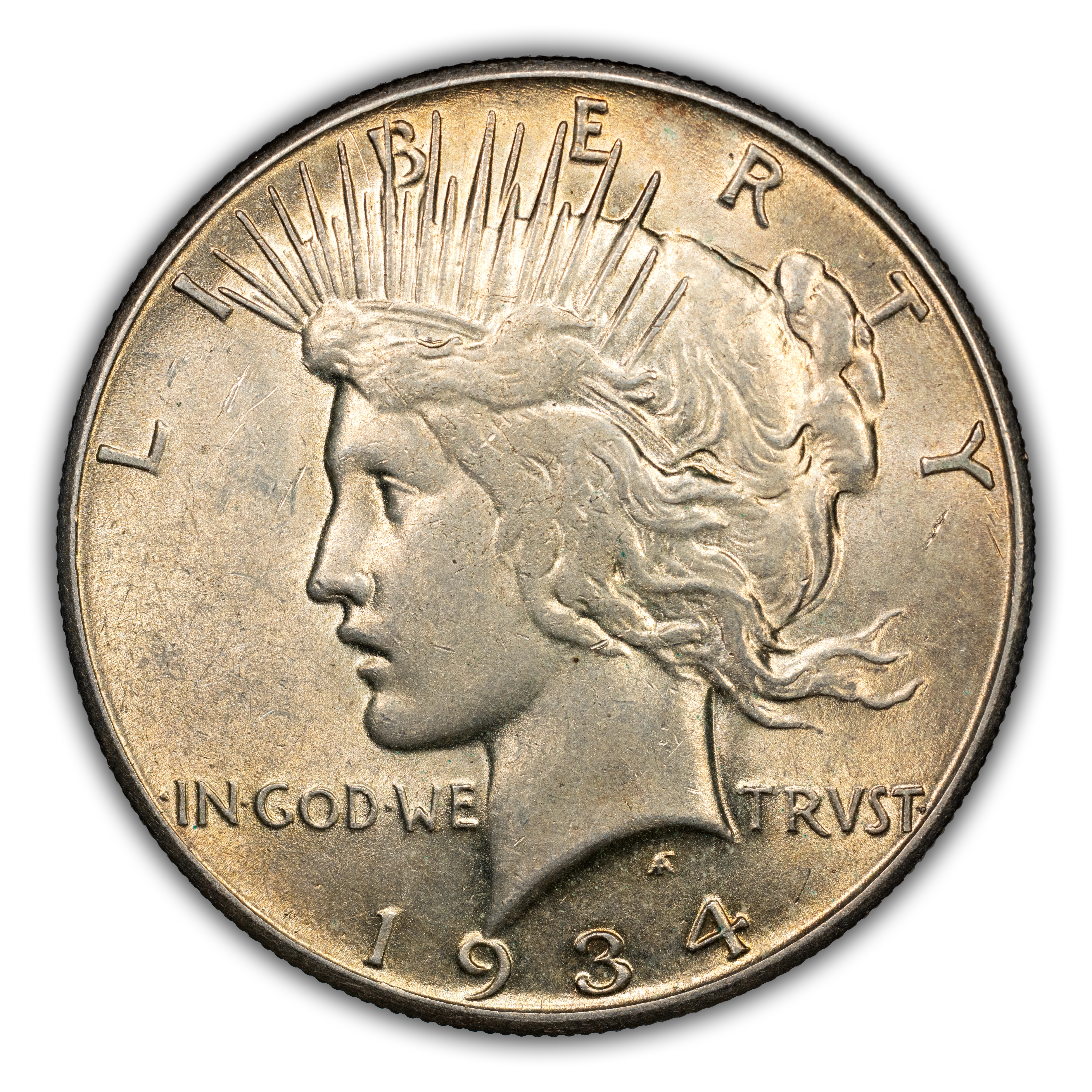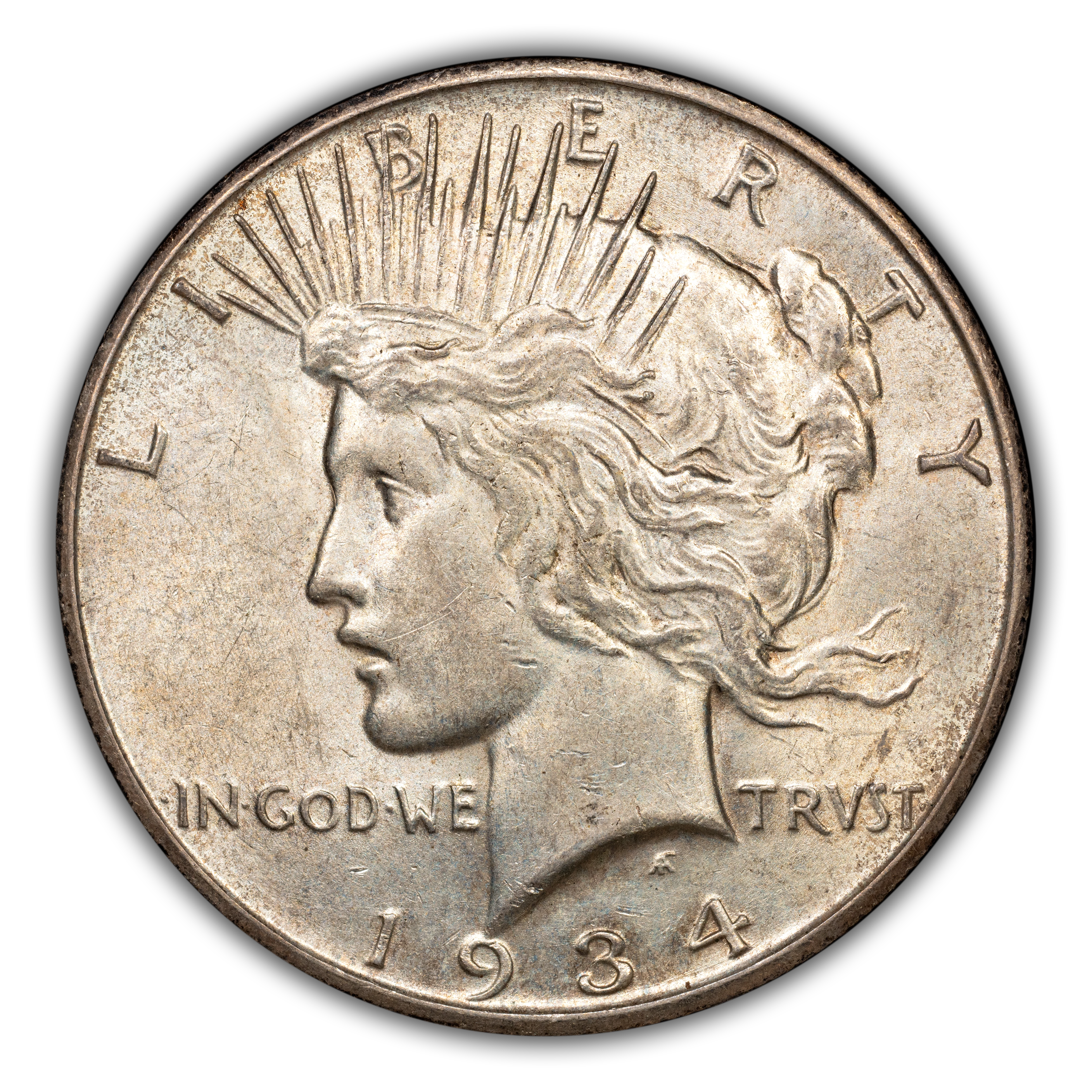 The 1934-S Peace dollar is considered to be the rarest issue in Mint State and simply the key to the entire series. This coin has many problems, including bag marks, with striking as a major issue as well. Very scarce in all uncirculated grades with value gradually increasing until MS66 which is a true rarity.