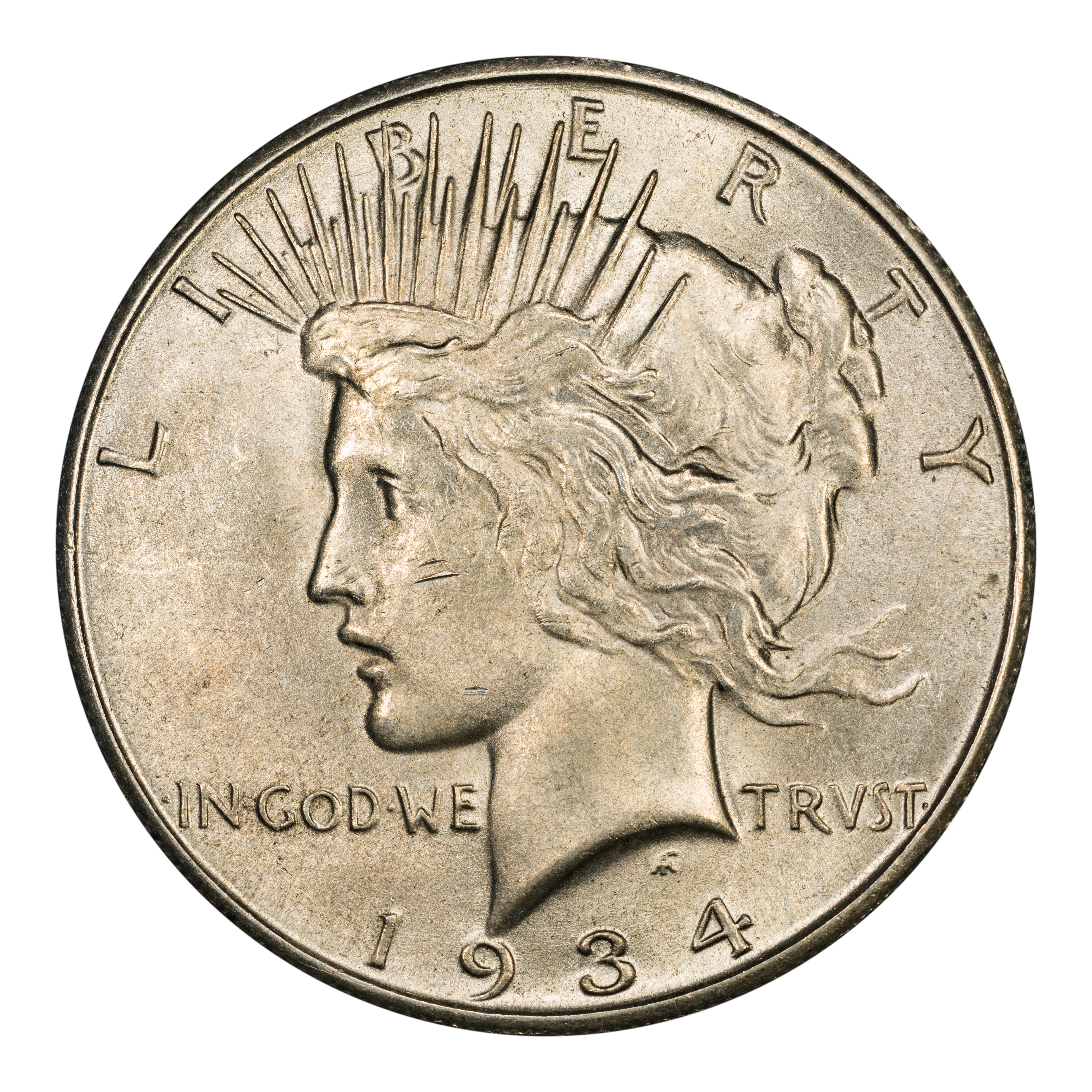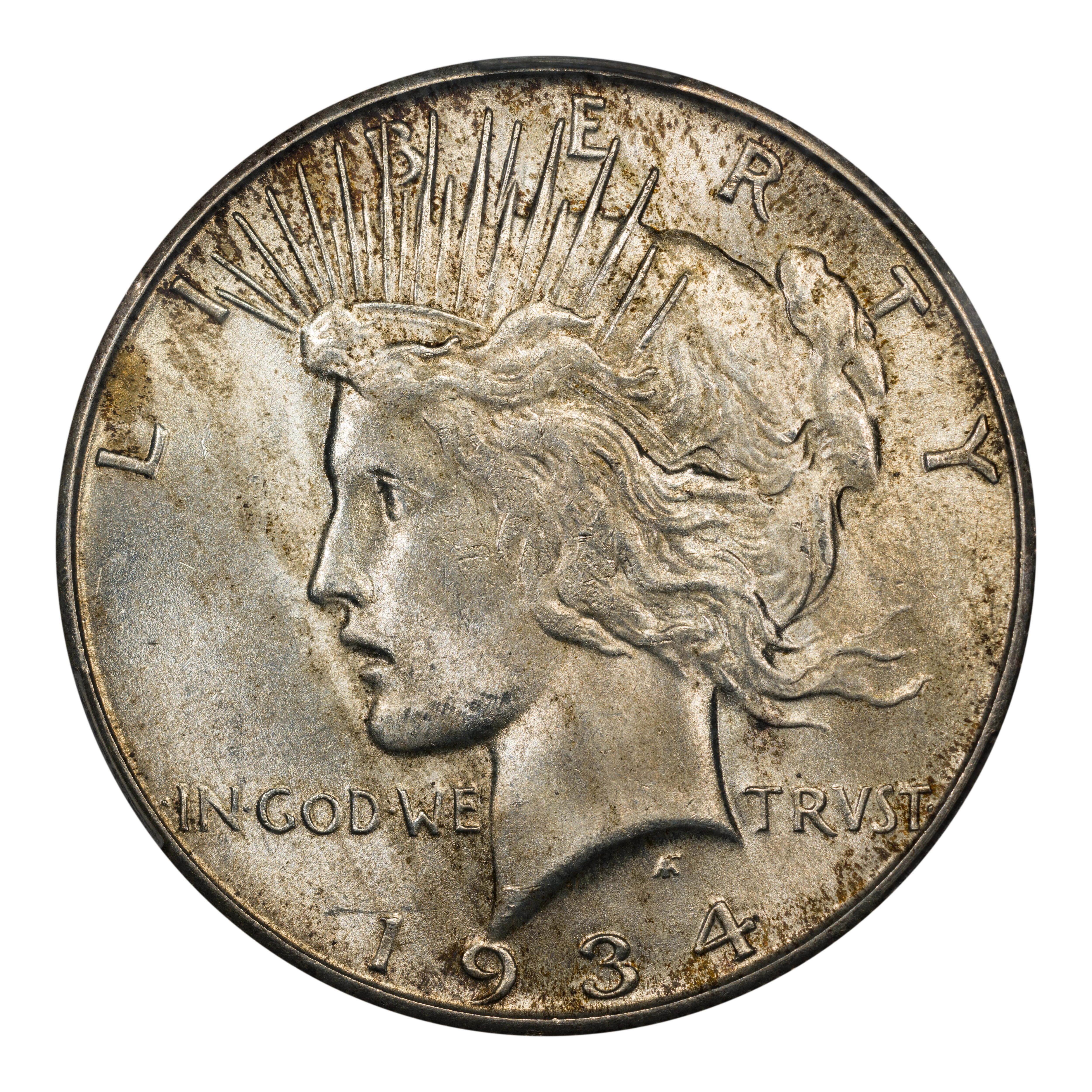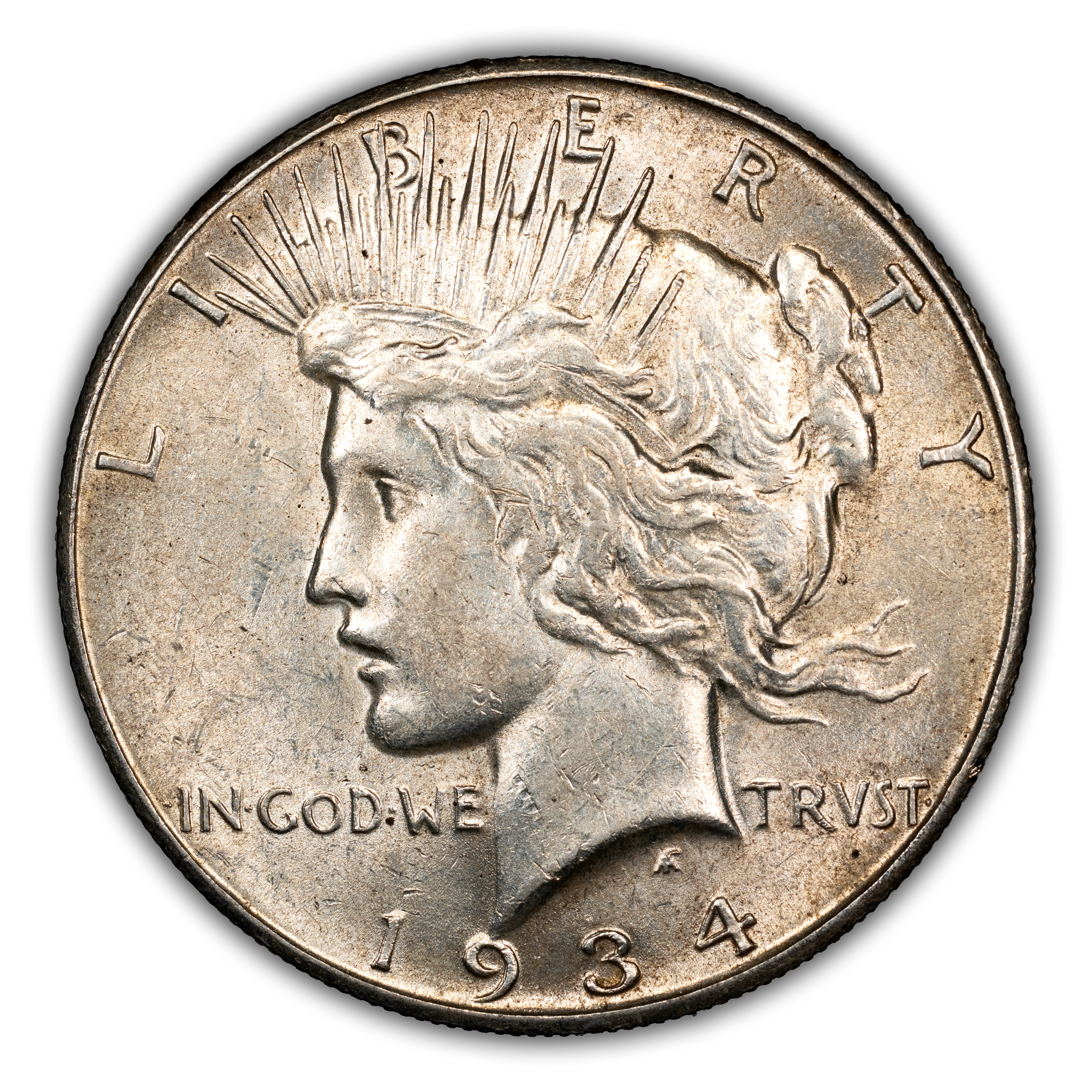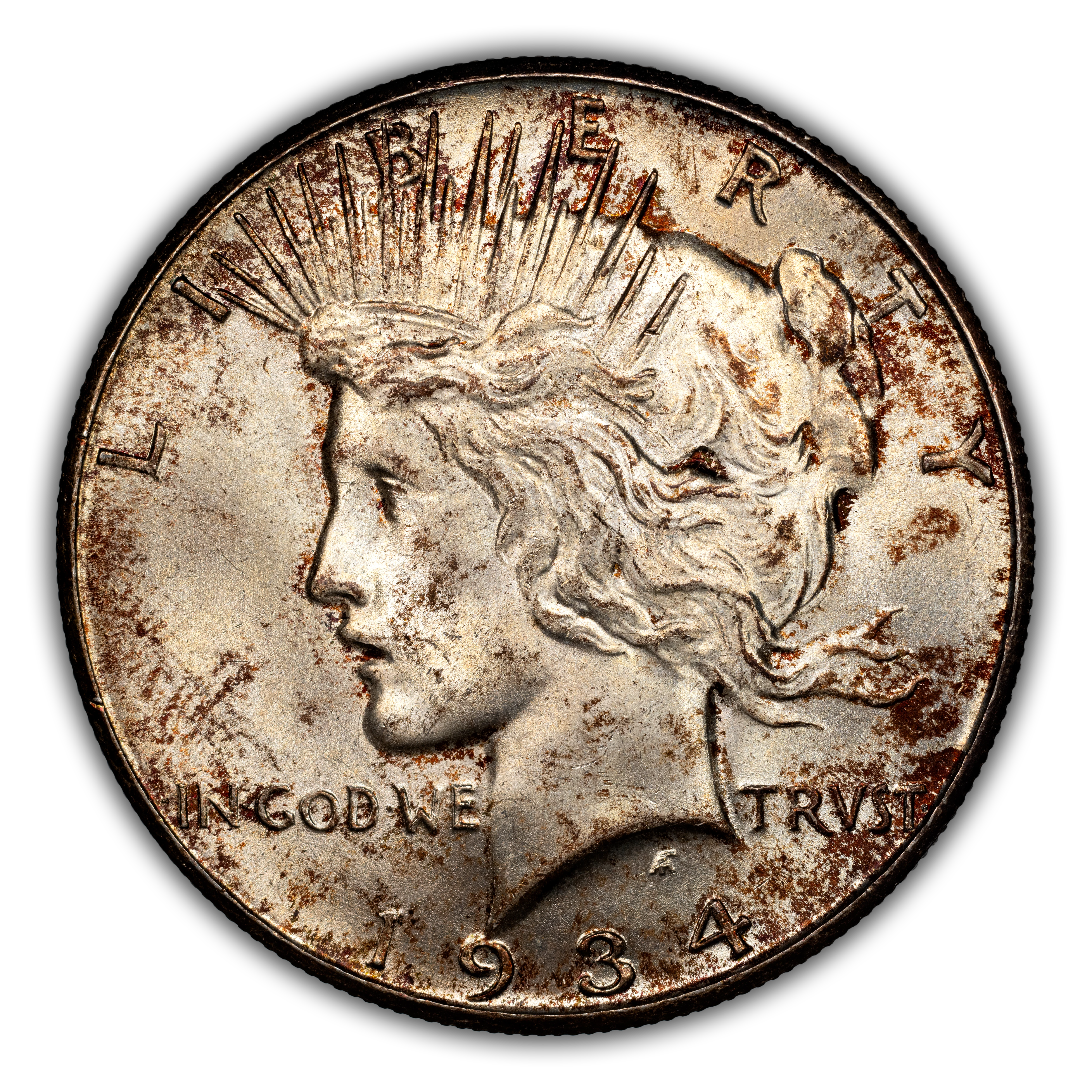 The 1934-S Peace dollar is considered to be the rarest issue in Mint State and simply the key to the entire series. This coin has many problems, including bag marks, with striking as a major issue as well. Very scarce in all uncirculated grades with value gradually increasing until MS66 which is a true rarity.