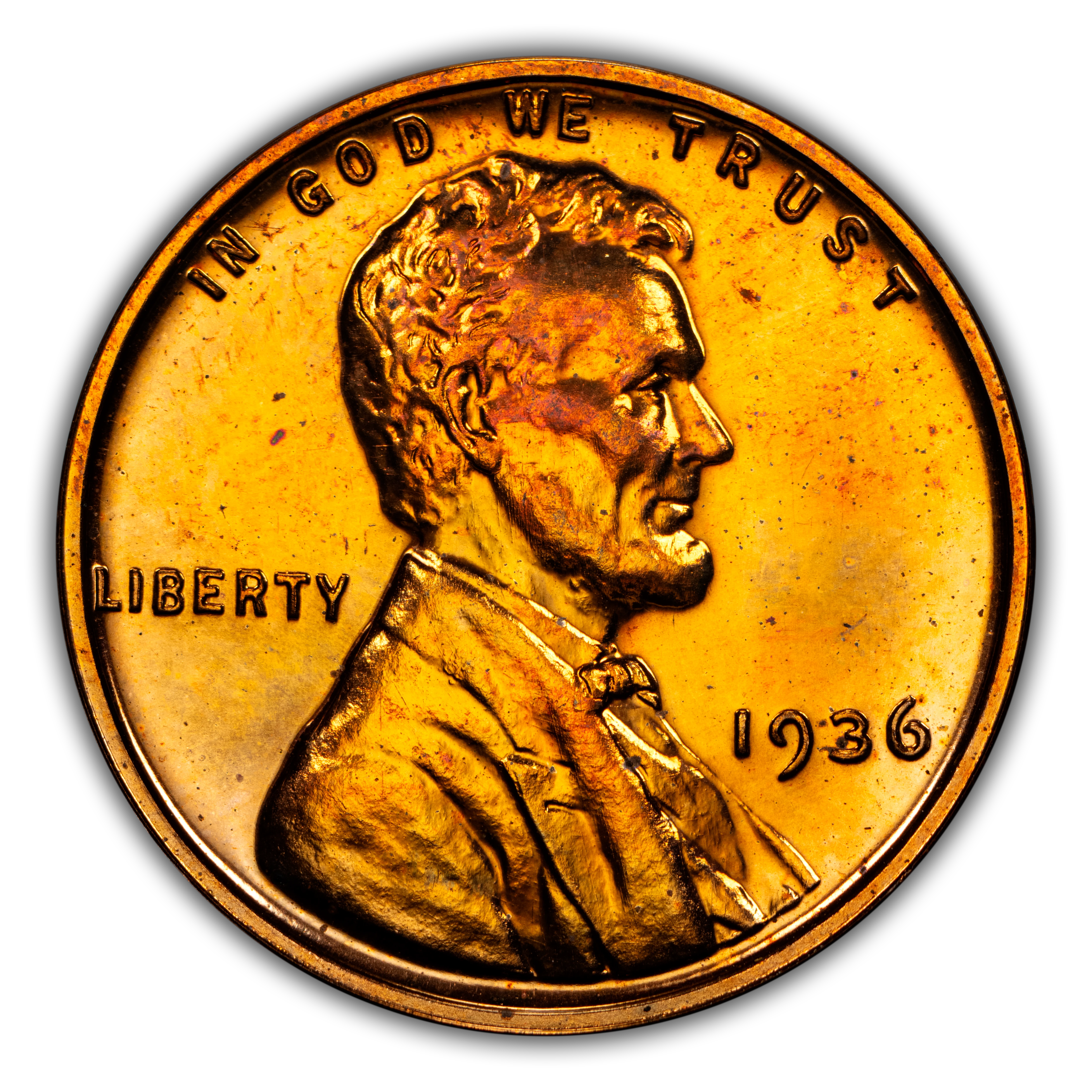 1936 1c PCGS/CAC Proof 65 RB (Type 2, Brilliant Finish)