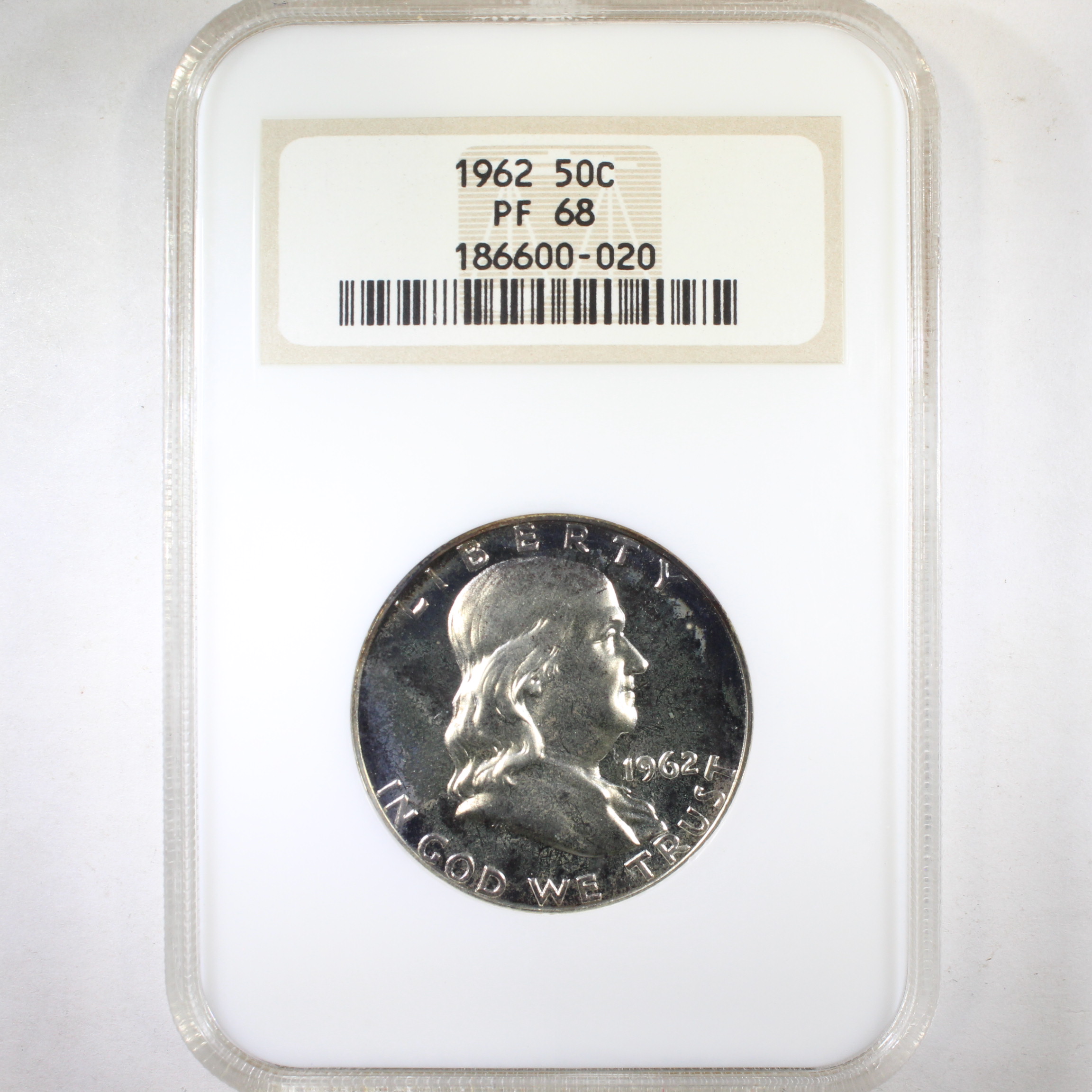 Reverse: A large eagle perched on a rock, facing left with wings elevated in a defensive posture. UNITED STATES OF AMERICA and HALF DOLLAR appear on the periphery. The motto E PLURIBUS UNUM sits atop a small olive branch left of the eagle.