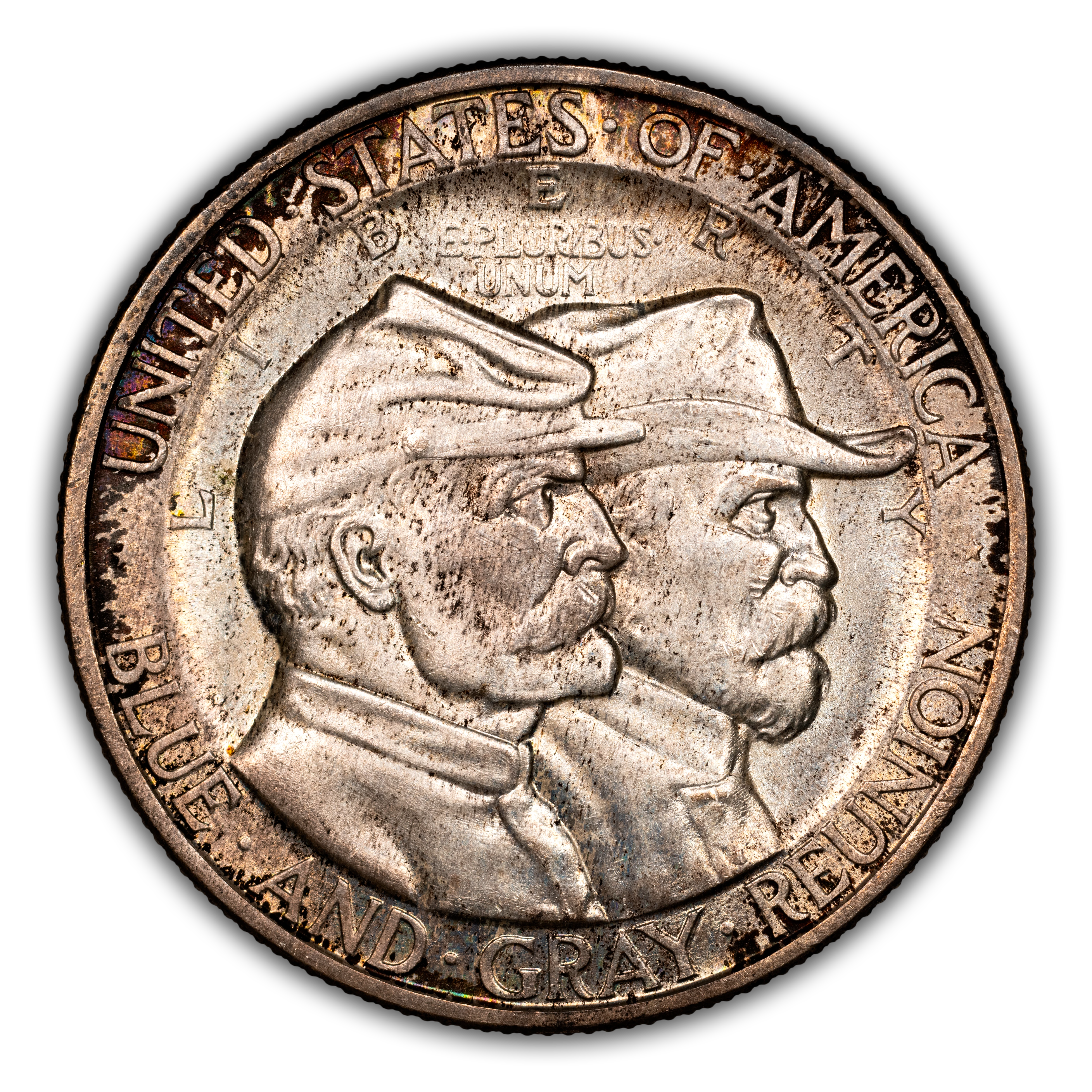 The coin was designed by Frank Vittor and in Gem is one of the scarcer commemorative halves from the 1892-1954 era. Many Gettysburg half dollars are in nice condition, many offering white, lustrous surfaces. Buyers should pay closer attention to the flat surface on the Union shield on the reverse, where marks are often found. While MS65 and MS66 specimens are on the scarce side, this coin becomes especially rare in the grades of MS67 or above.
