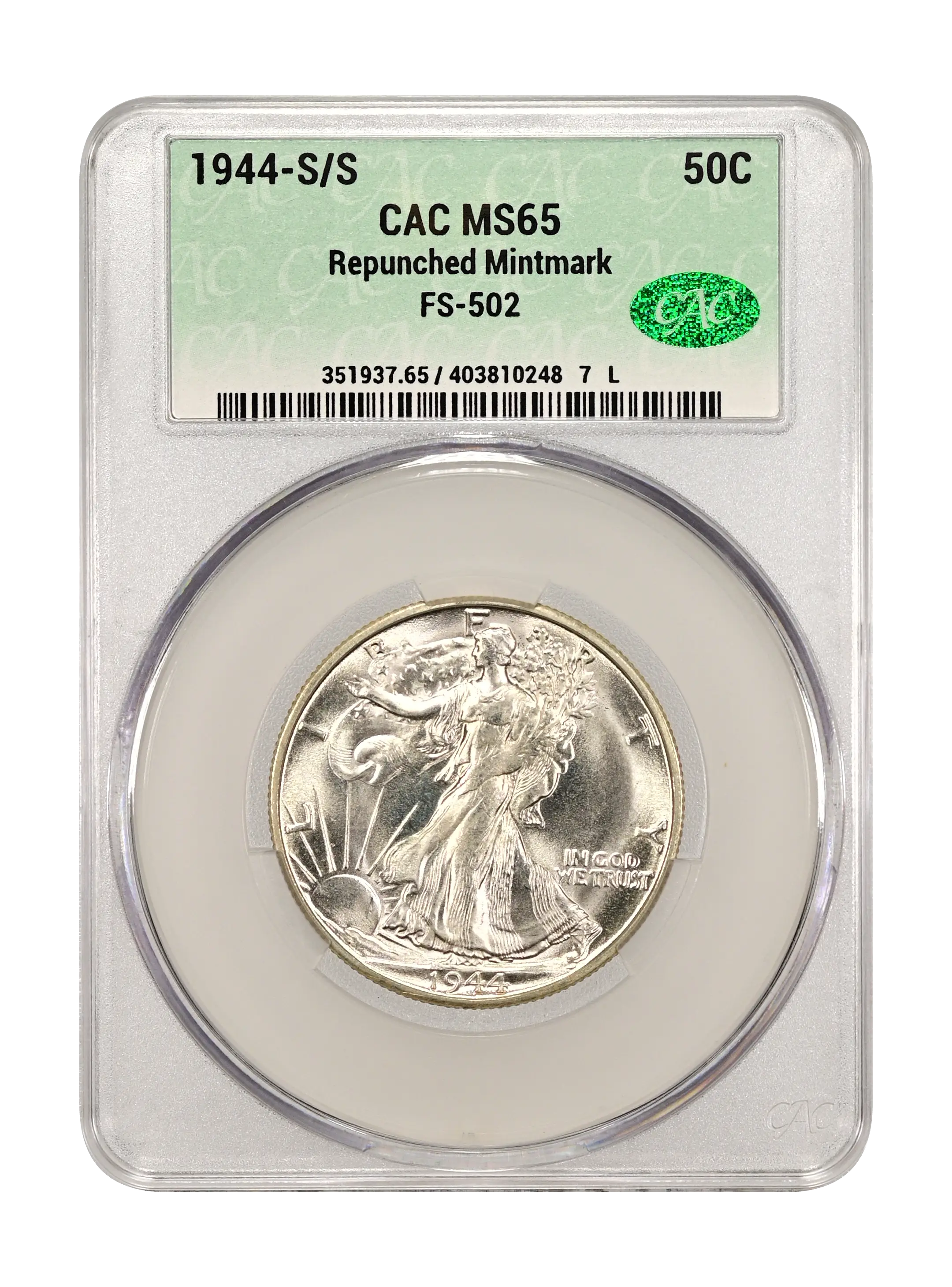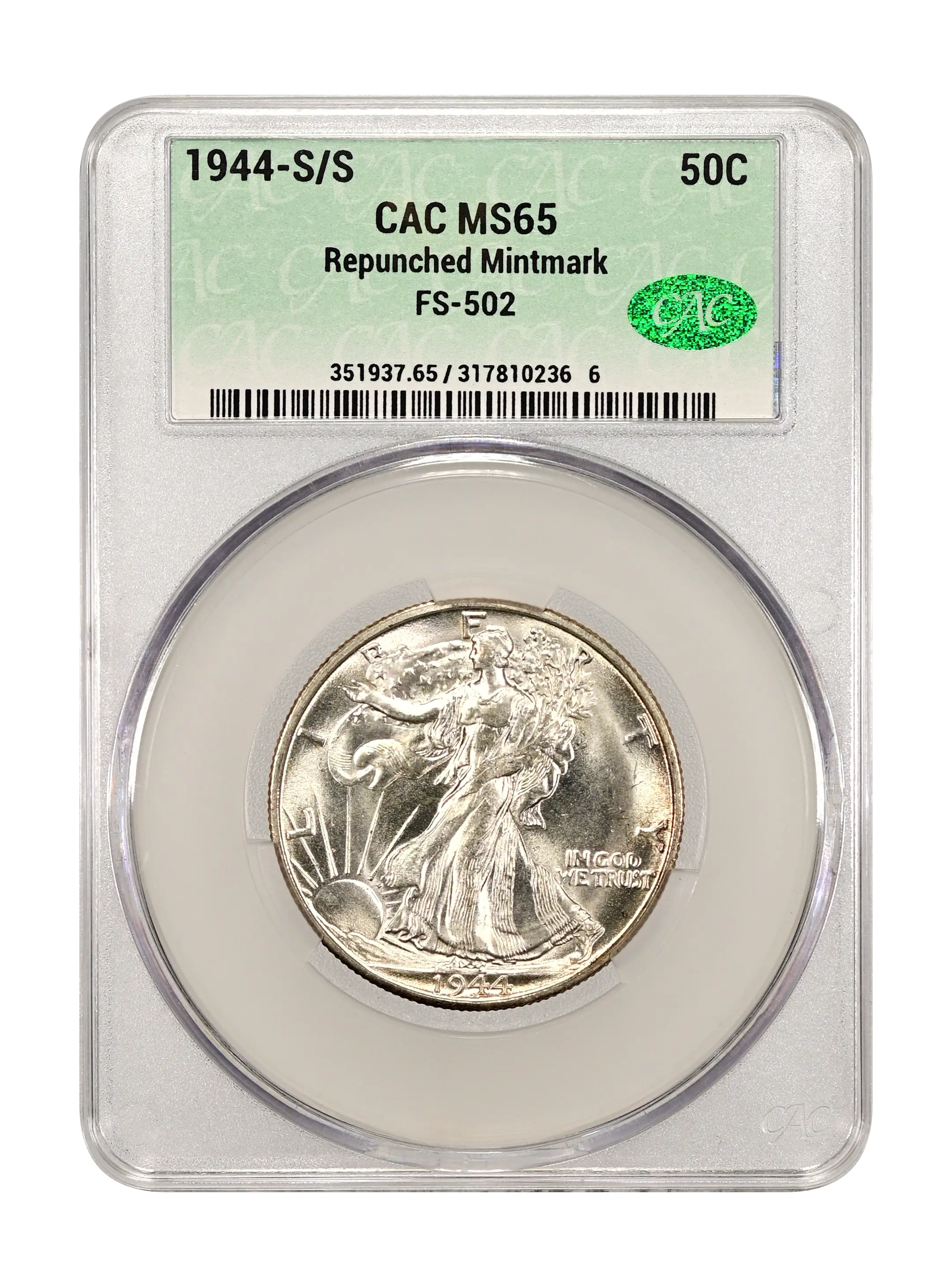 1944-S/S Repunched Mintmark 50c FS-502 CAC MS65