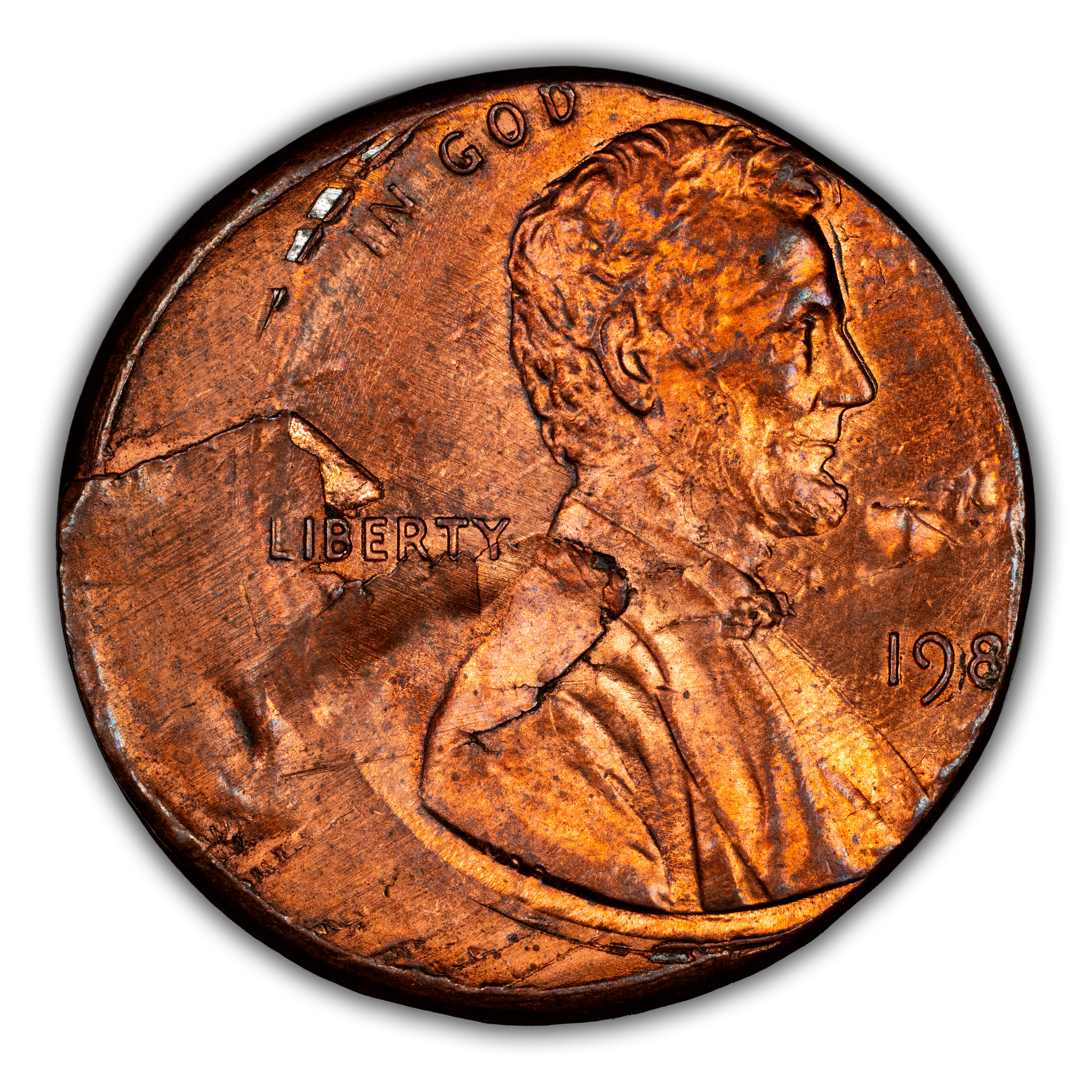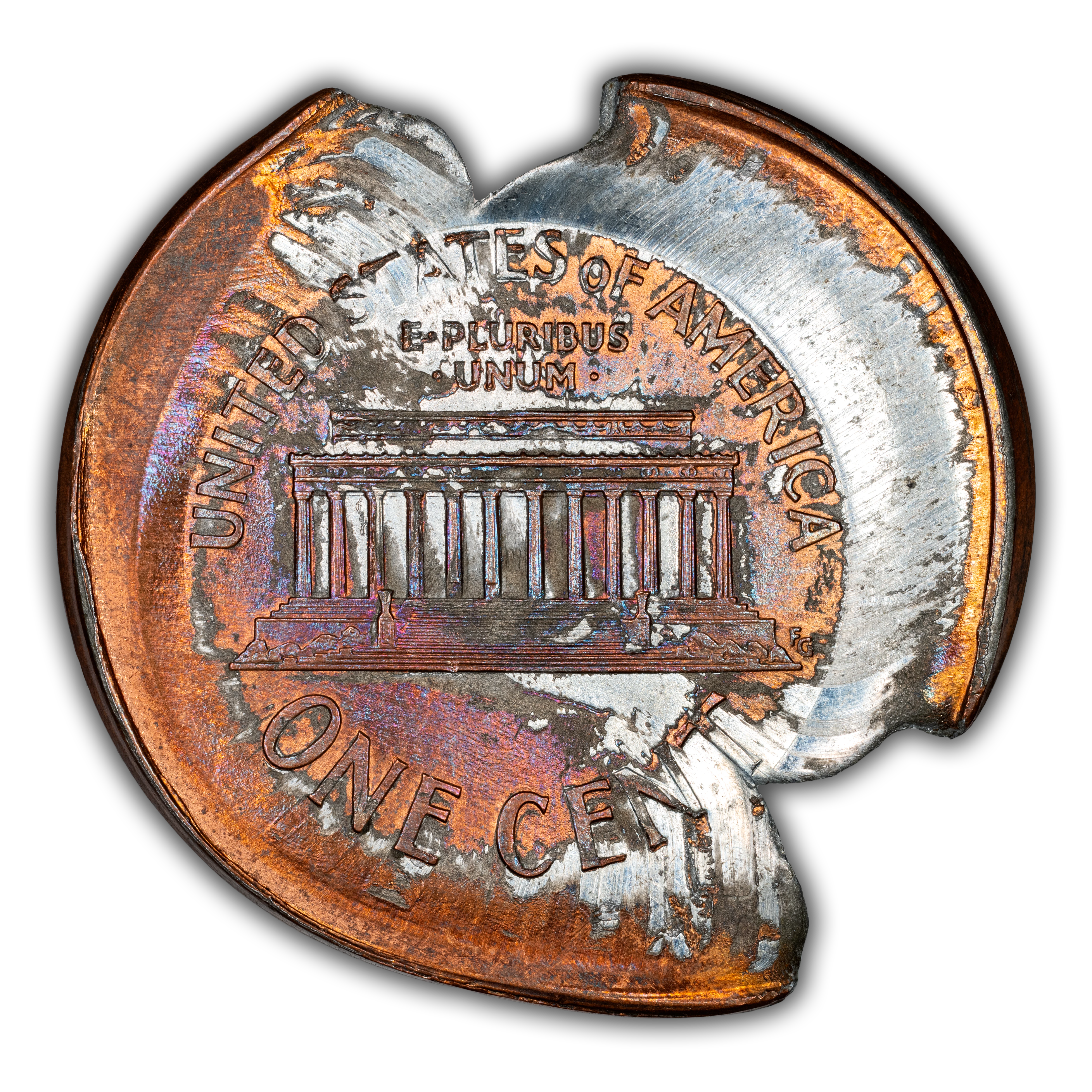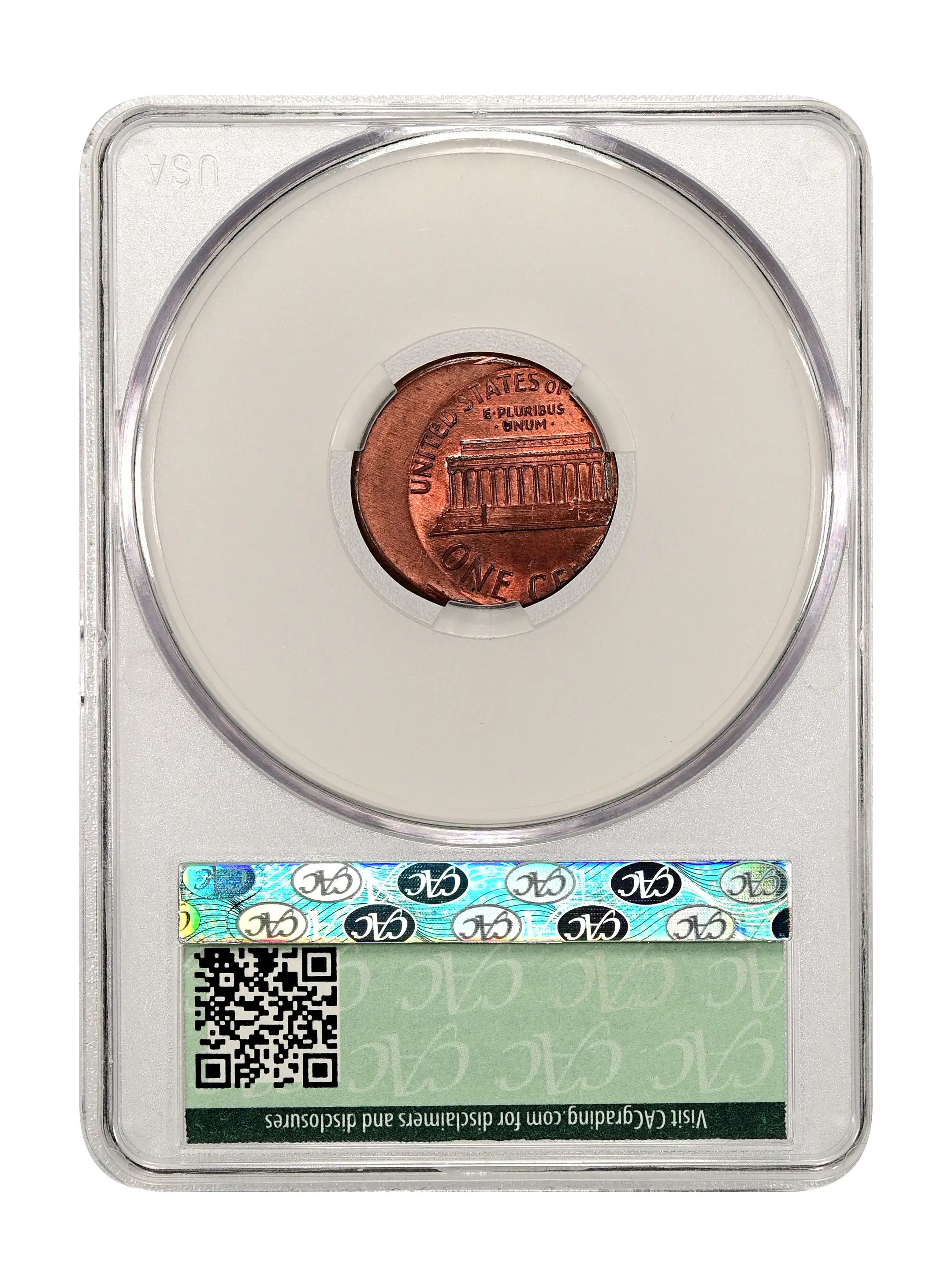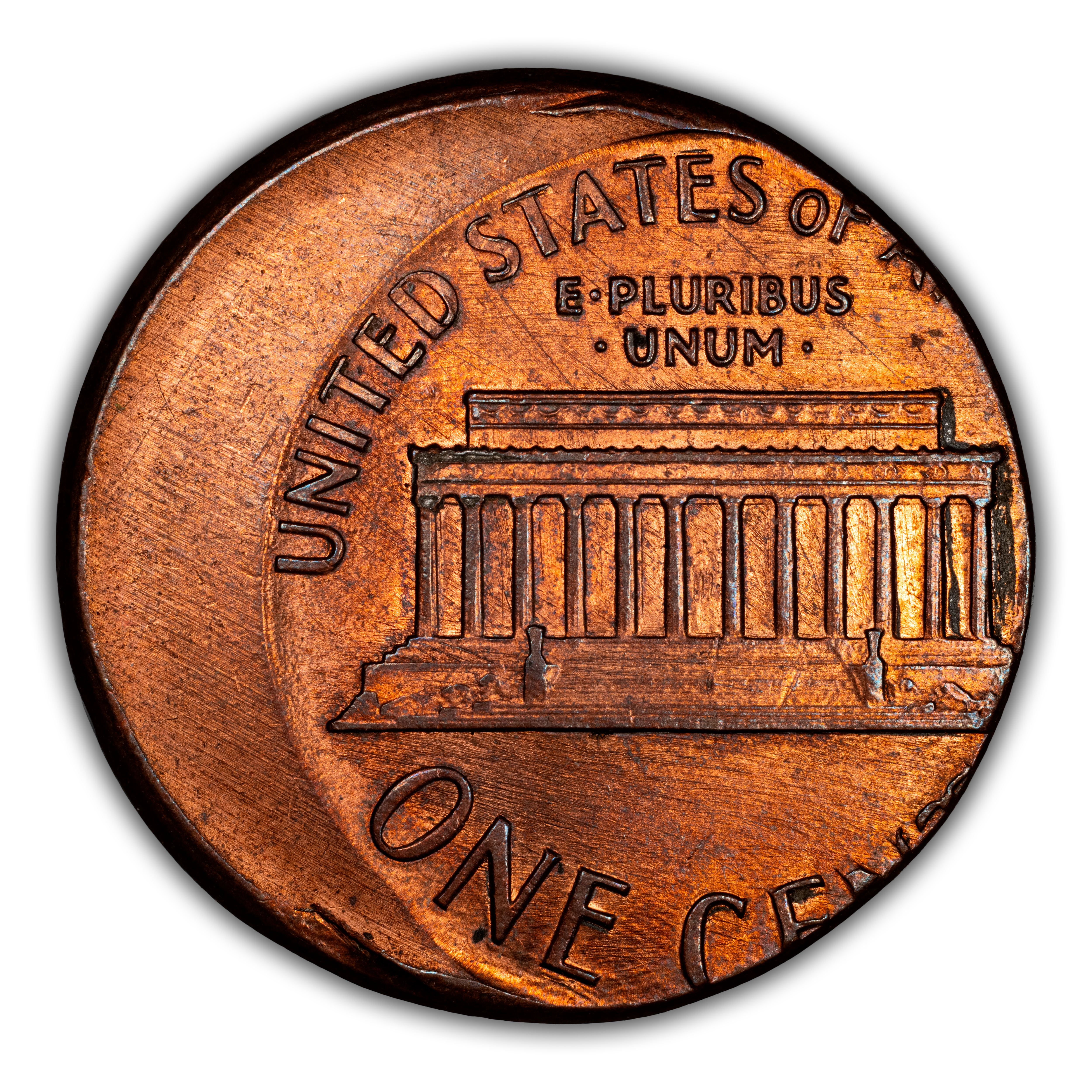 Reverse: Lincoln memorial building centered with words ONE CENT, UNITED STATES OF AMERICA on top and bottom periphery. E PLURIBUS UNUM centered above the top of the memorial.