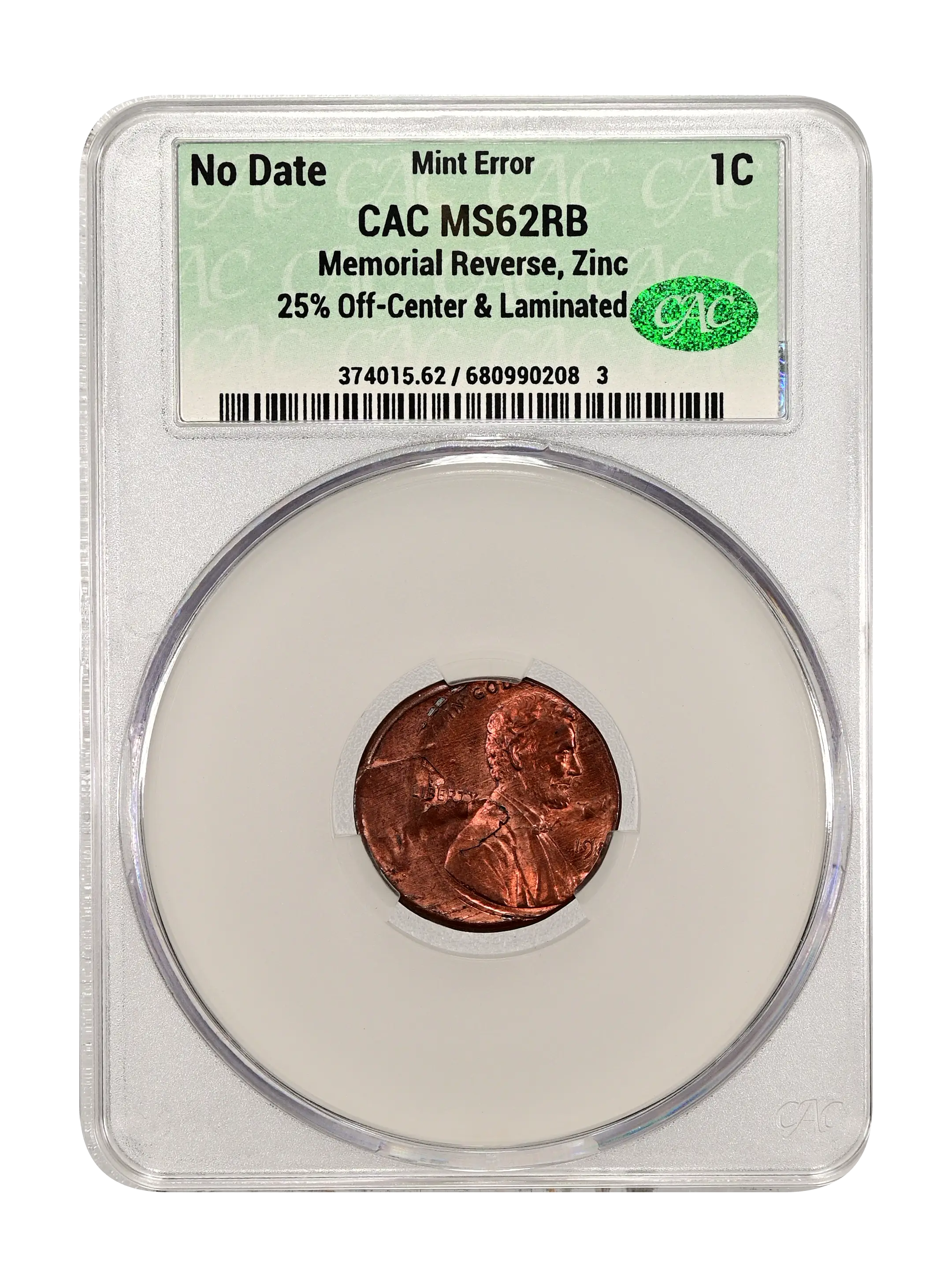 Lincoln Cent 1982-2008 Memorial Reverse, Zinc 1c RB [No Date] CAC MS62RB