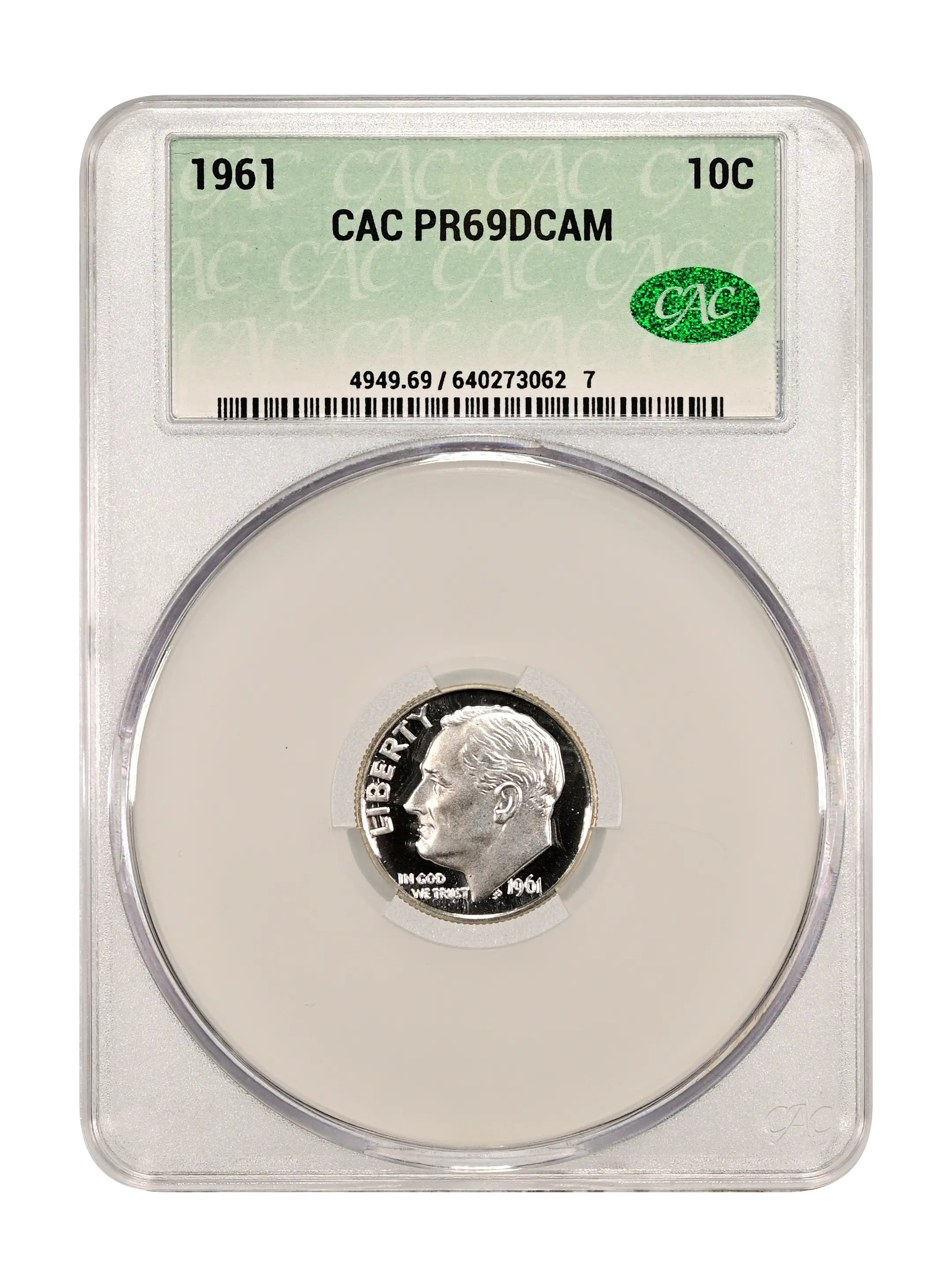 1961 10C PR69 Deep Cameo PCGS. PCGS Population: 68 in 69 Deep Cameo, 4 finer (11/25). ...