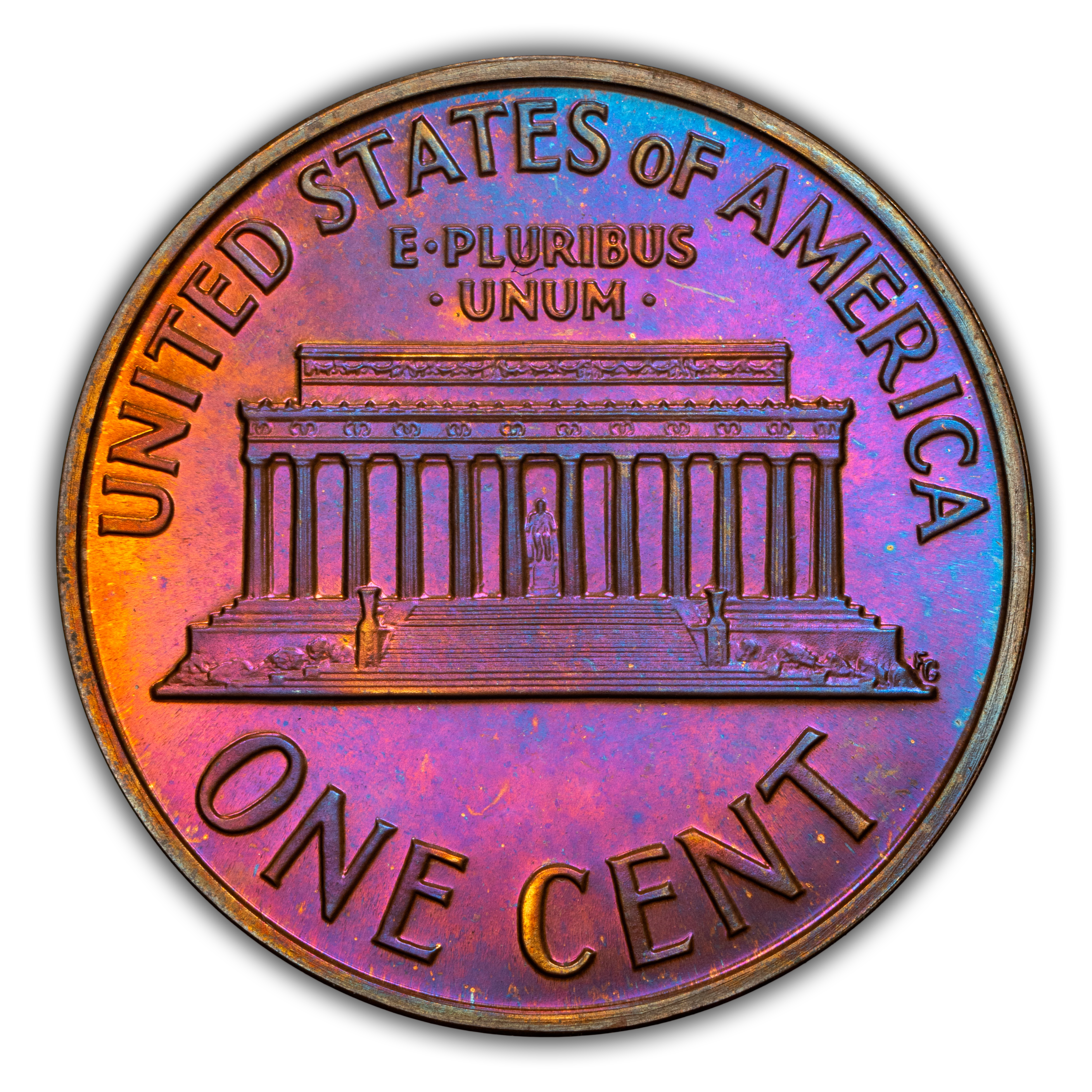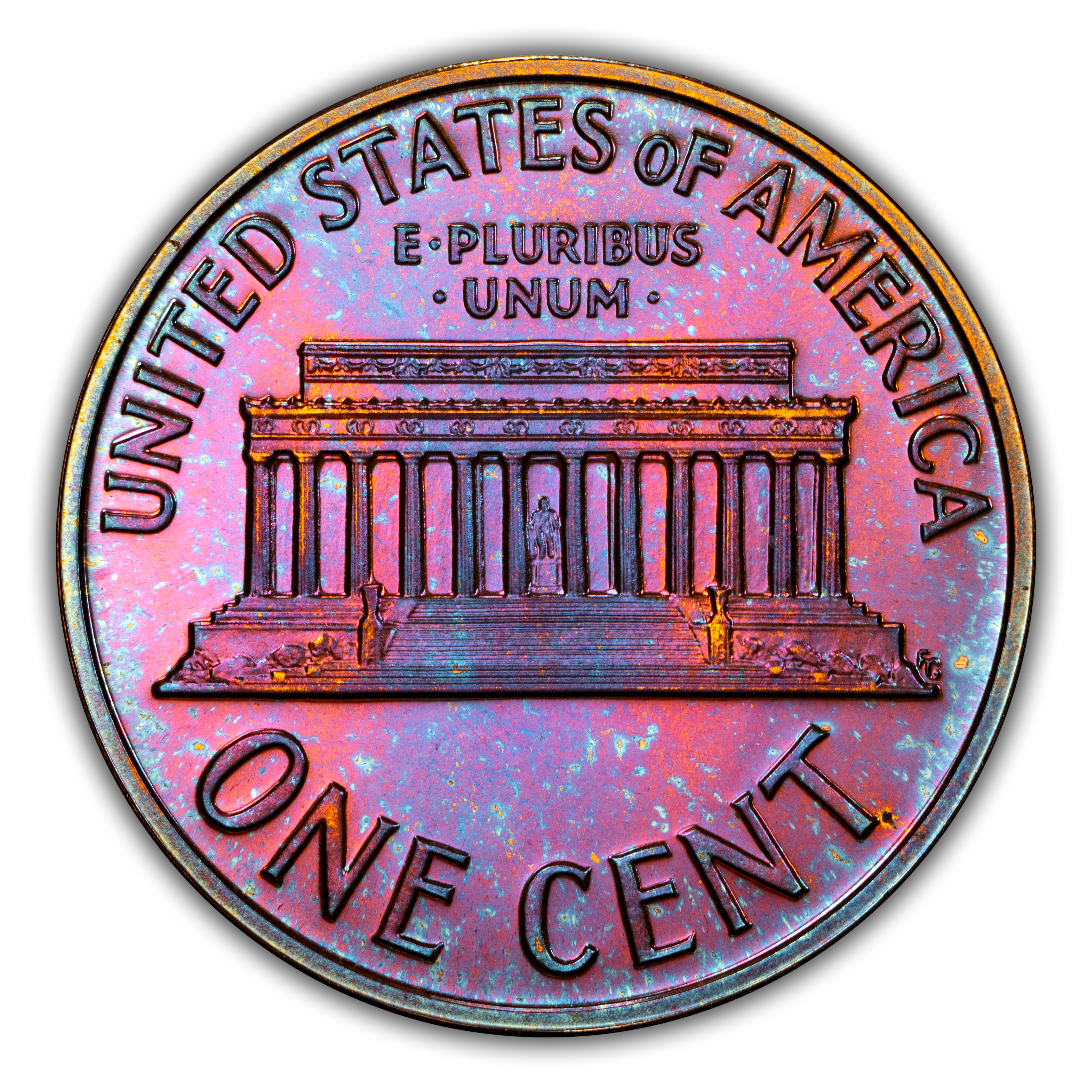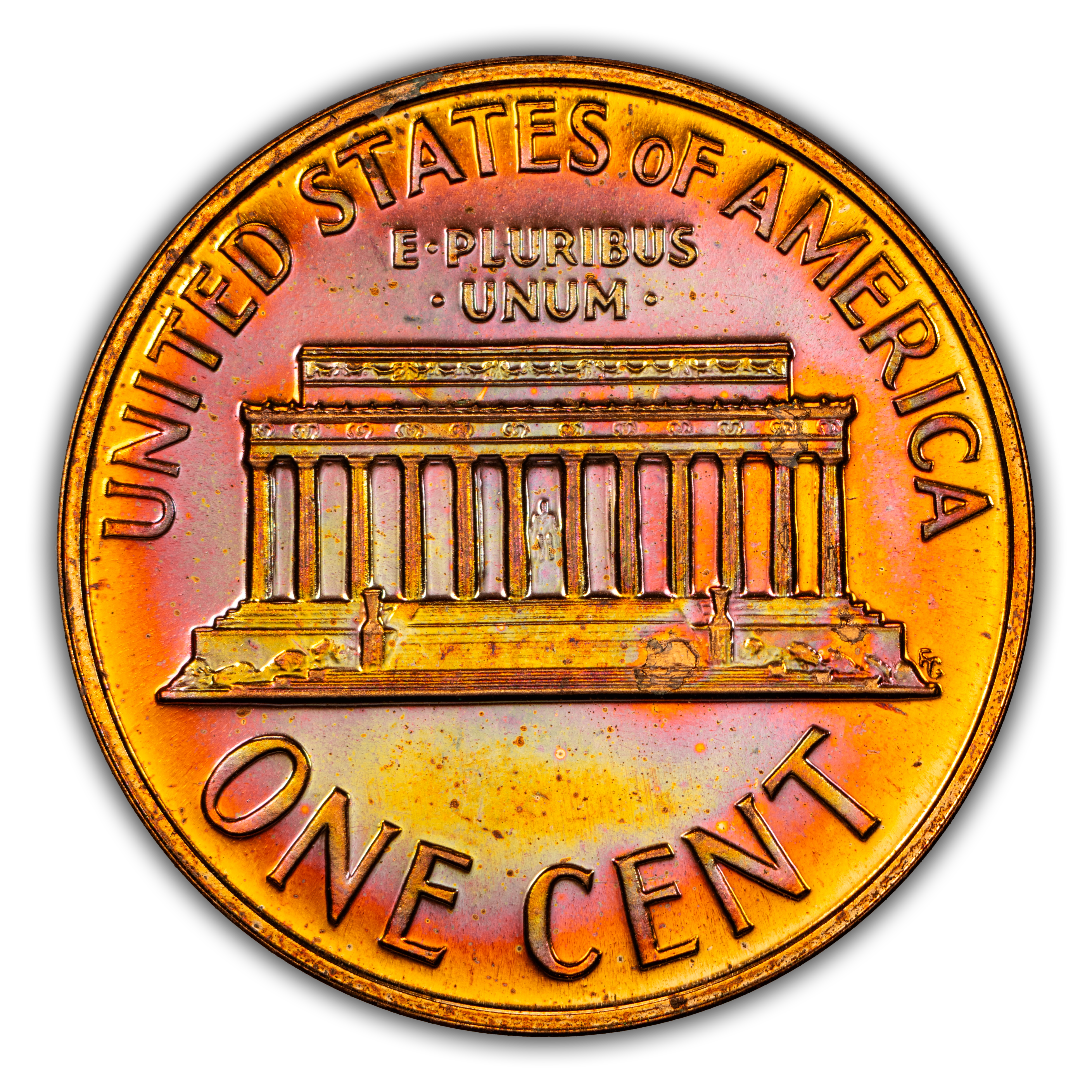 Reverse: Lincoln memorial building centered with woBNs ONE CENT, UNITED STATES OF AMERICA on top and bottom periphery. E PLURIBUS UNUM centered above the top of the memorial.