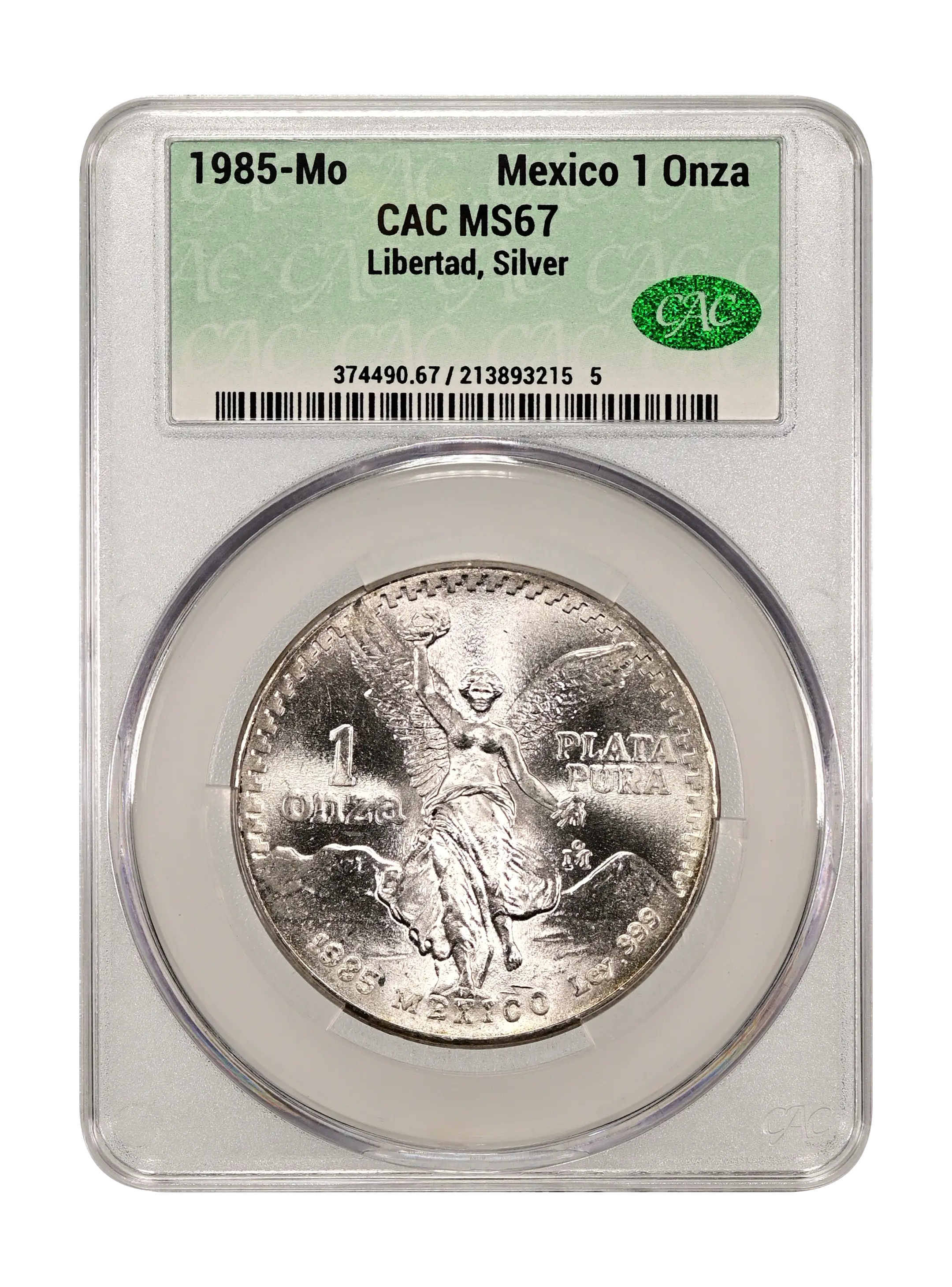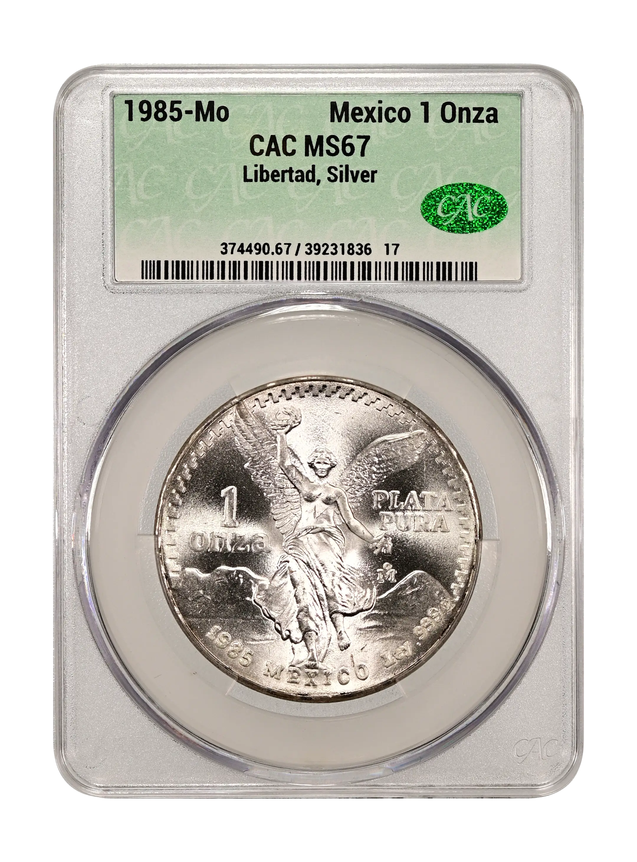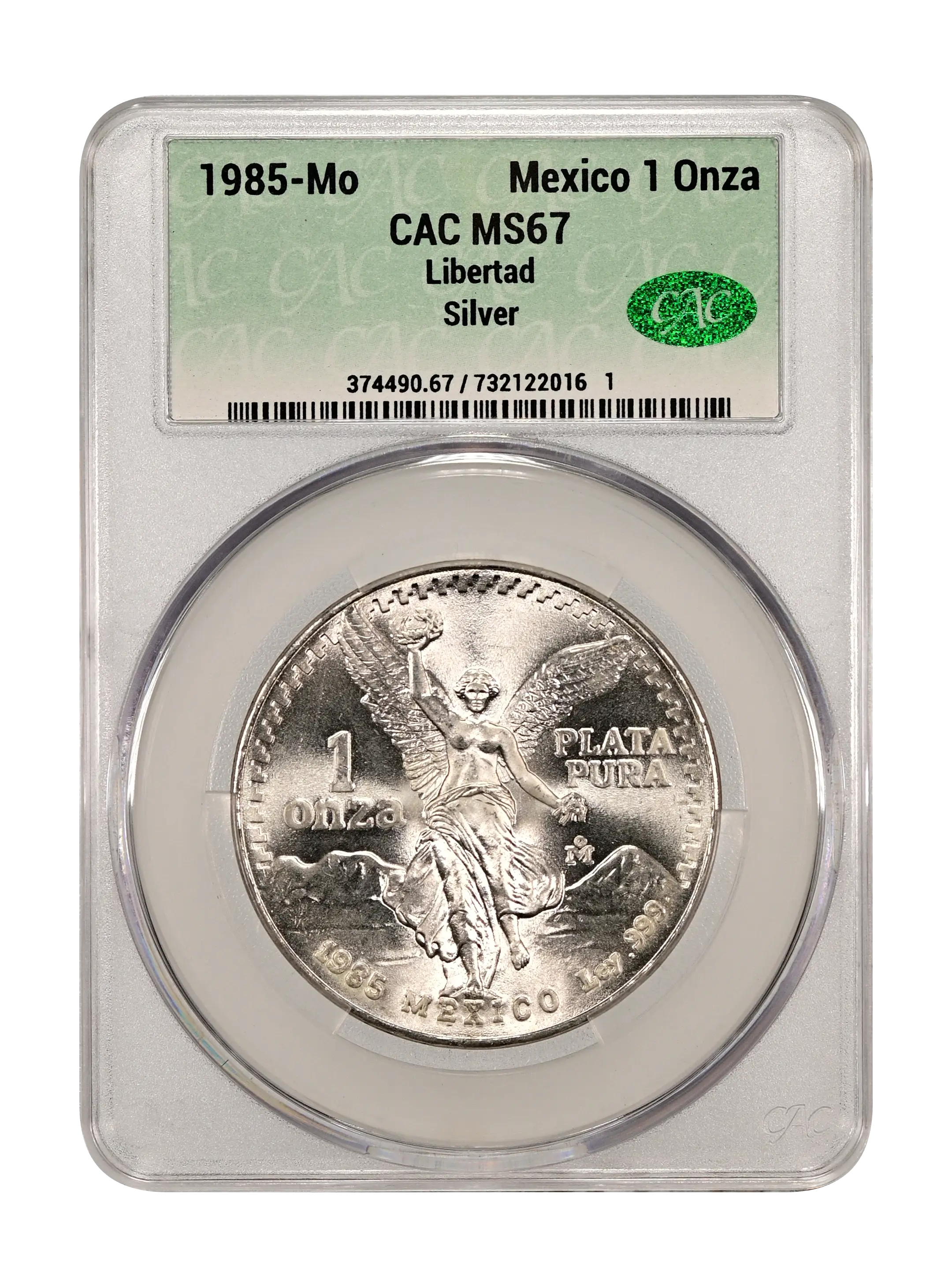 1985-Mo Libertad Mexico 1 Onza Silver CAC MS67