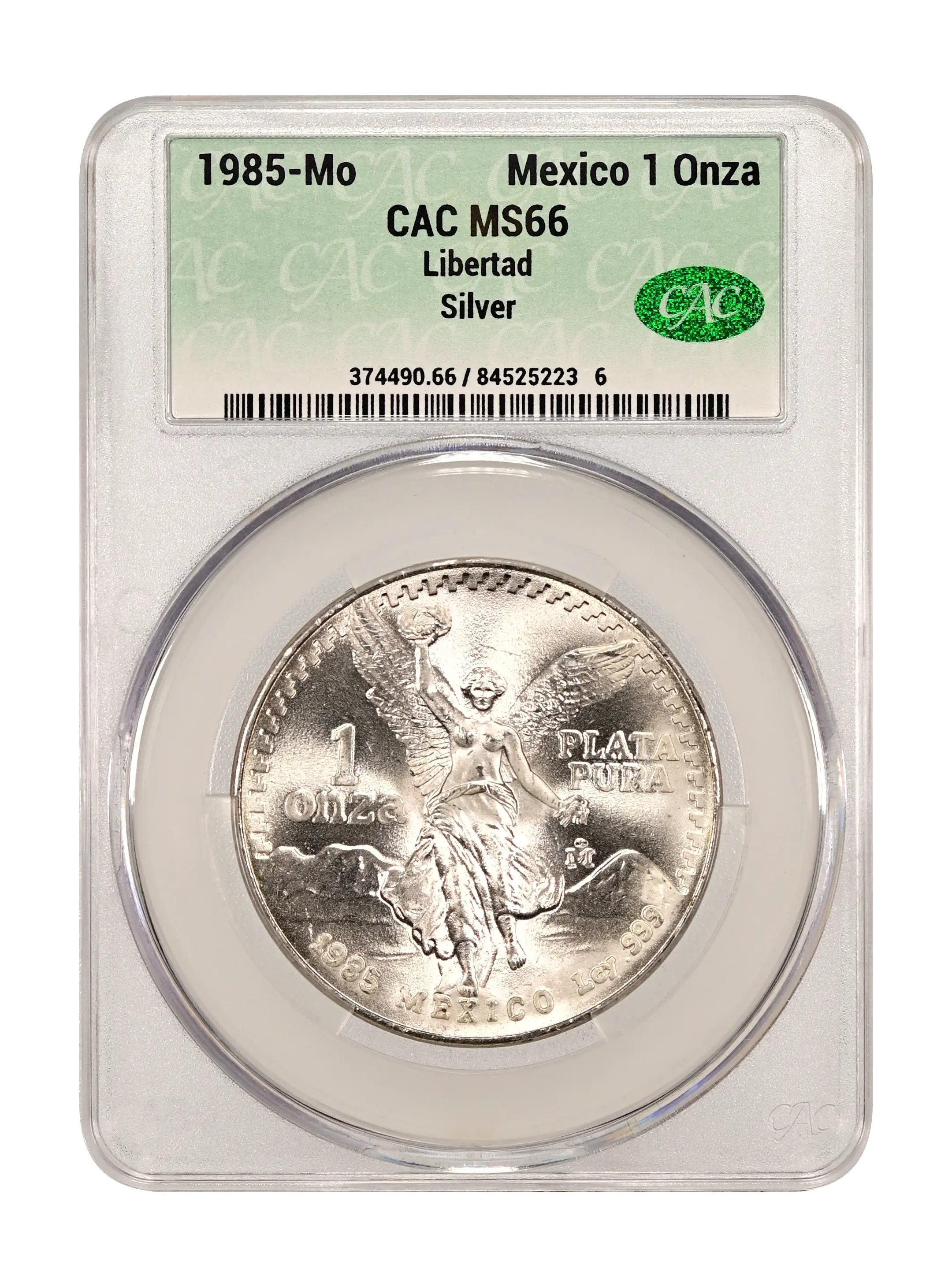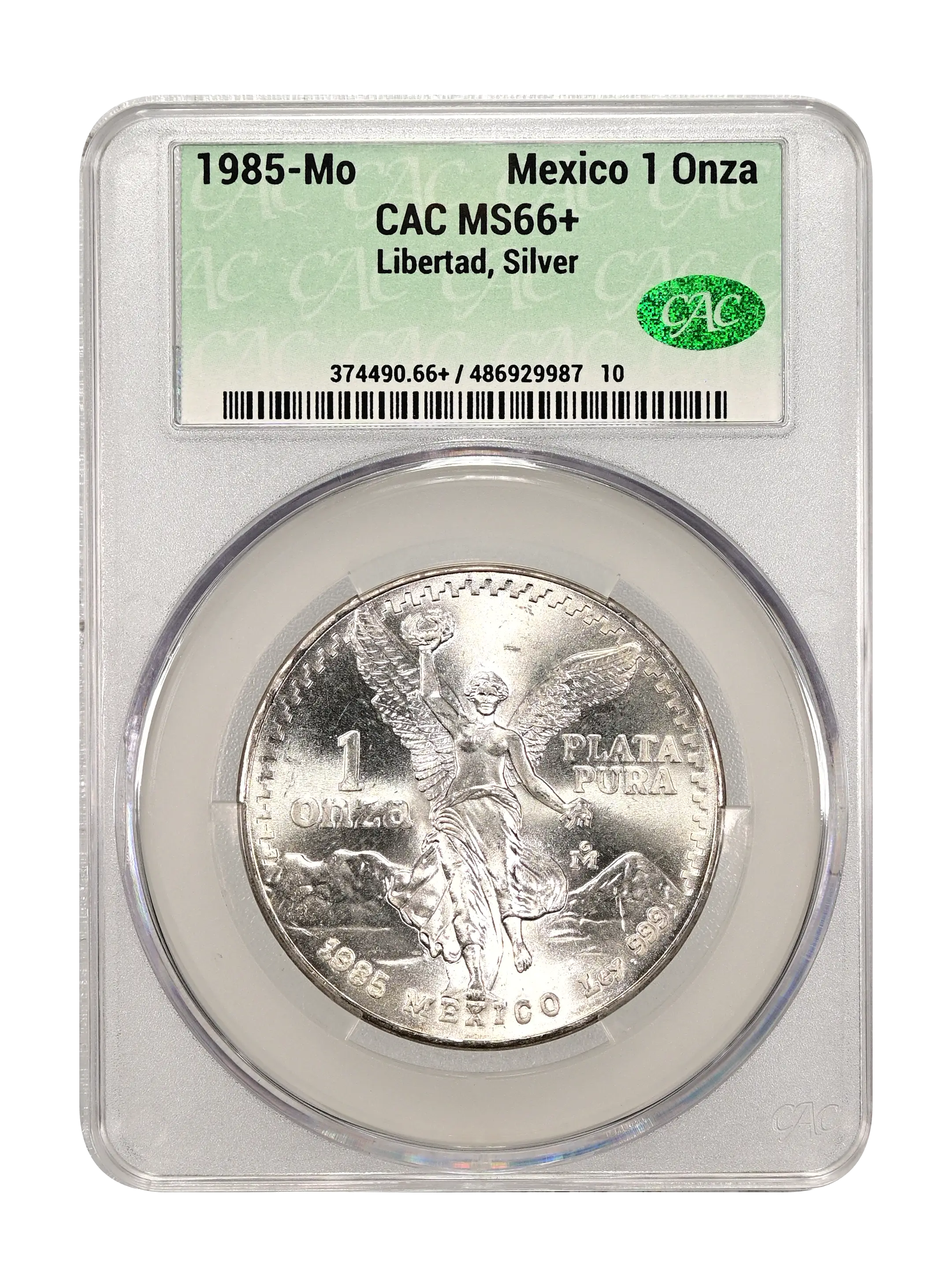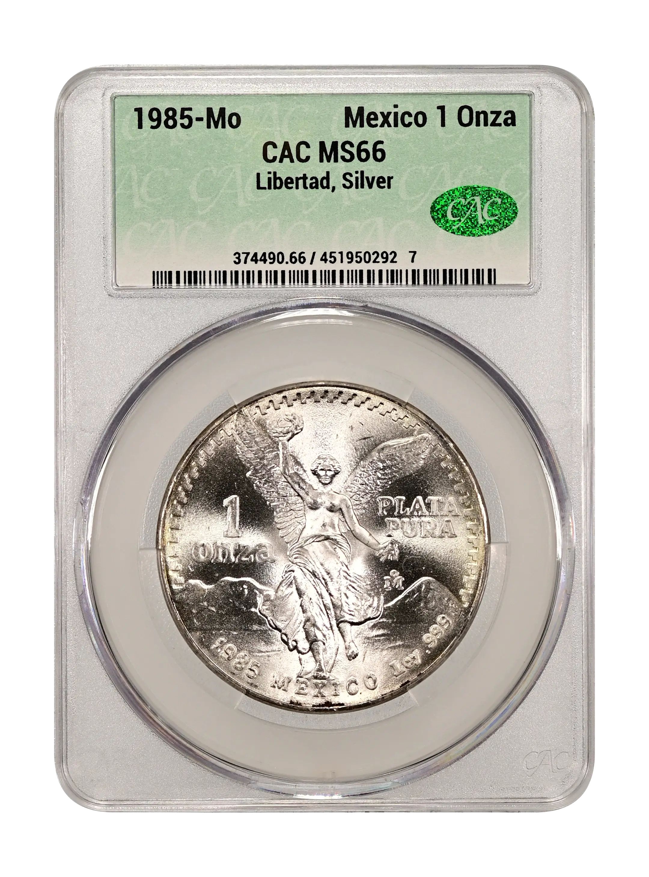 1985-Mo Libertad Mexico 1 Onza Silver CAC MS66+