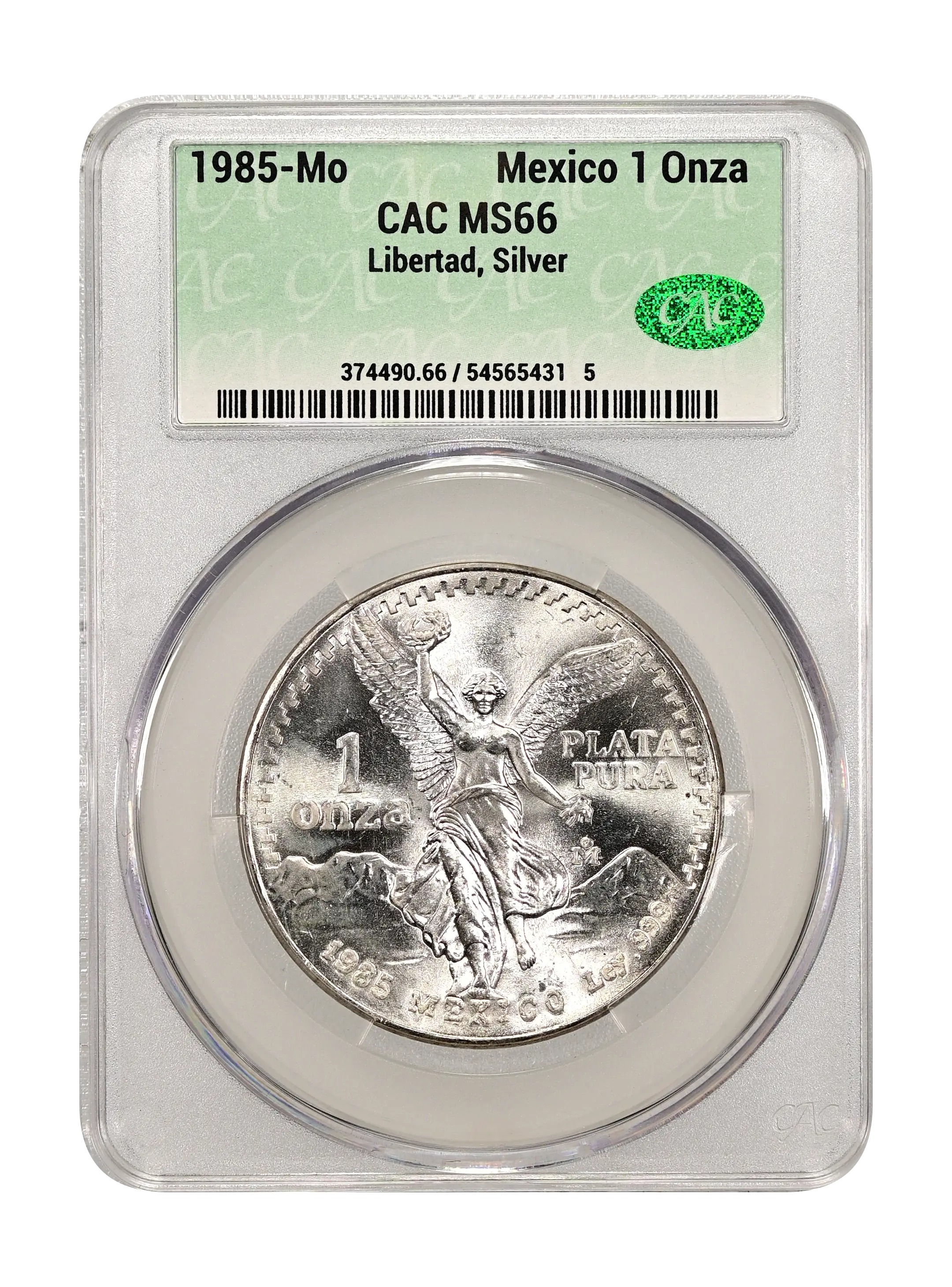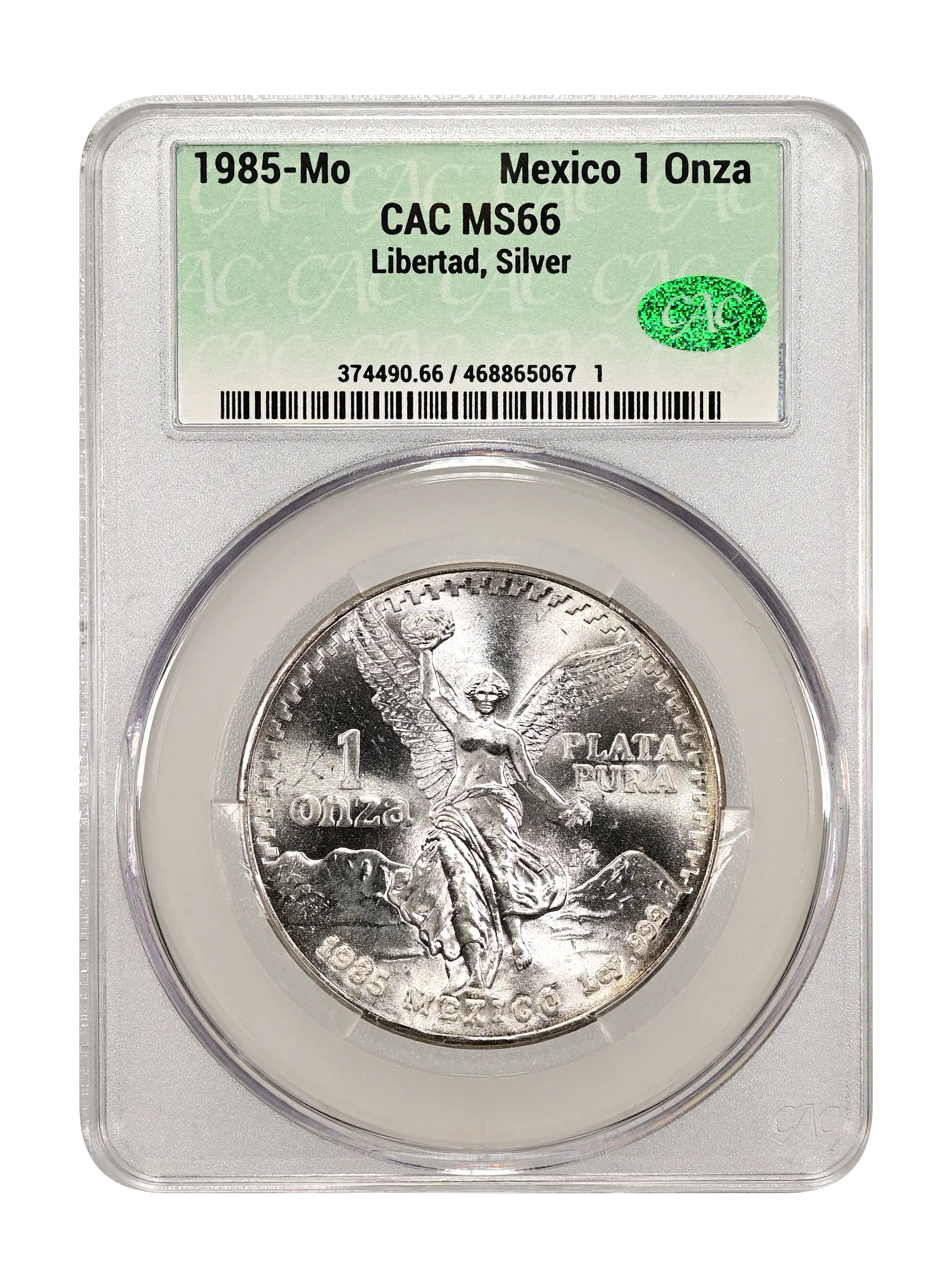 1985-Mo Libertad Mexico 1 Onza Silver CAC MS66