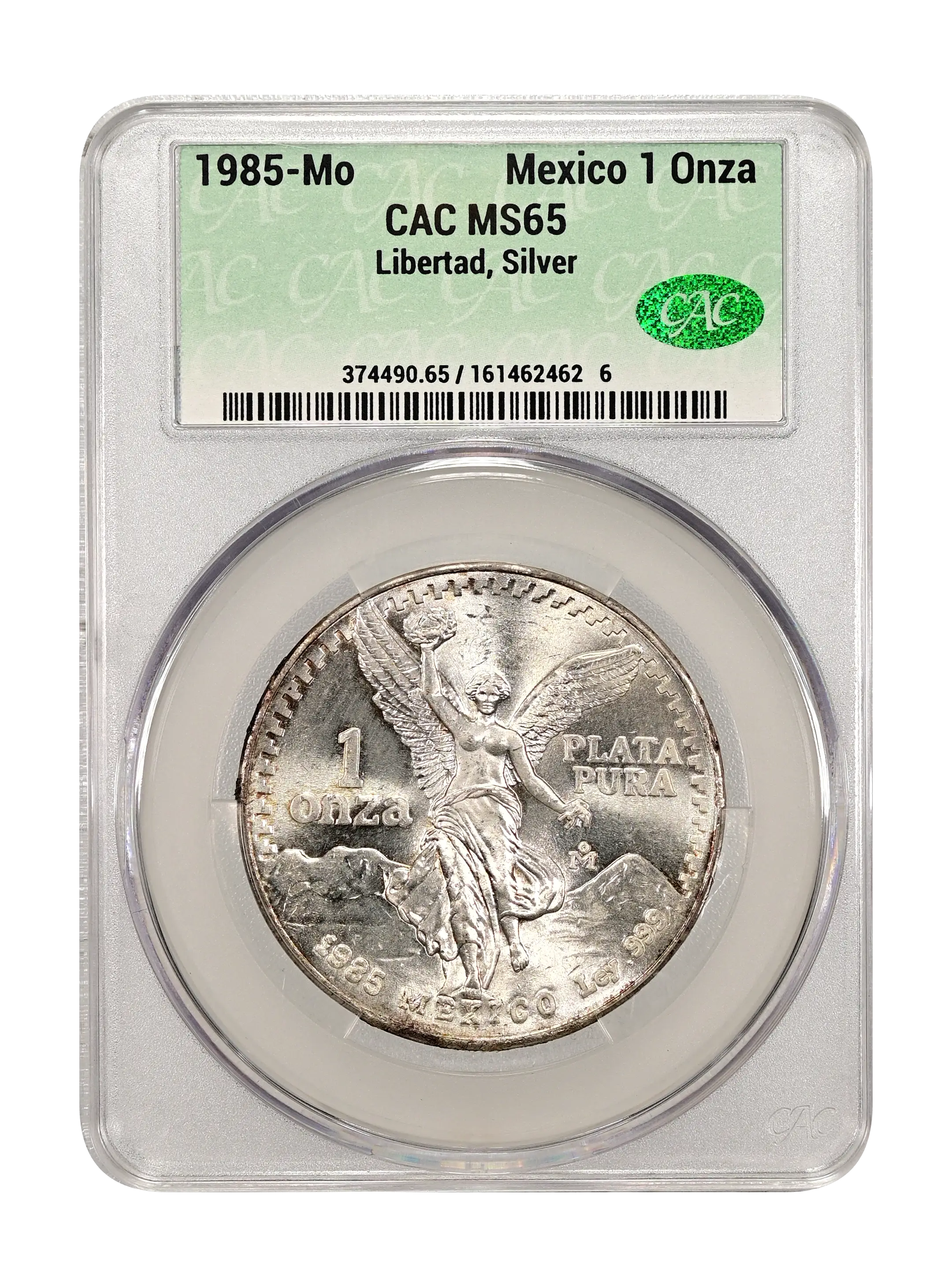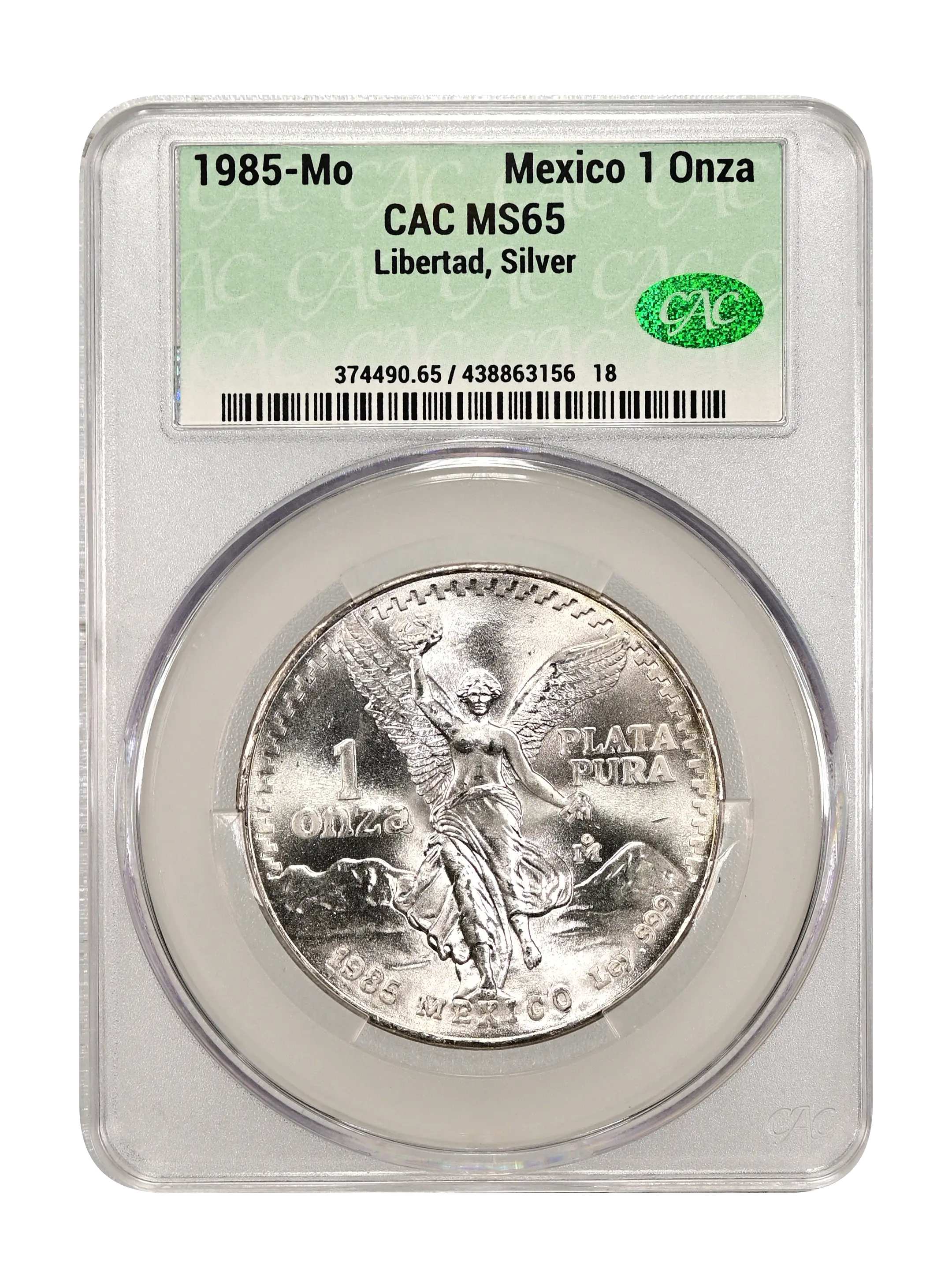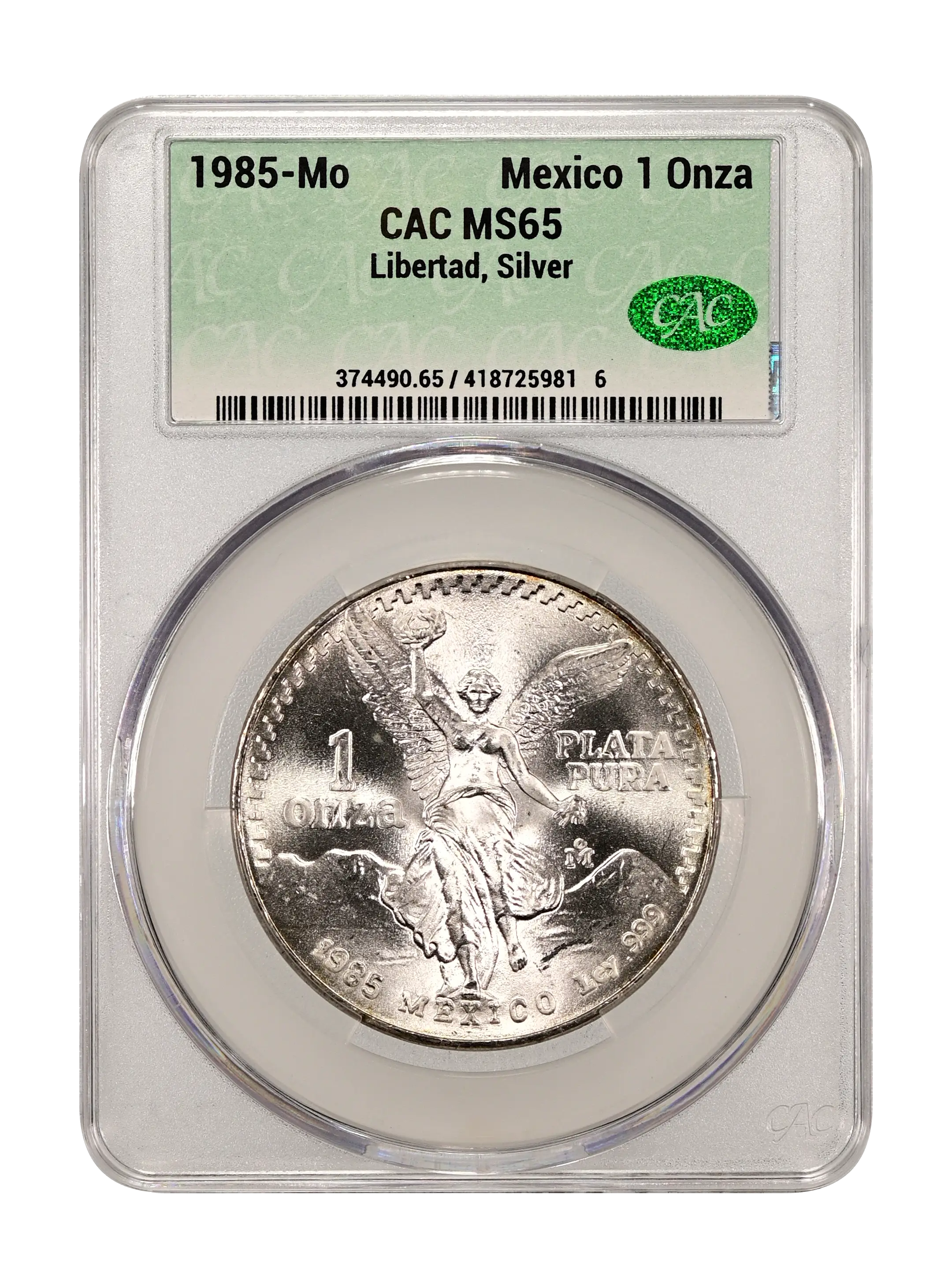 1985-Mo Libertad Mexico 1 Onza Silver CAC MS65+
