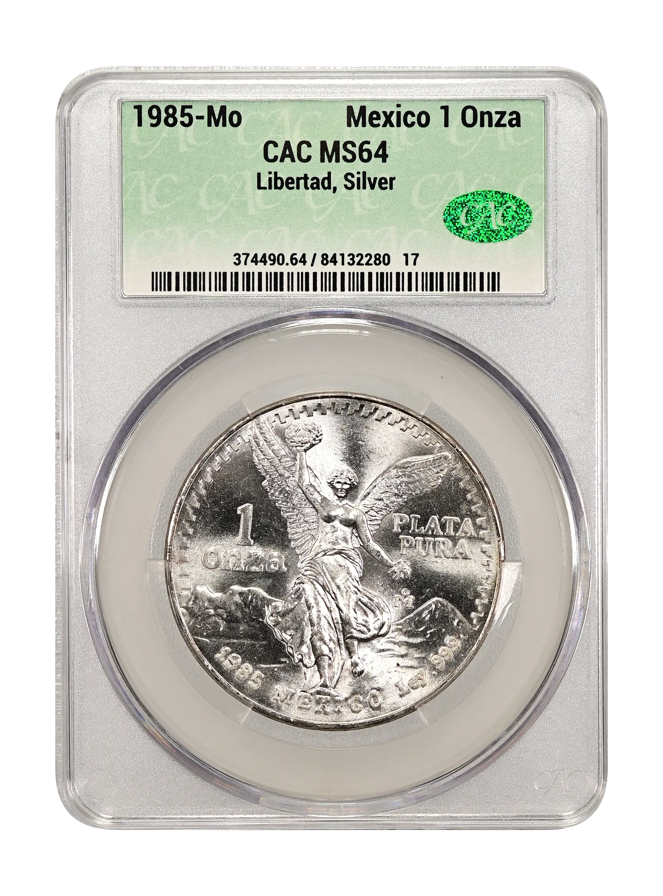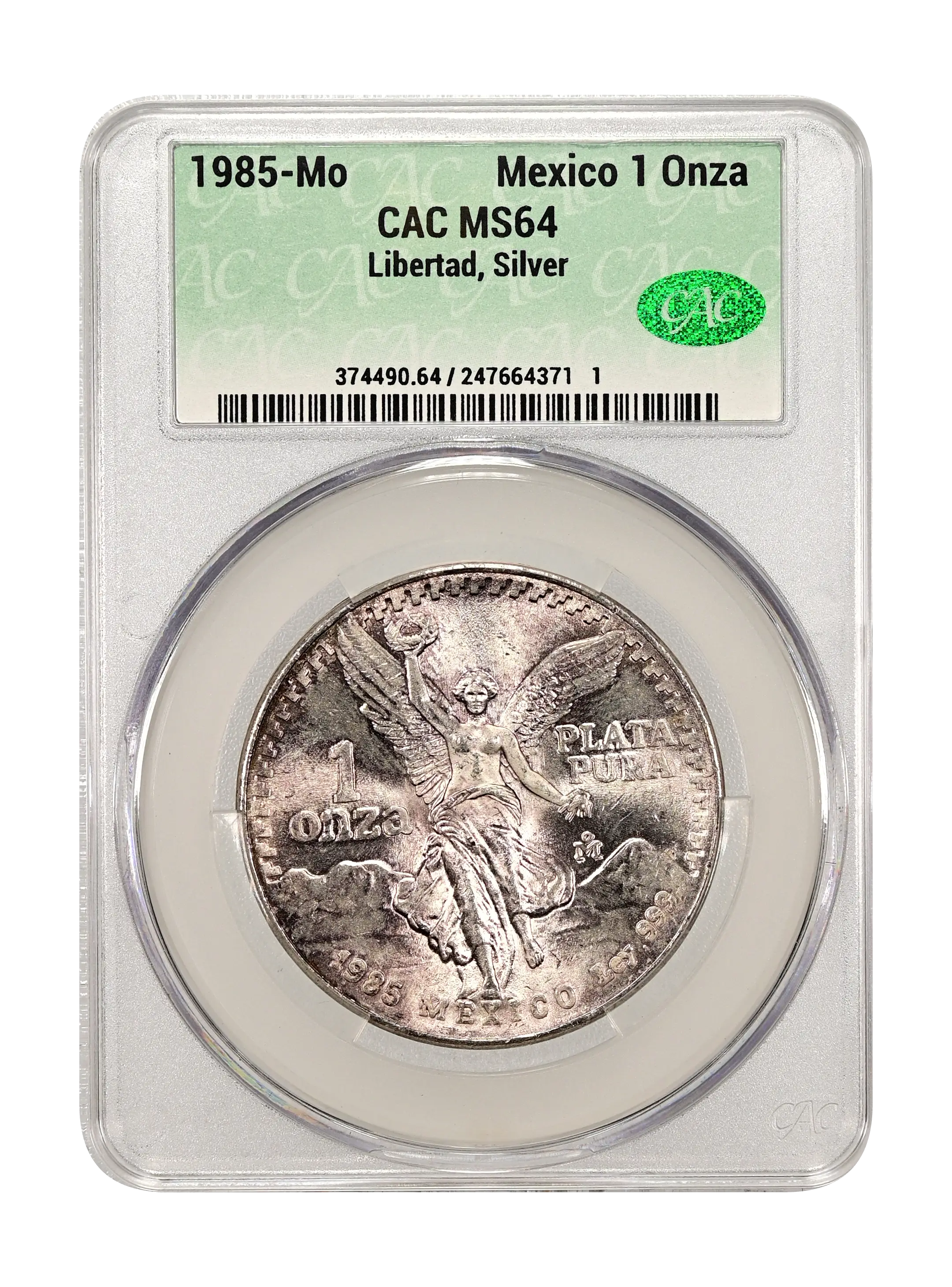 1985-Mo Libertad Mexico 1 Onza Silver CAC MS64