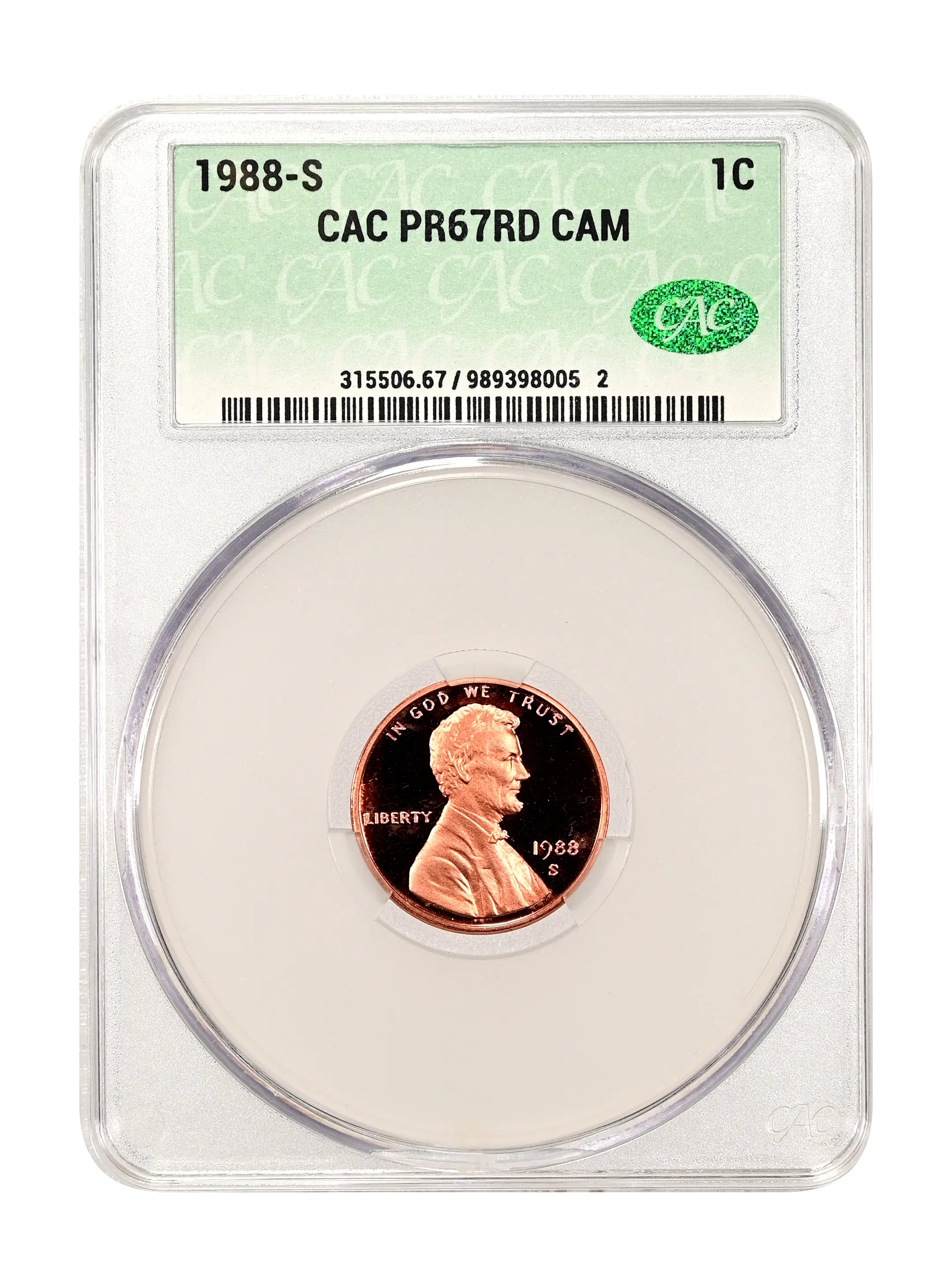 1988-S 1c RD CAM (Proof) CAC PR67RD CAM