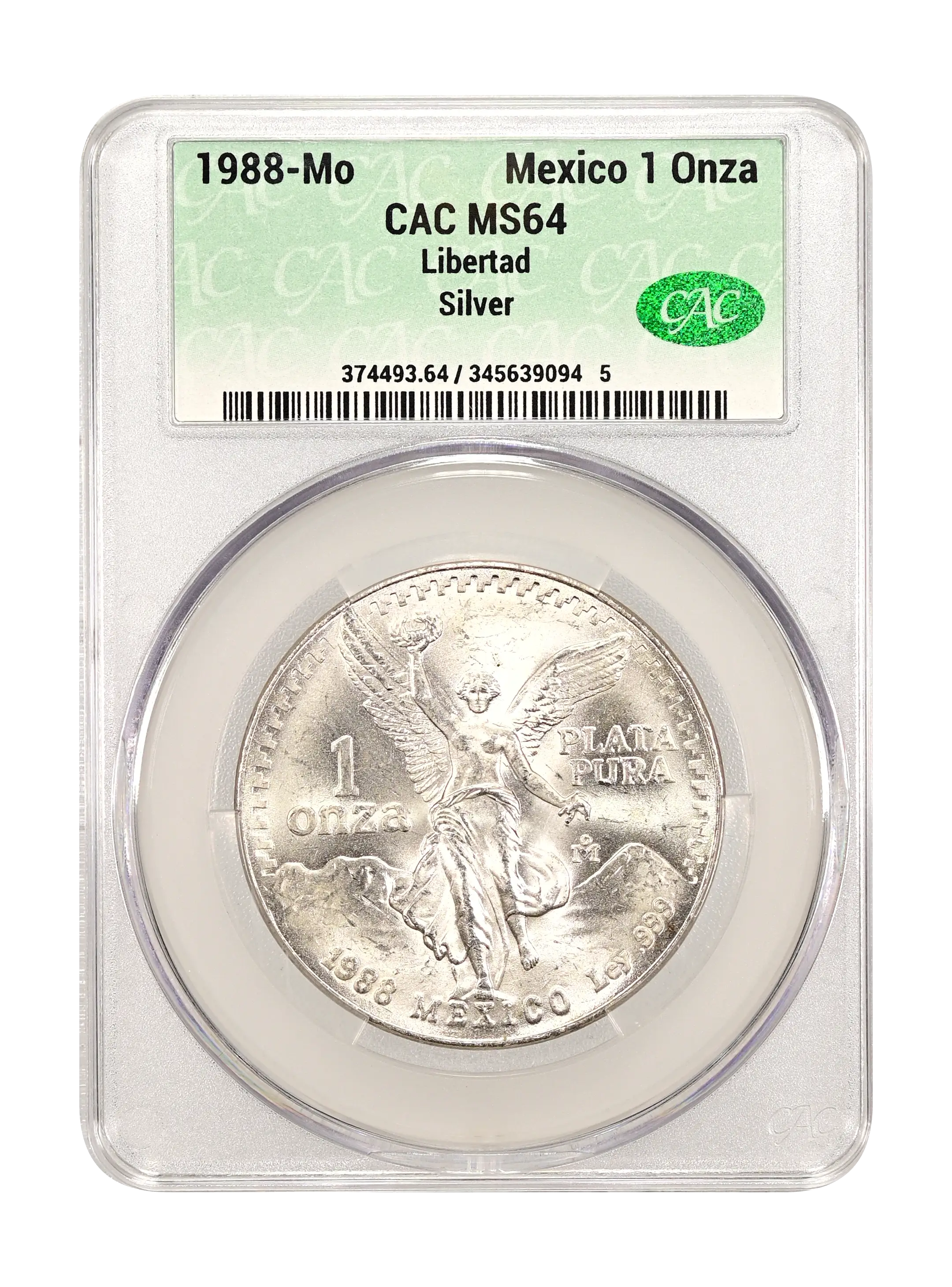 1988-Mo Libertad Mexico 1 Onza Silver CAC MS64