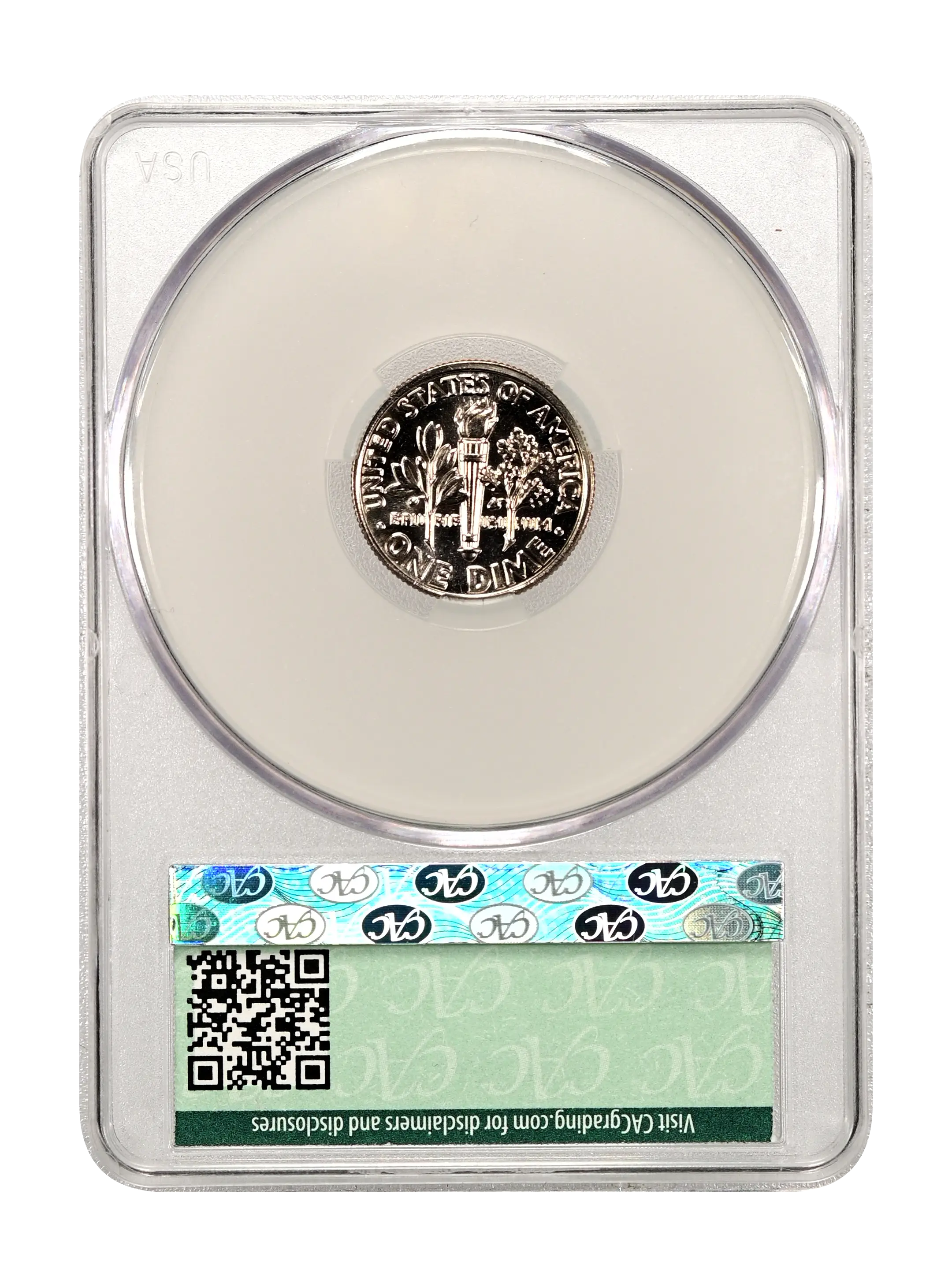 Reverse: Torch of Liberty is flanked by olive branches in the center with UNITED STATES OF AMERICA * ONE DIME around the circumference.