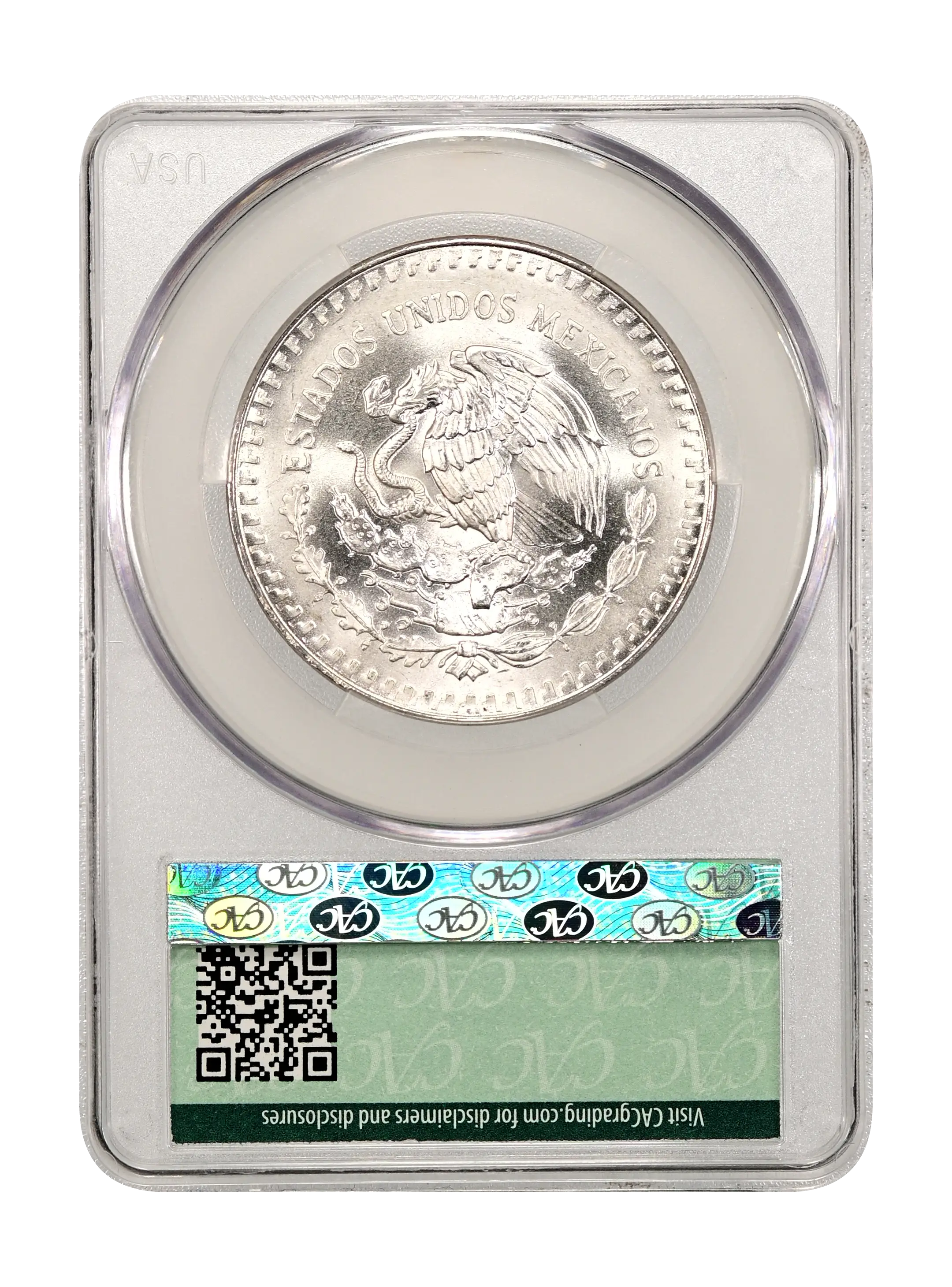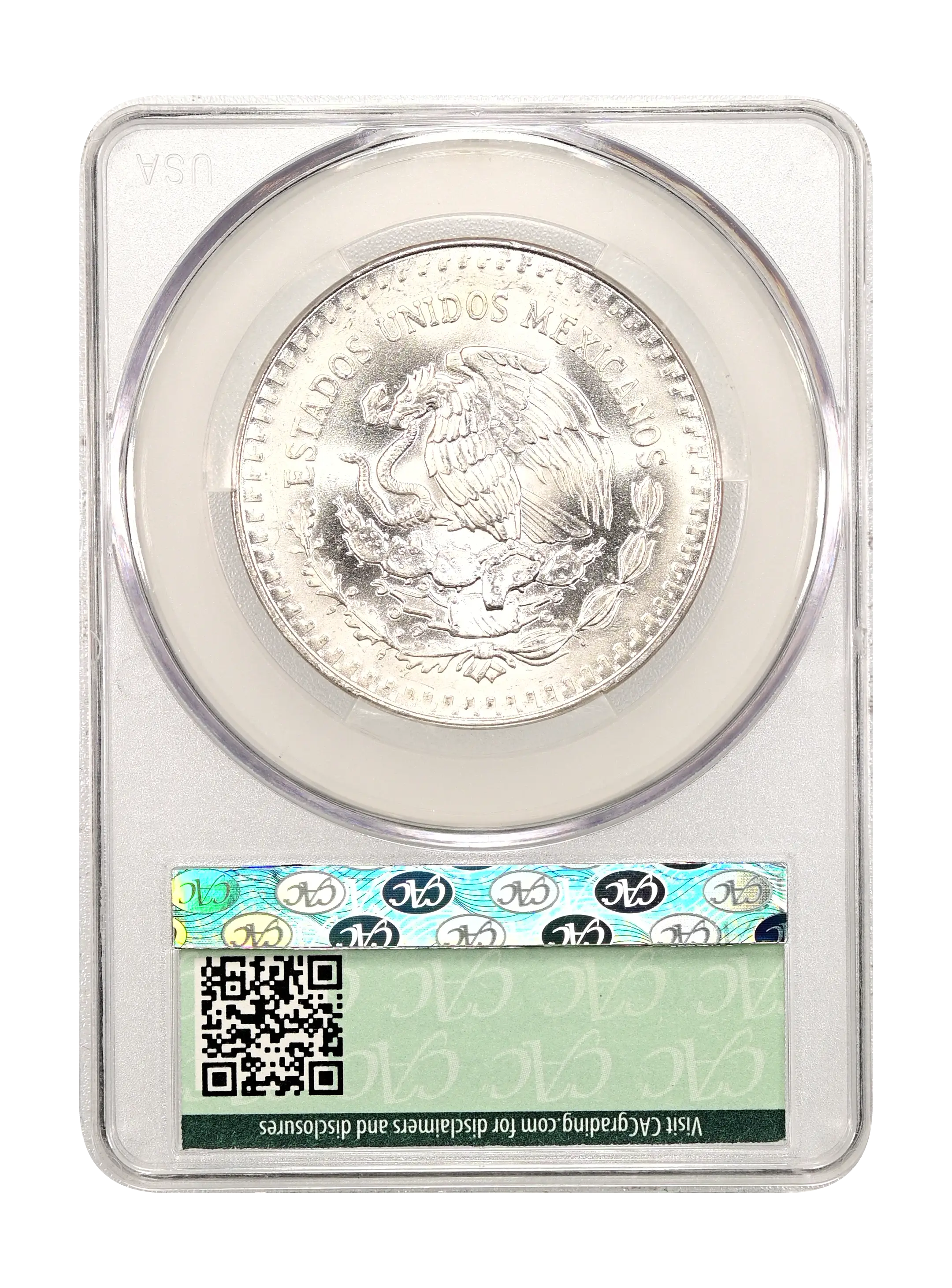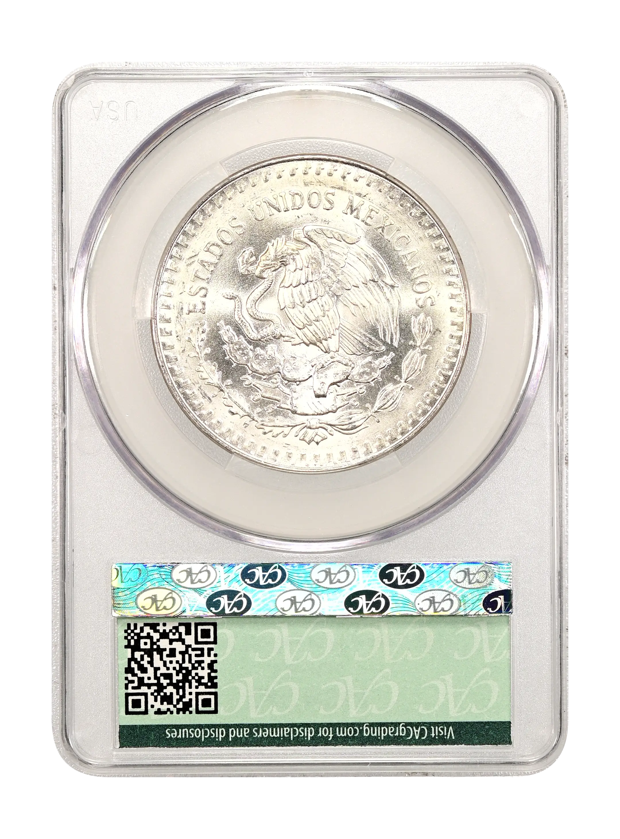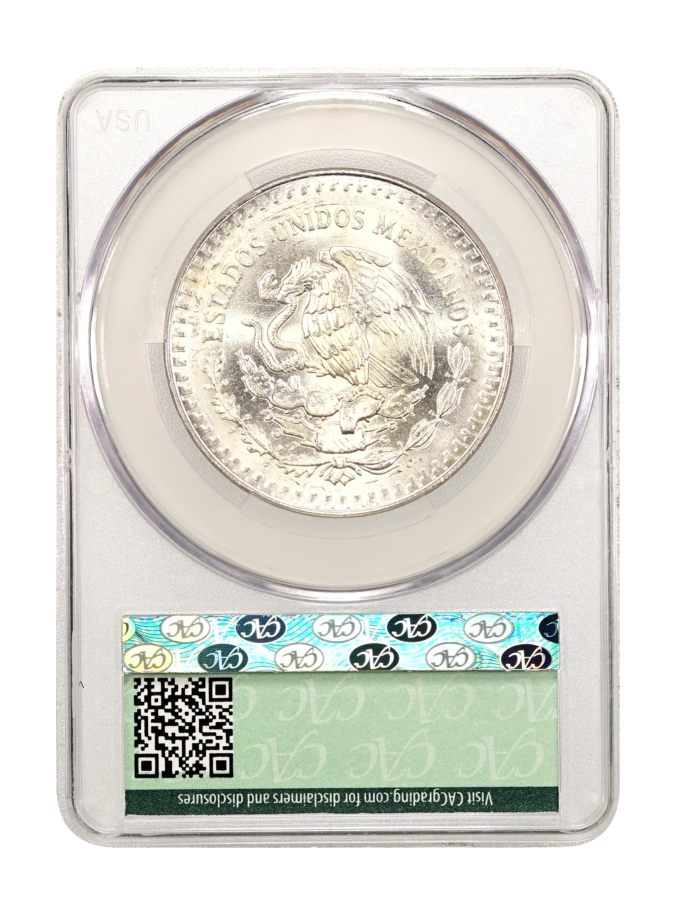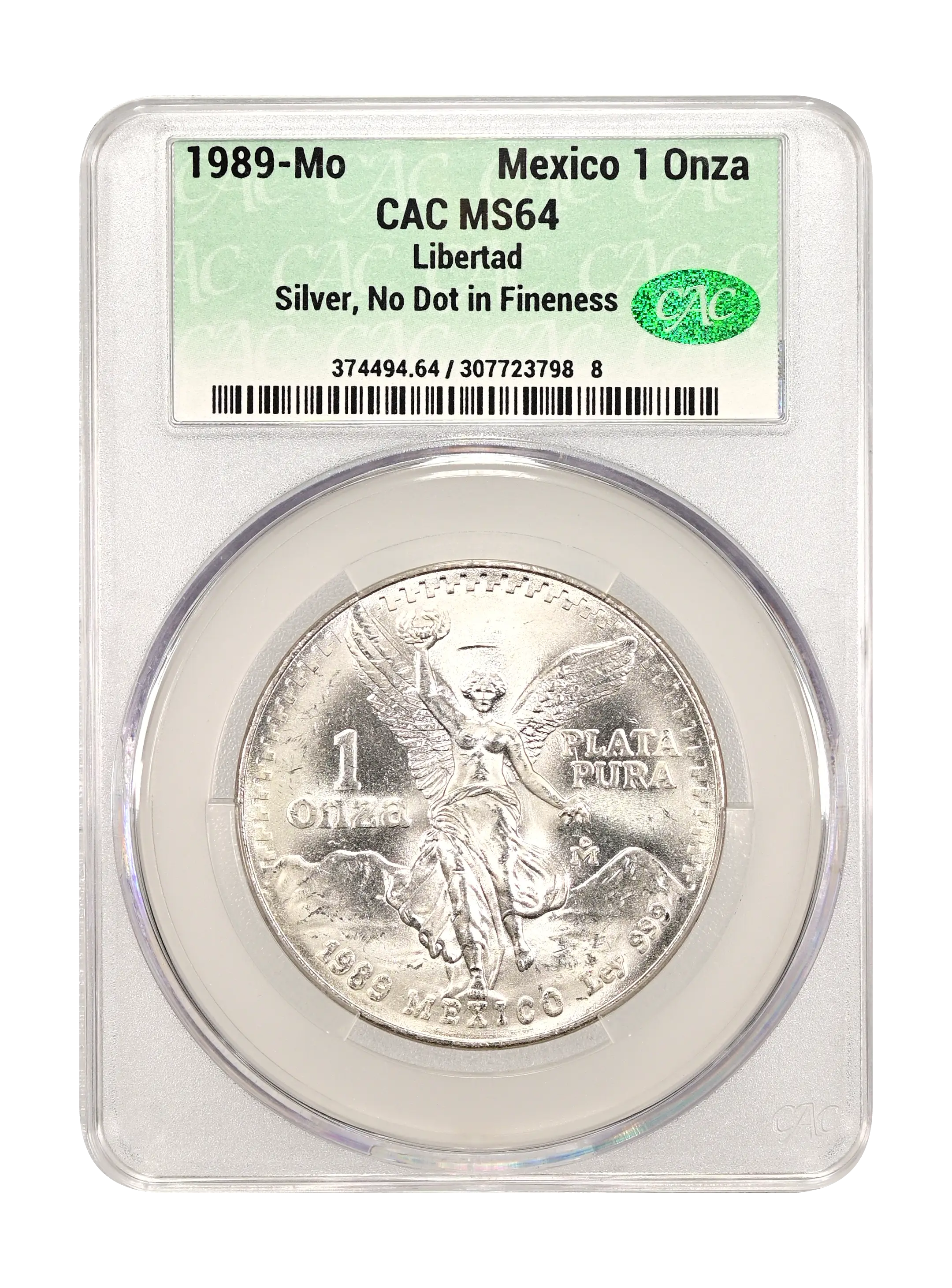 1989-Mo Libertad Mexico 1 Onza Silver, Without Dot CAC MS64