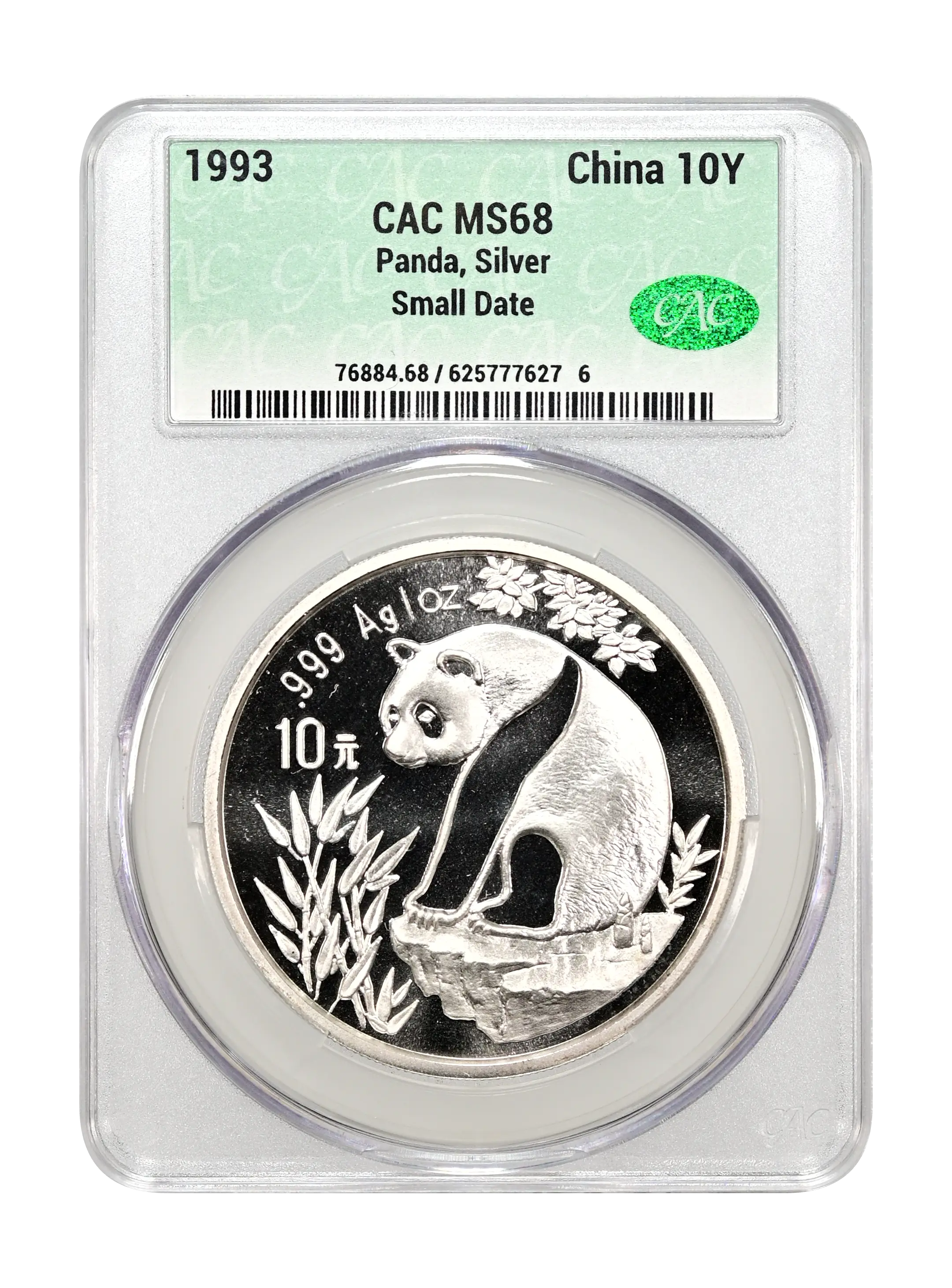 1993 Panda, Silver China 10Y Small Date CAC MS68