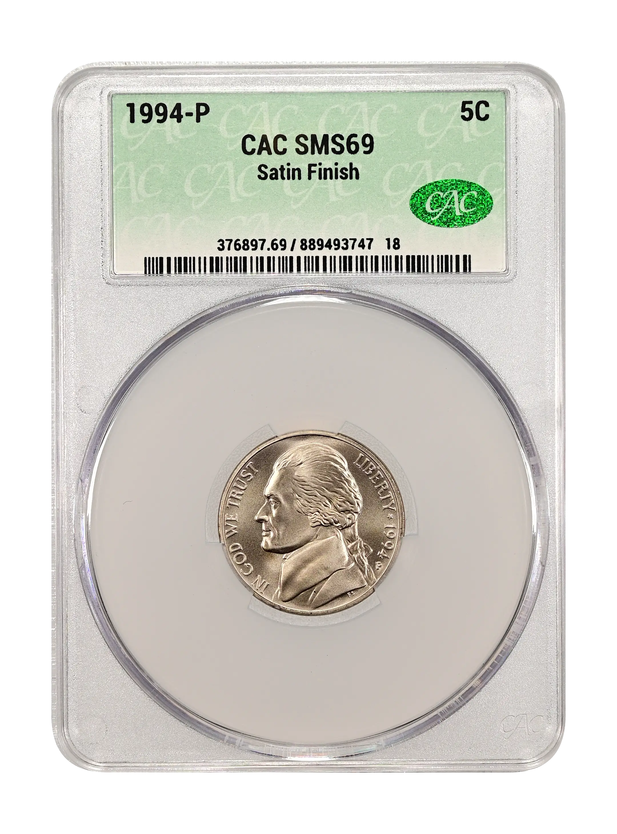 1994-P Satin Finish 5c CAC SMS69