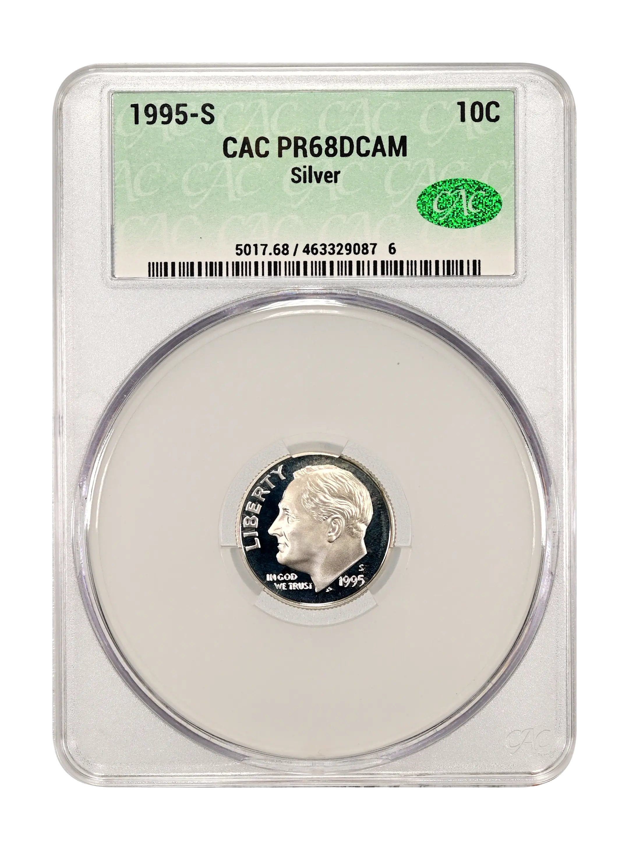 1995-S Silver 10c DCAM (Proof) CAC PR68DCAM