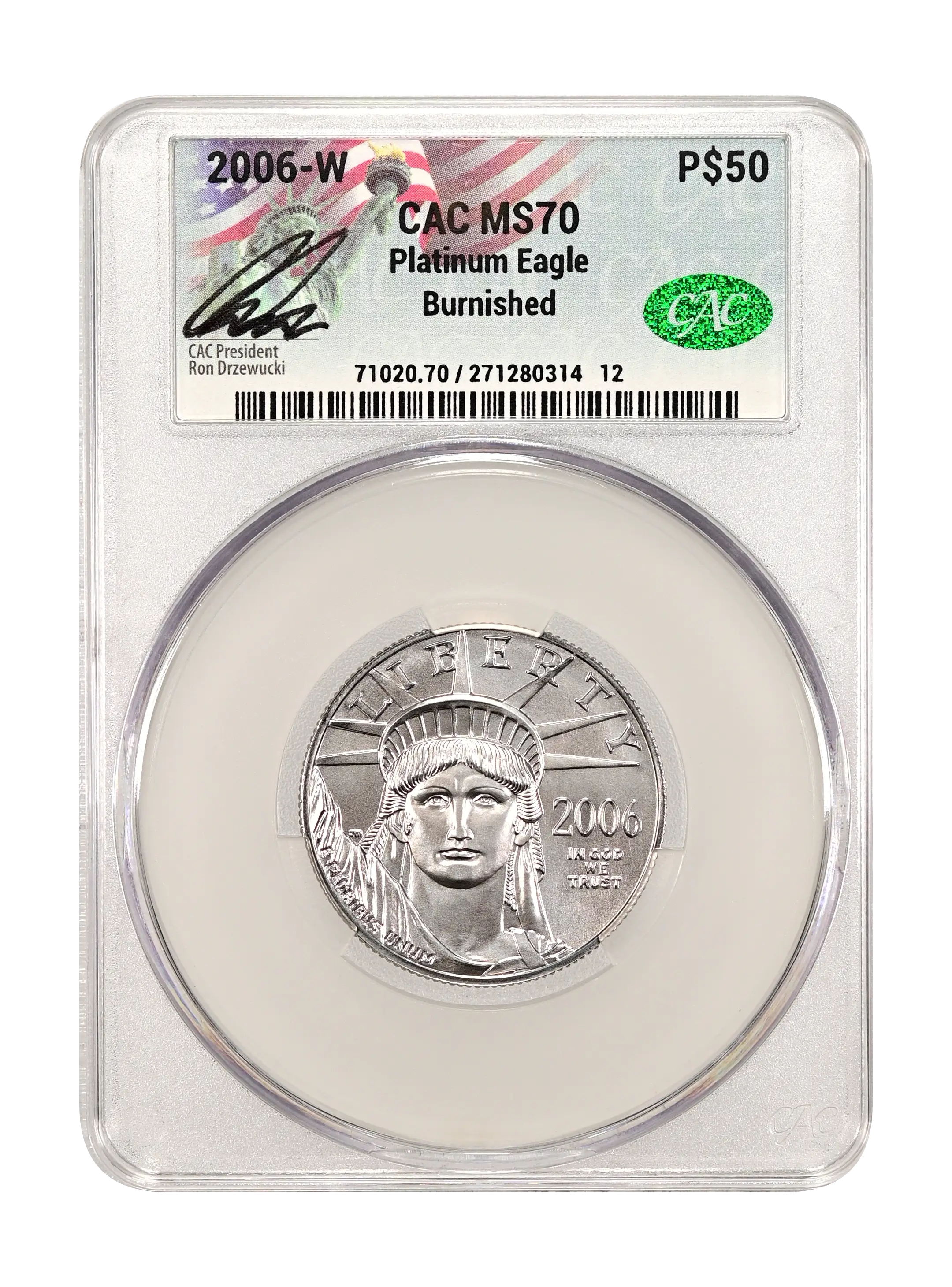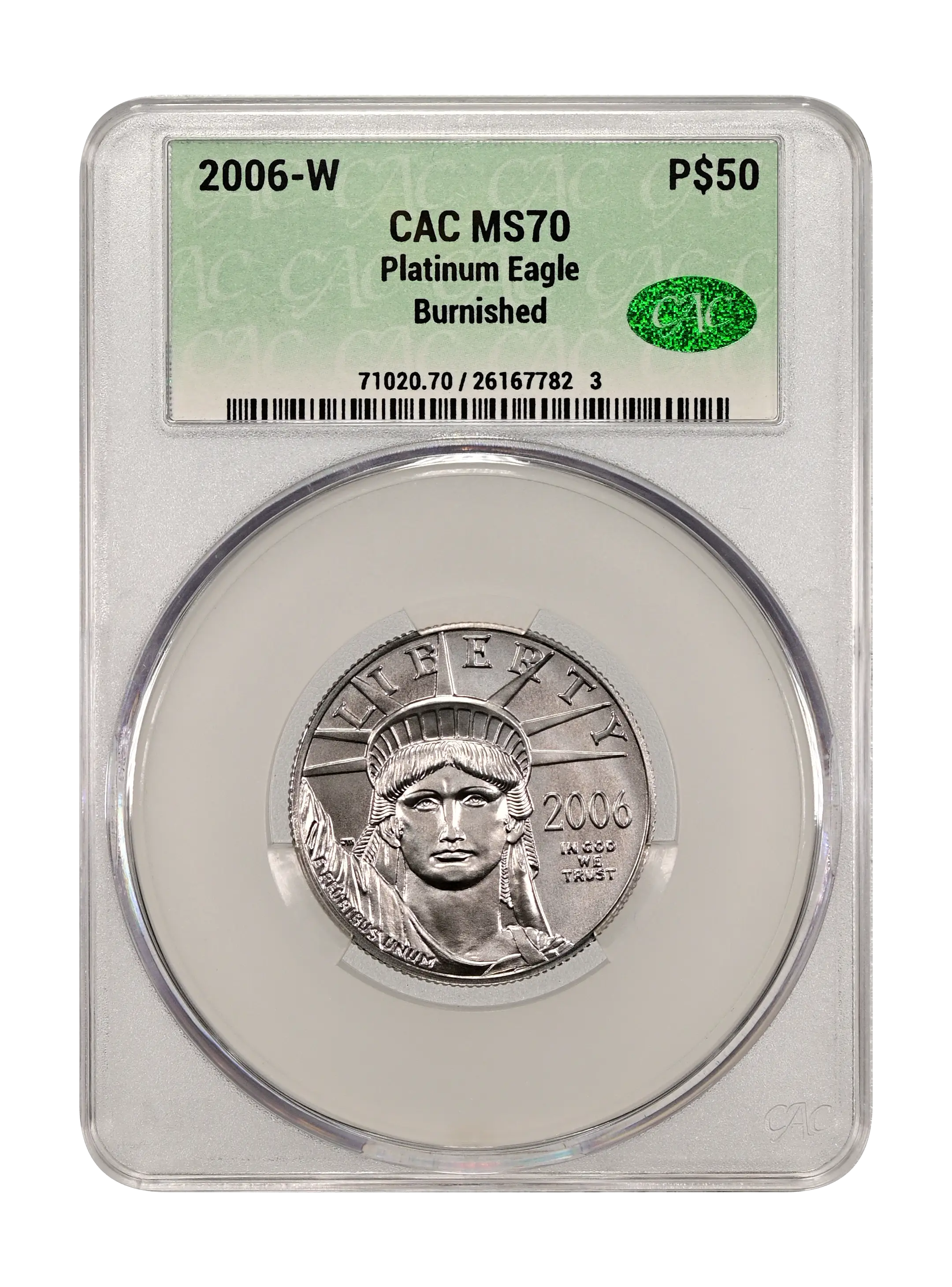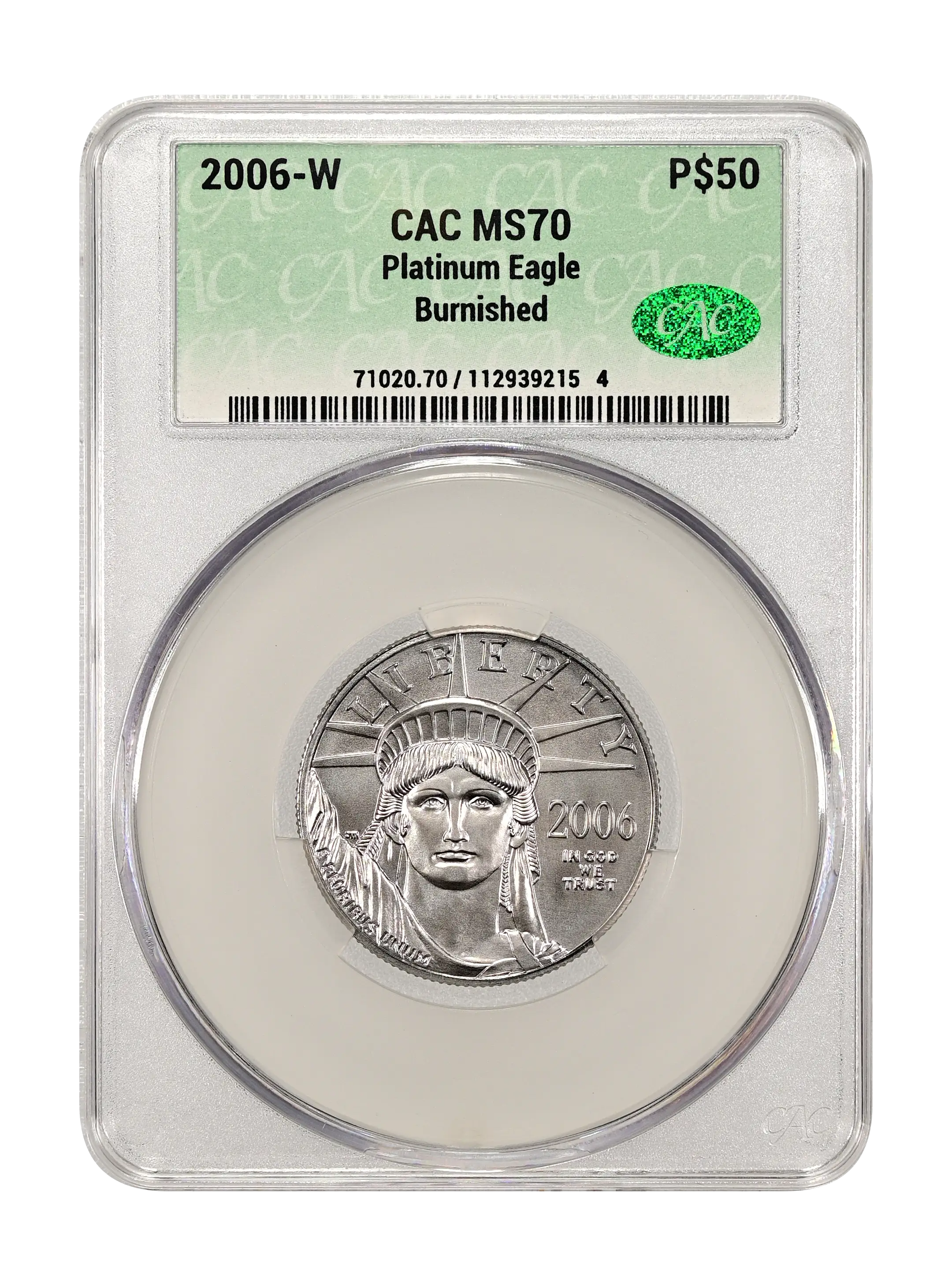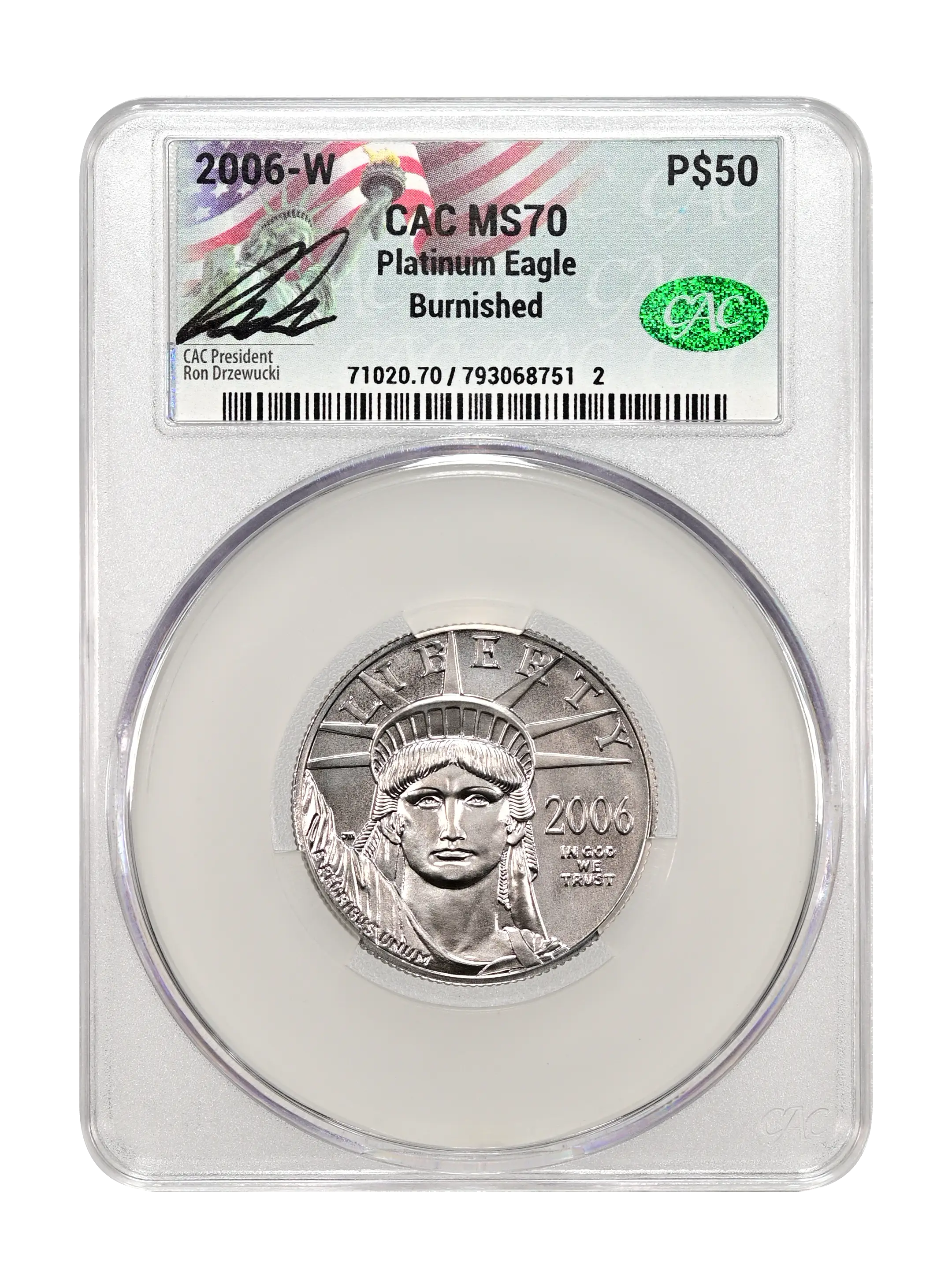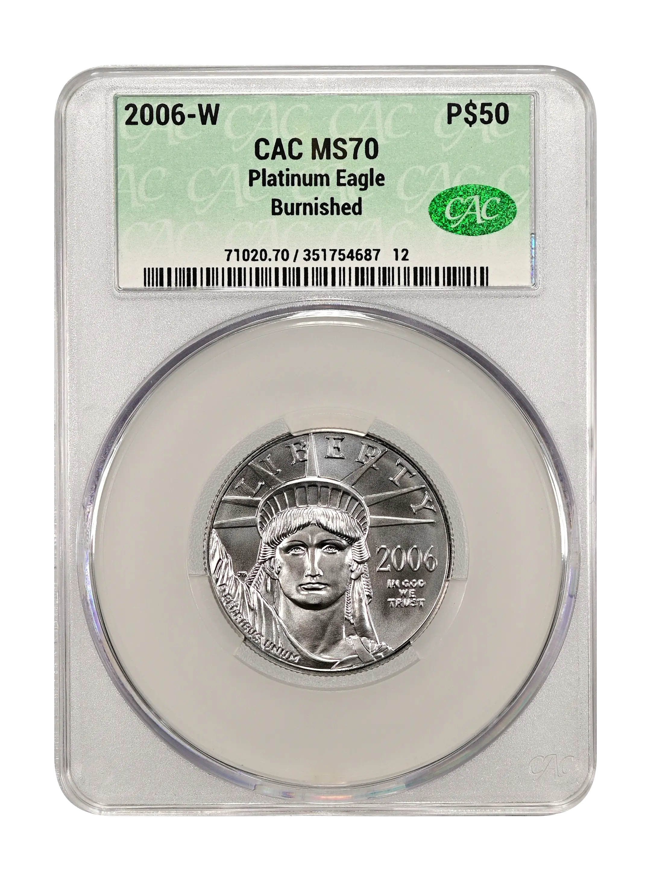 2006-W Burnished Platinum Eagle P$50 CAC MS70