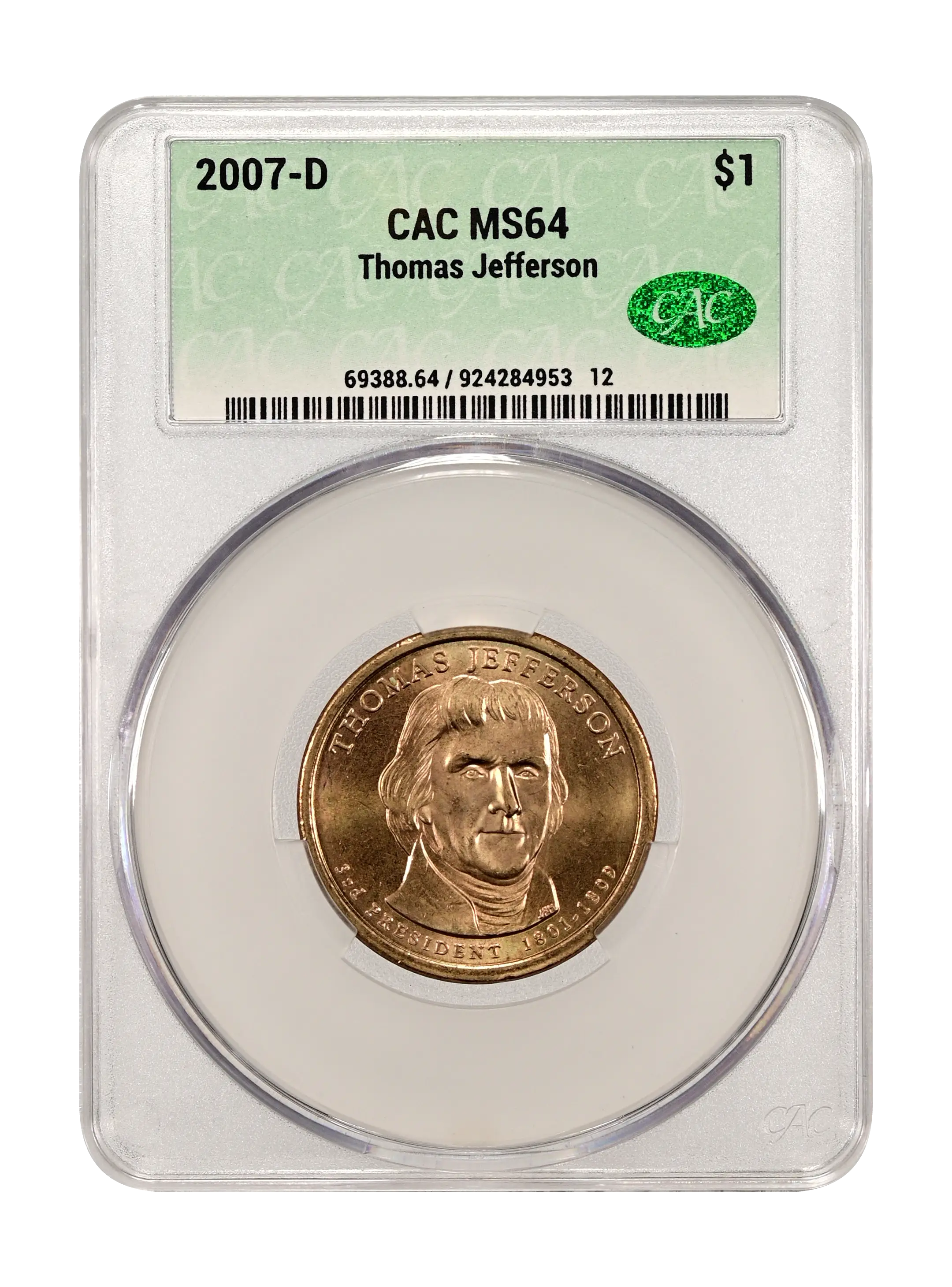 - 2007-D $1 Thomas Jefferson, Position A MS