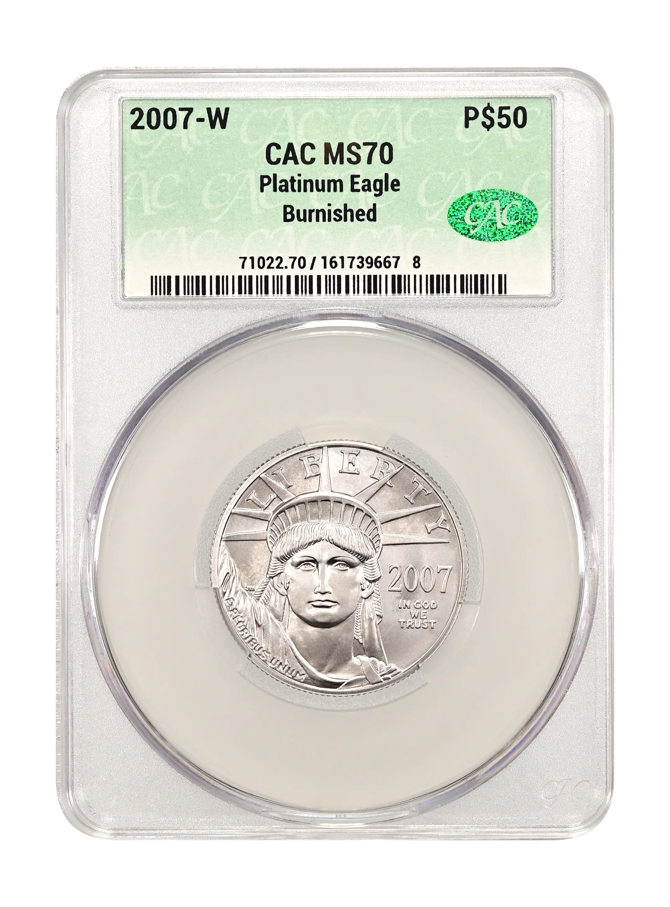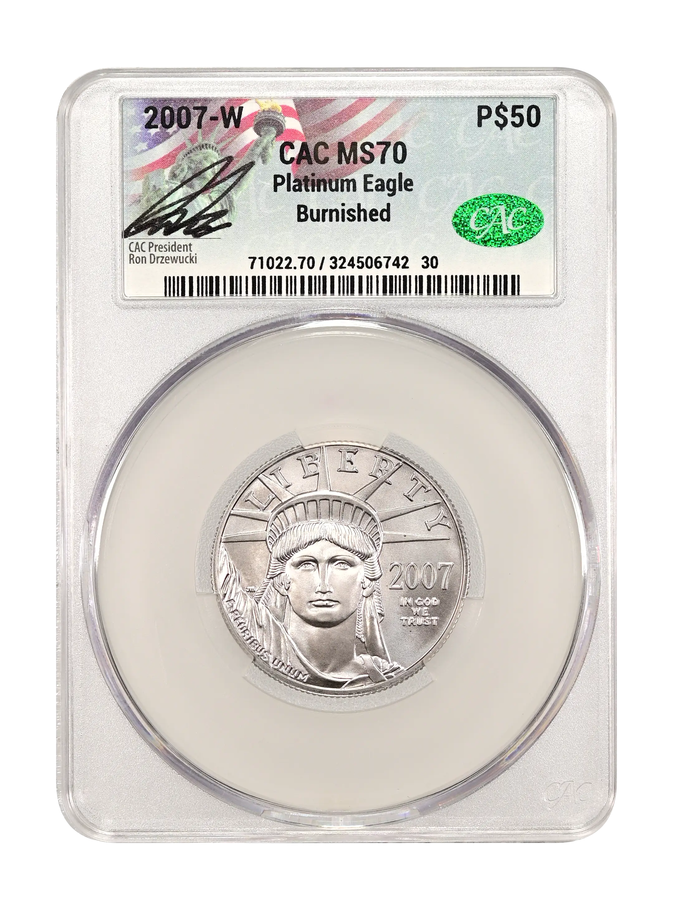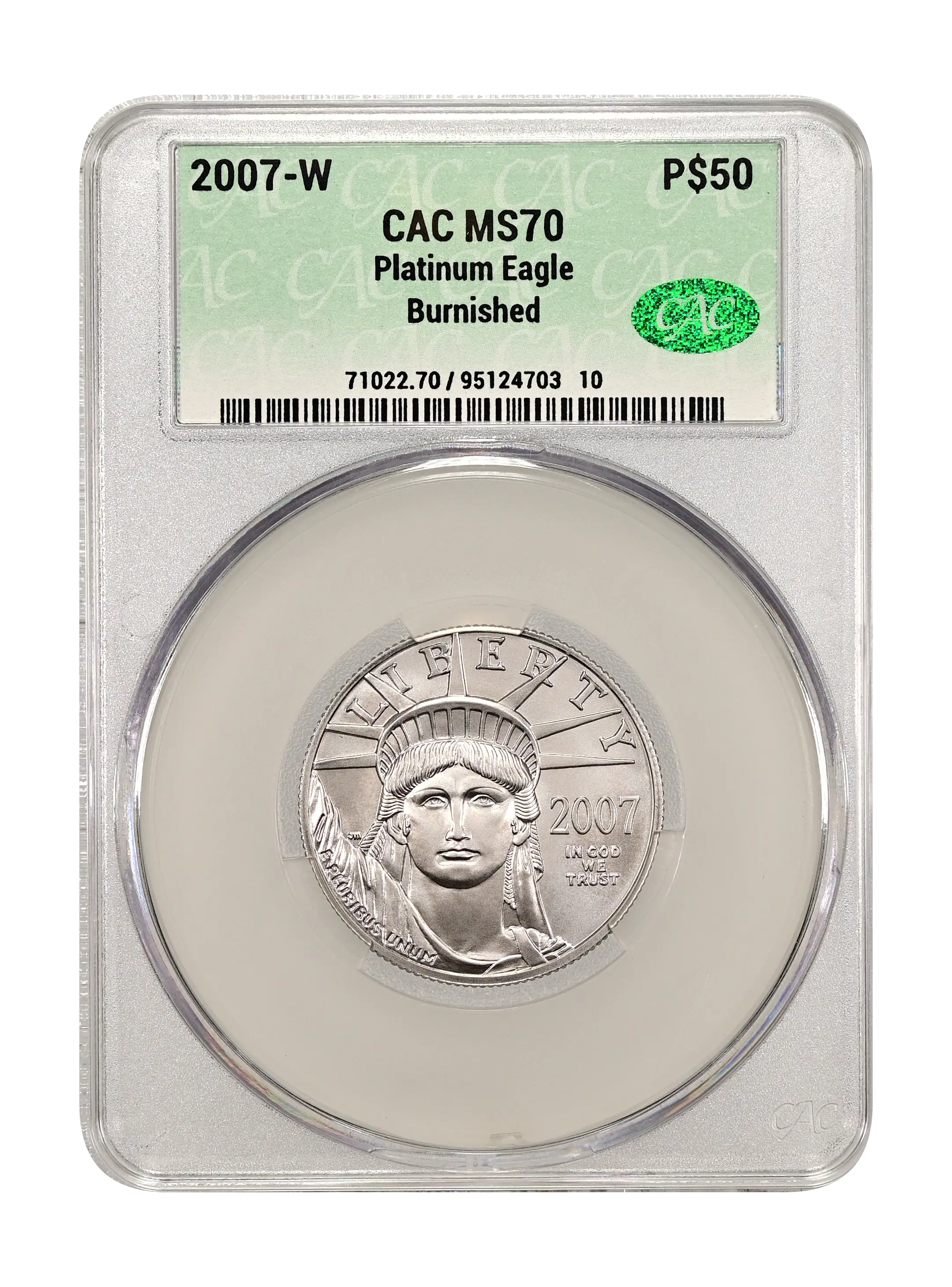 2007-W Burnished Platinum Eagle P$50 CAC MS70
