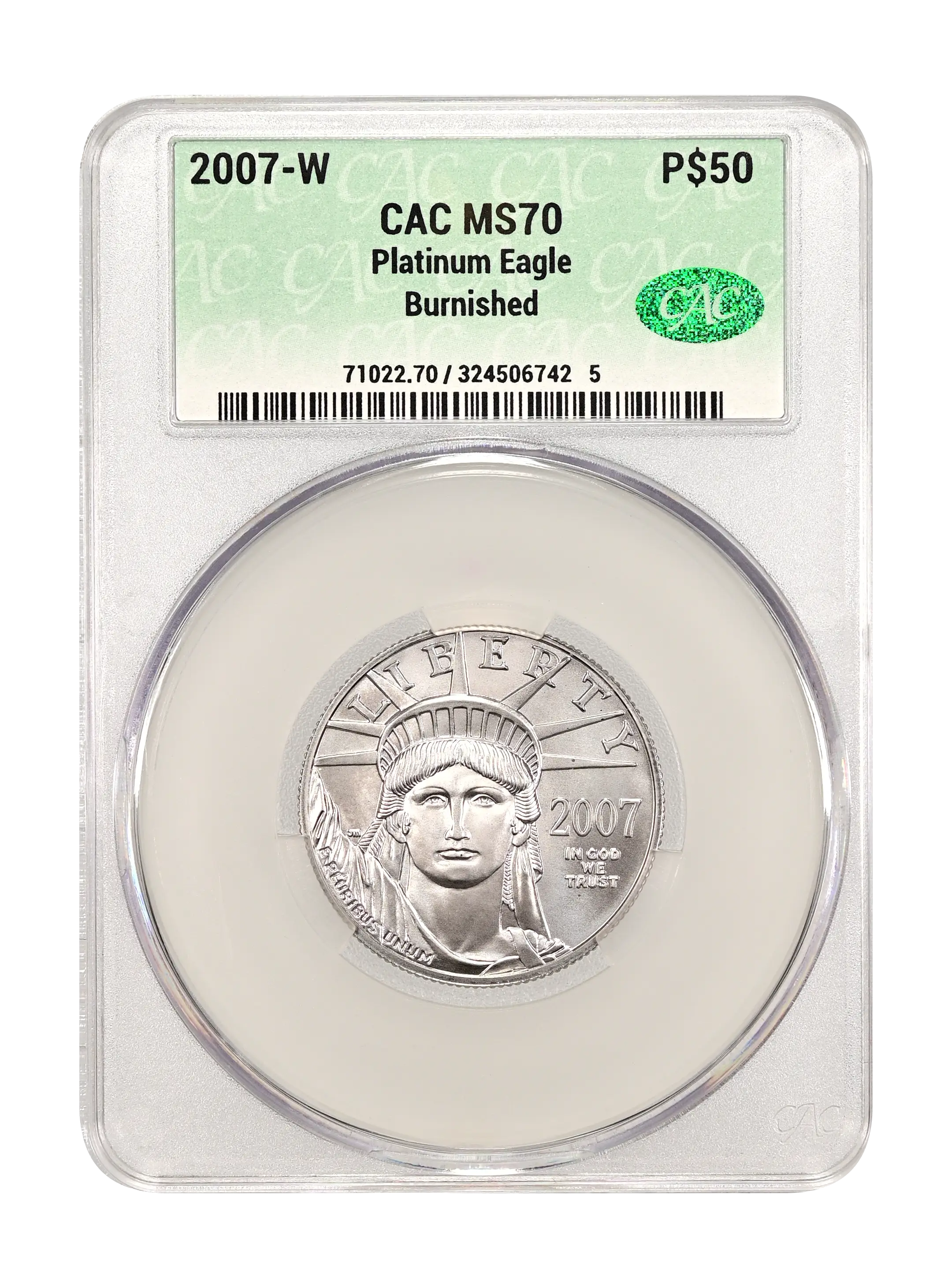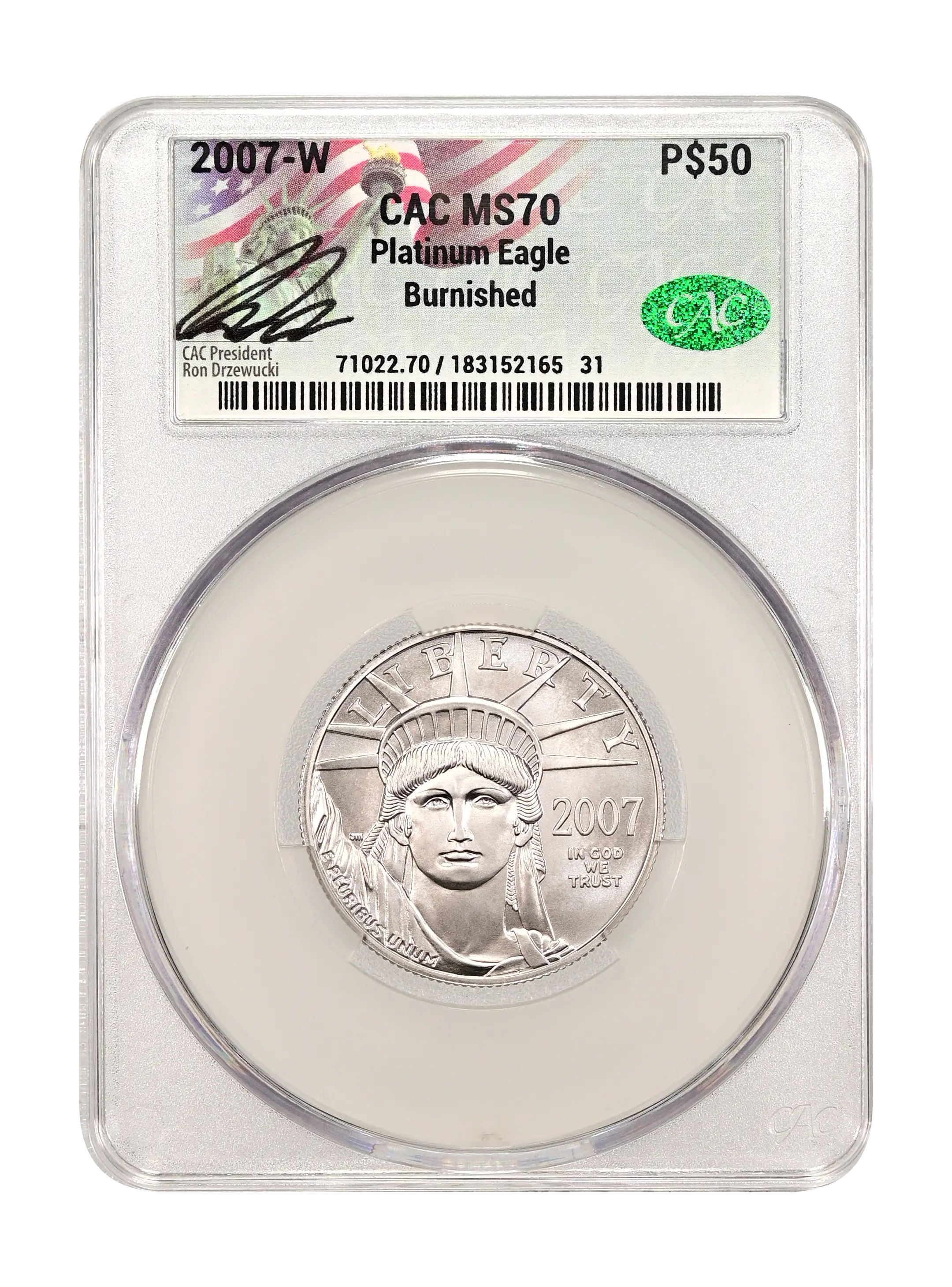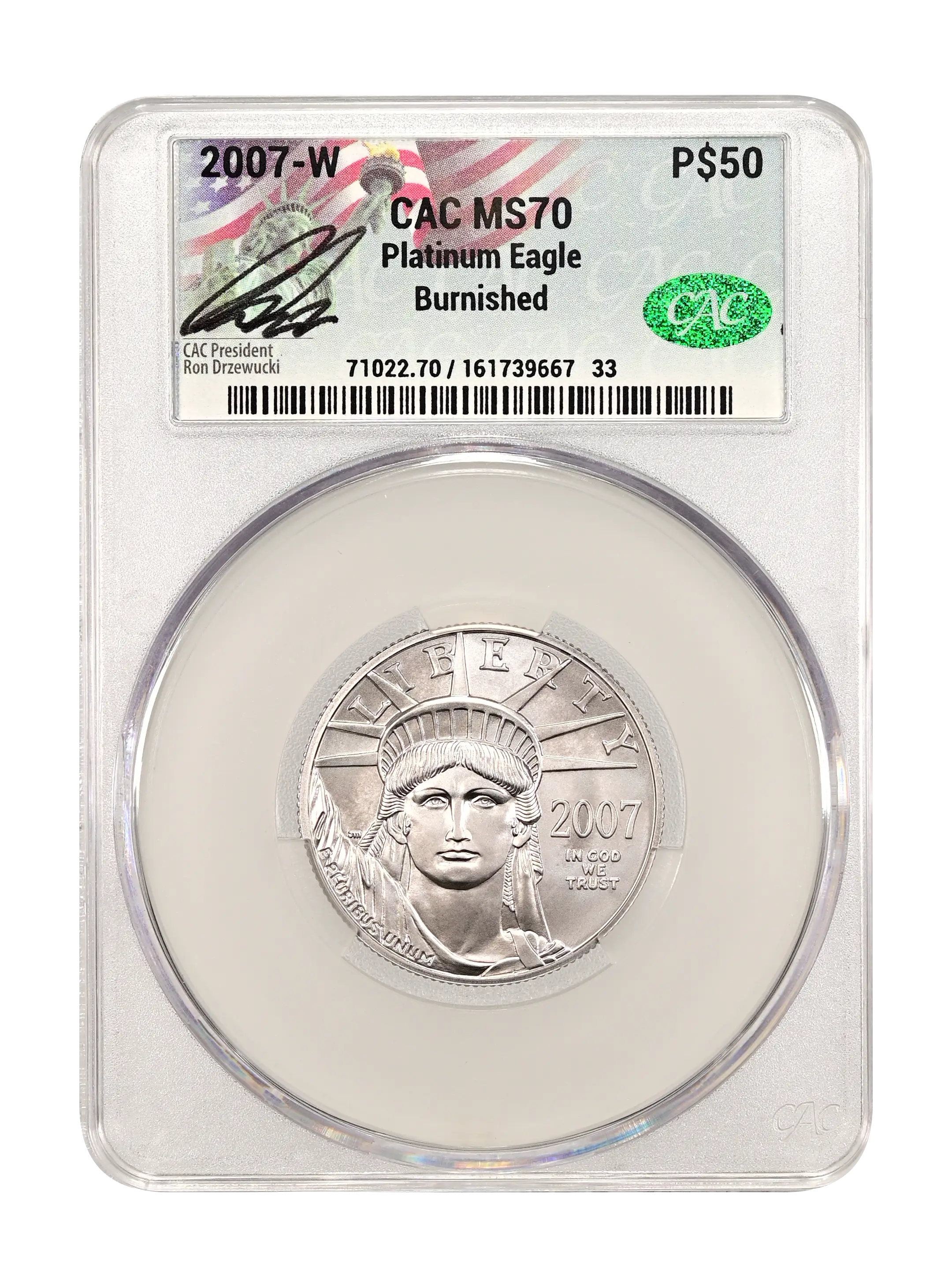 2007-W Burnished Platinum Eagle P$50 CAC MS70