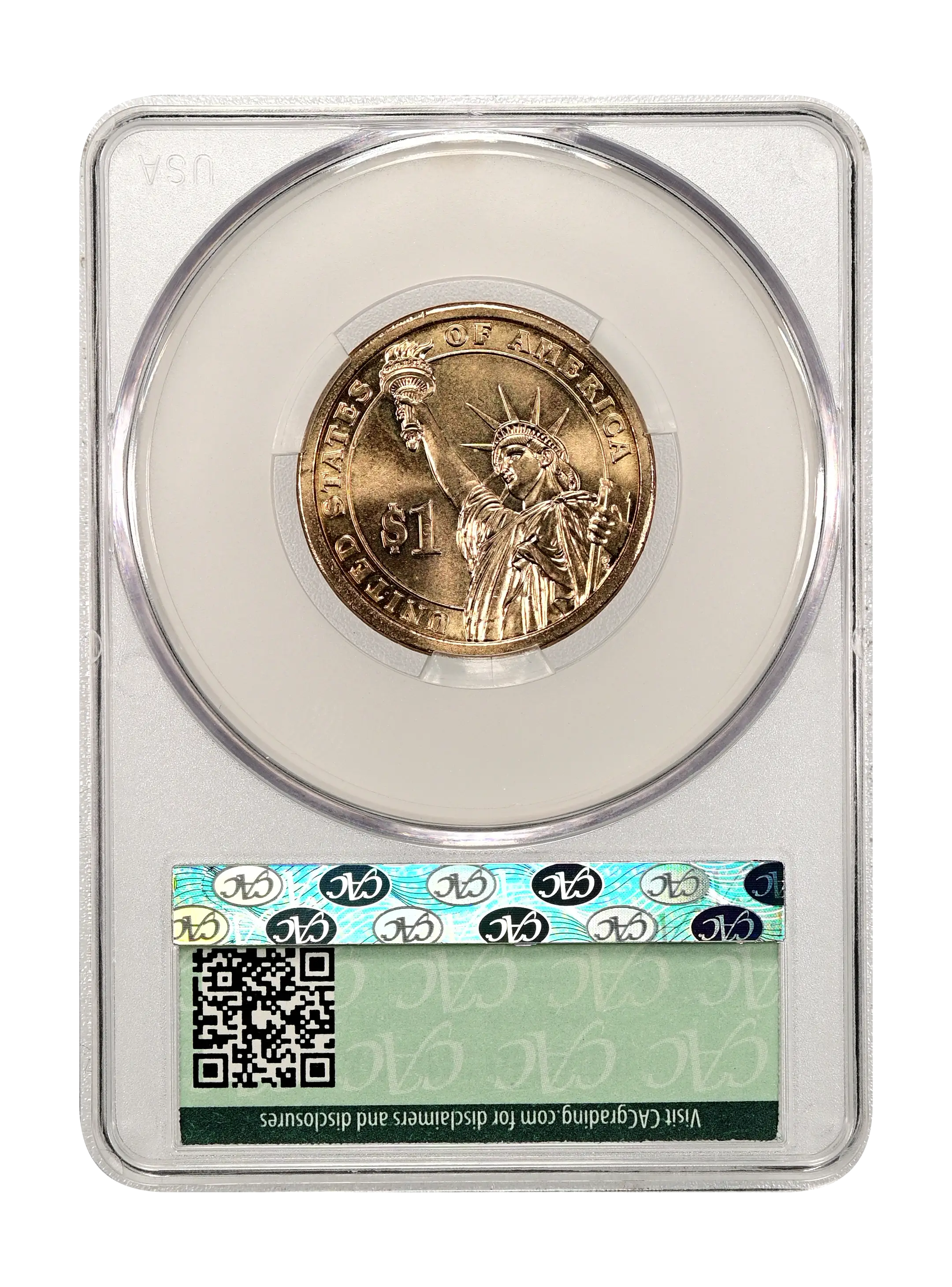 Reverse: The statue of Liberty spans the design from lower right to upper left with a large "$1" in the right field. UNITED STATES OF AMERICA spans the periphery from 7-3 o'clock.