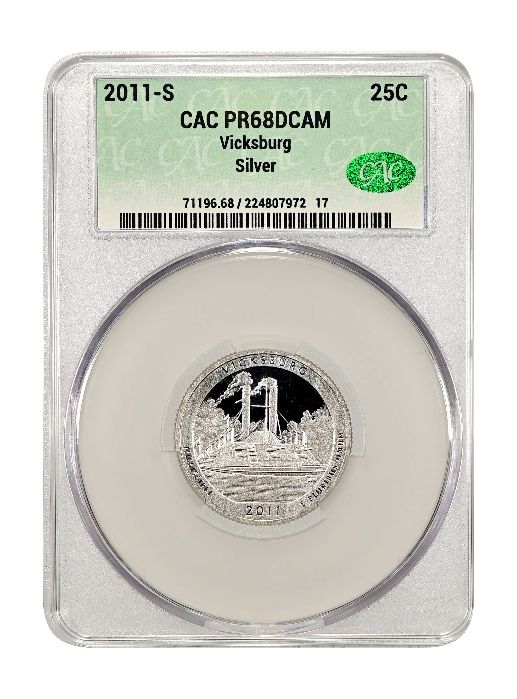 2011-S Vicksburg 25c Silver DCAM (Proof) CAC PR68DCAM