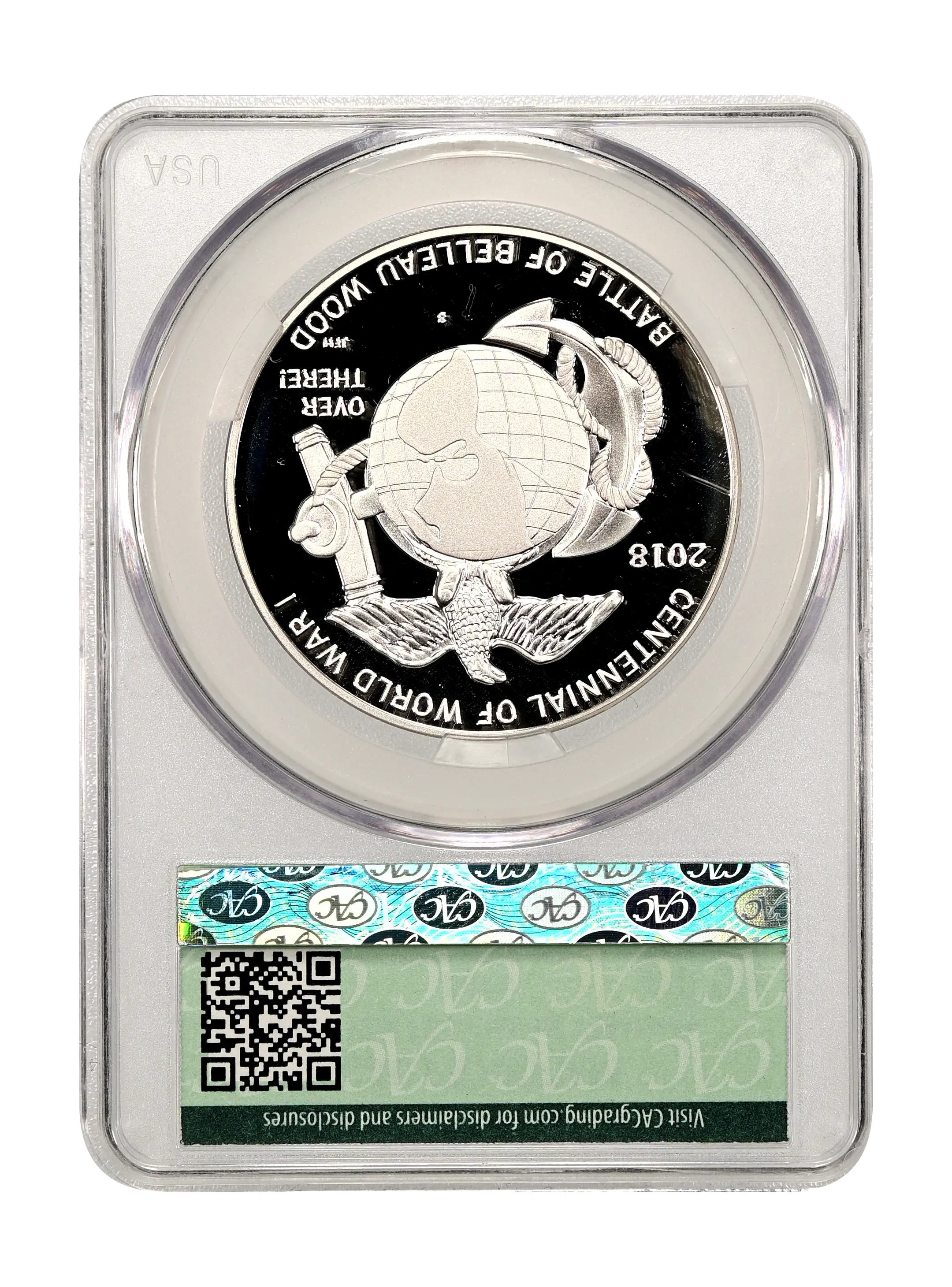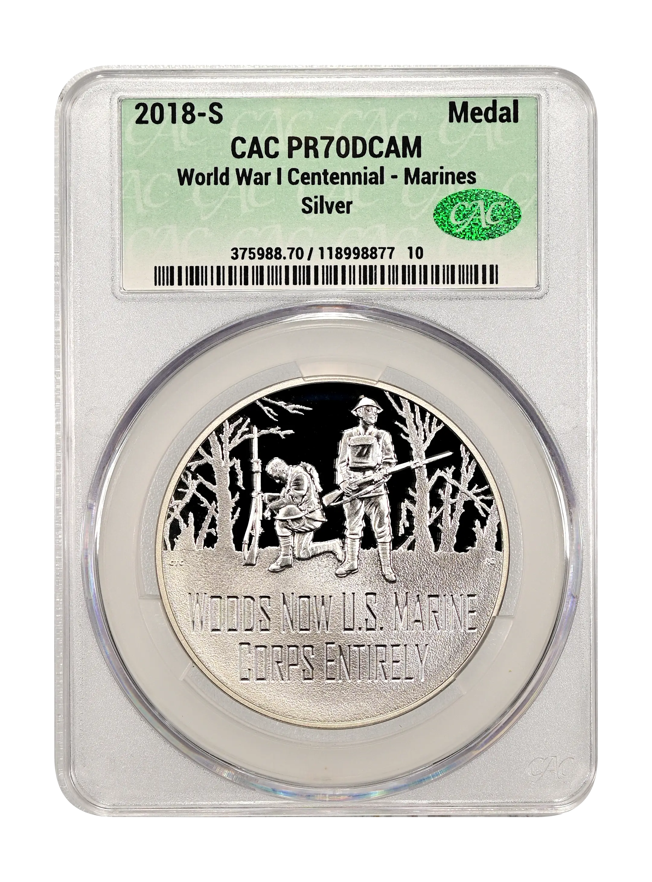 2018-S World War I Centennial - Marines Medal Silver DCAM (Proof) CAC PR70DCAM