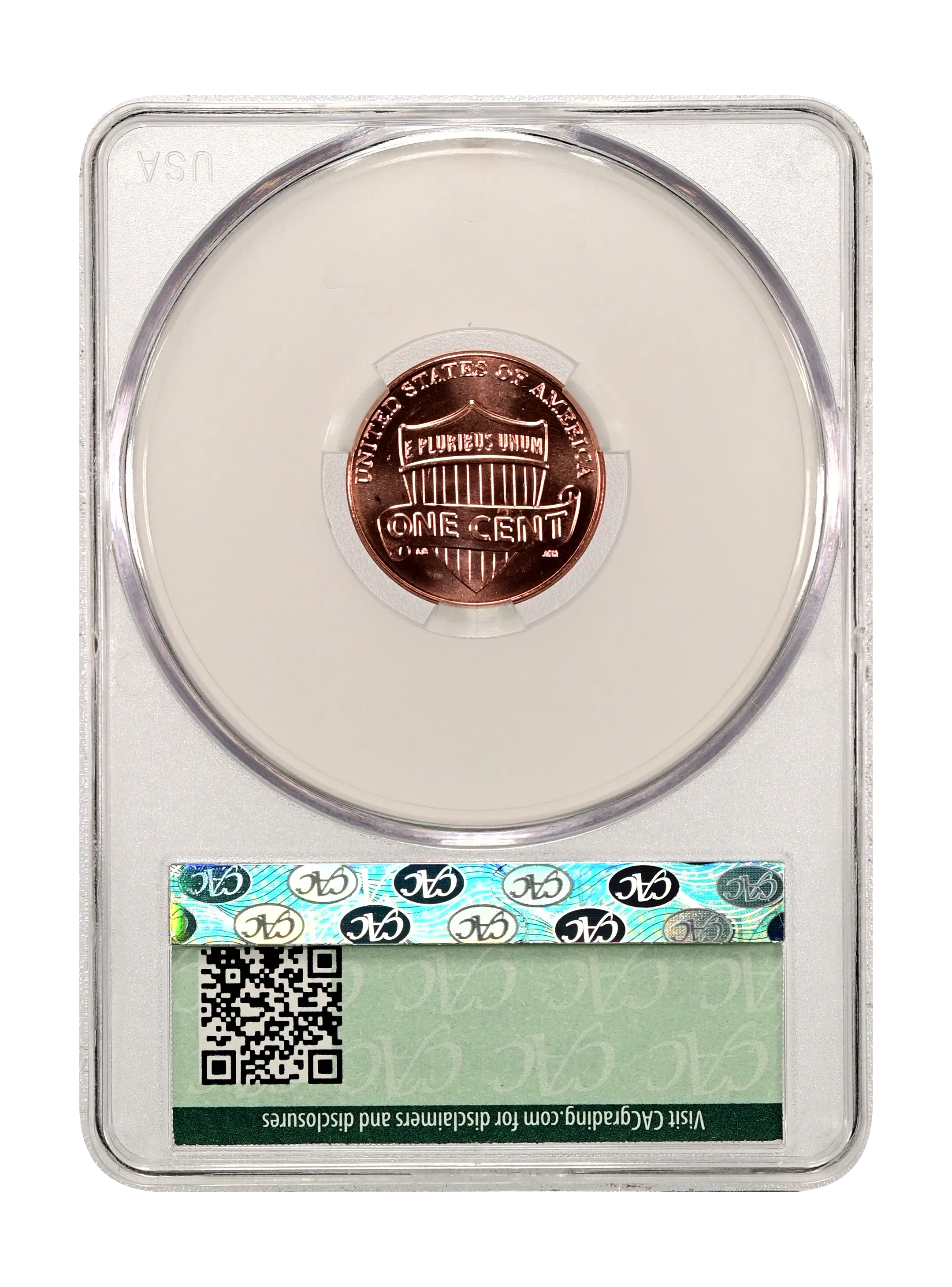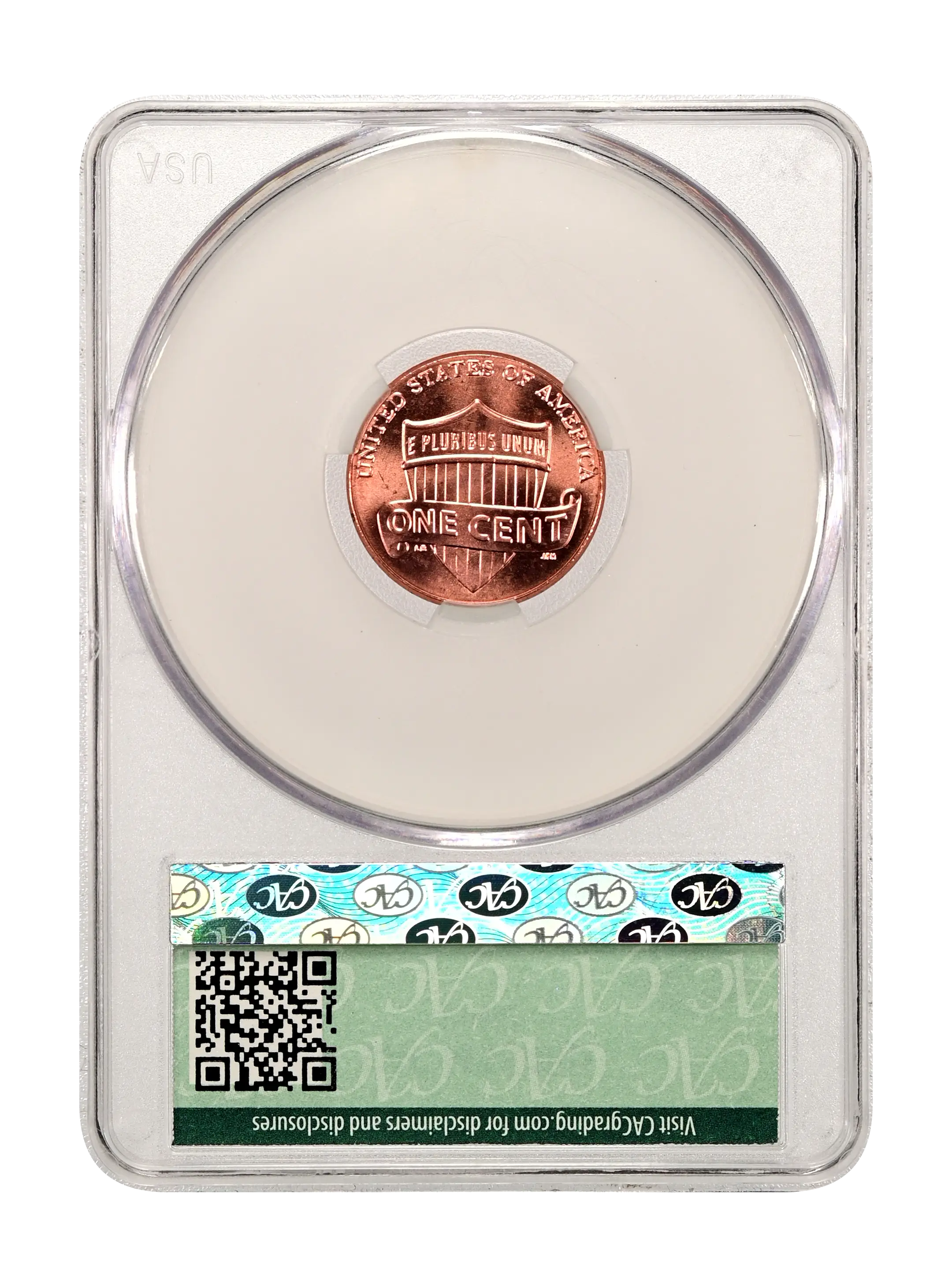 Reverse: A shield with the words E PLURIBUS UNUM is centered with the words UNITED STATES OF AMERICA on the top periphery and ONE cent in a ribbon across the shield.